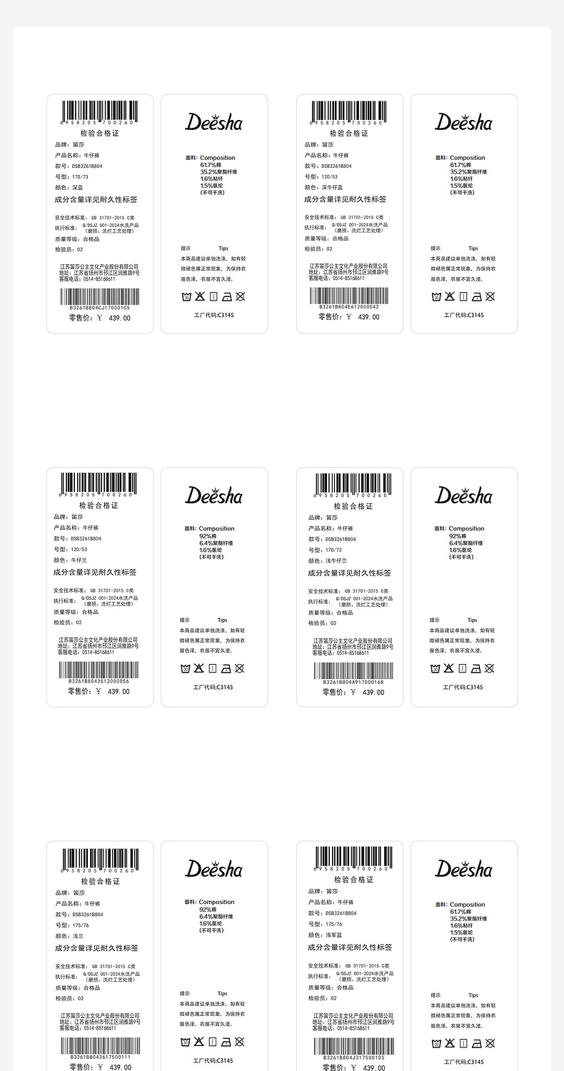 笛莎/Deesha 【云柔亲子系列】2026年春季新款女童牛仔裤亲子儿童直筒裤