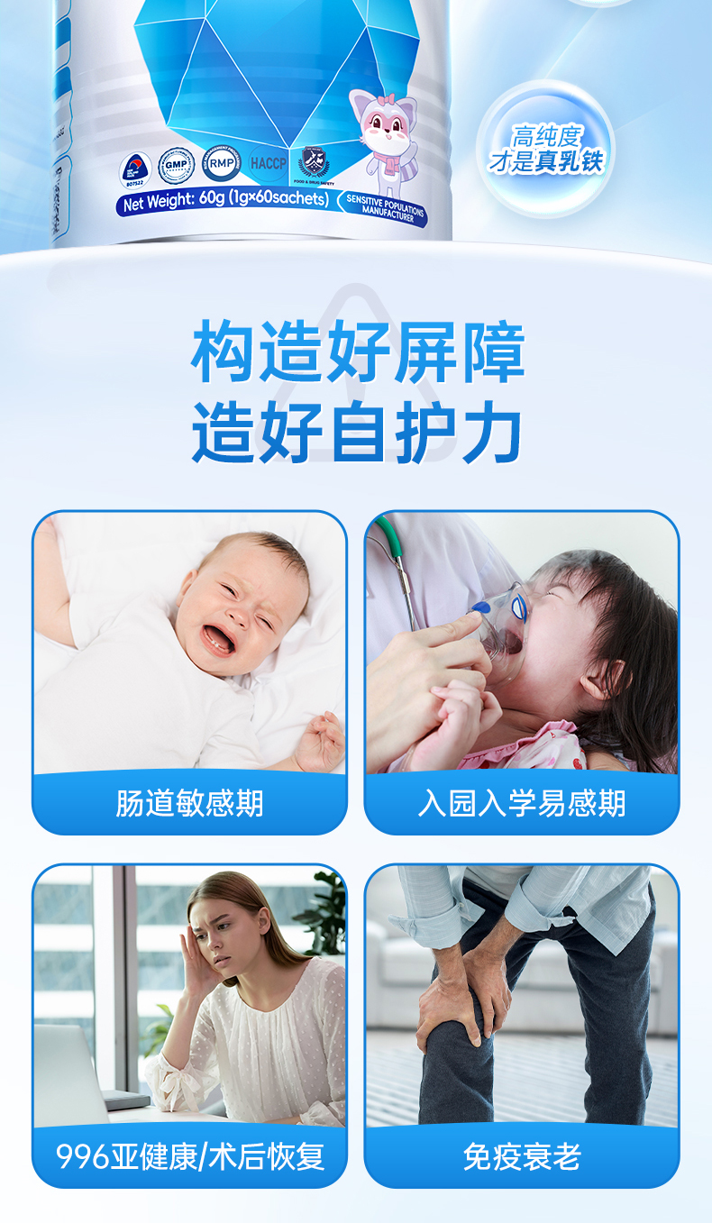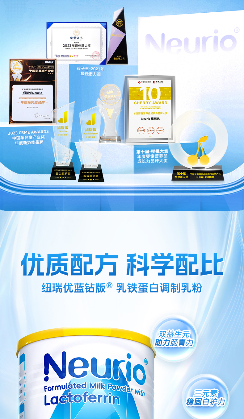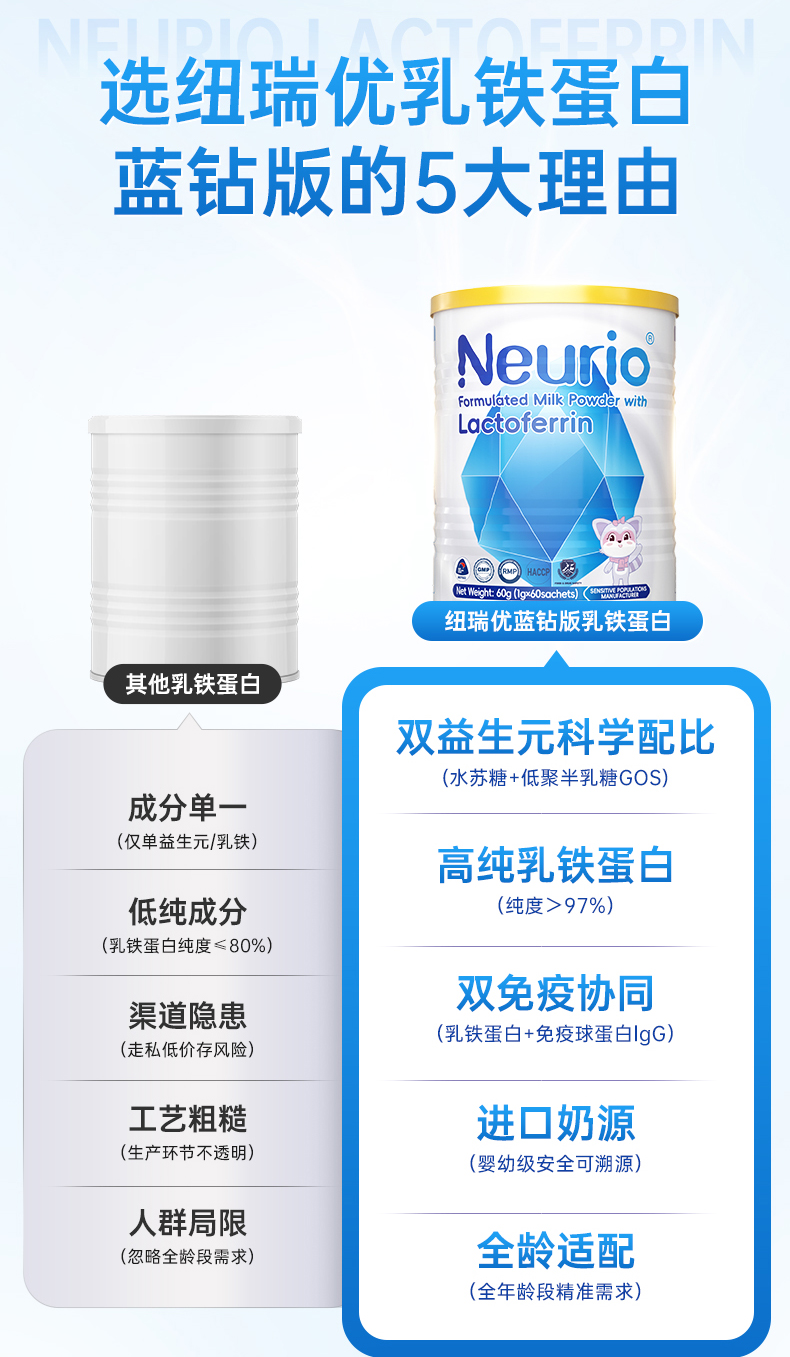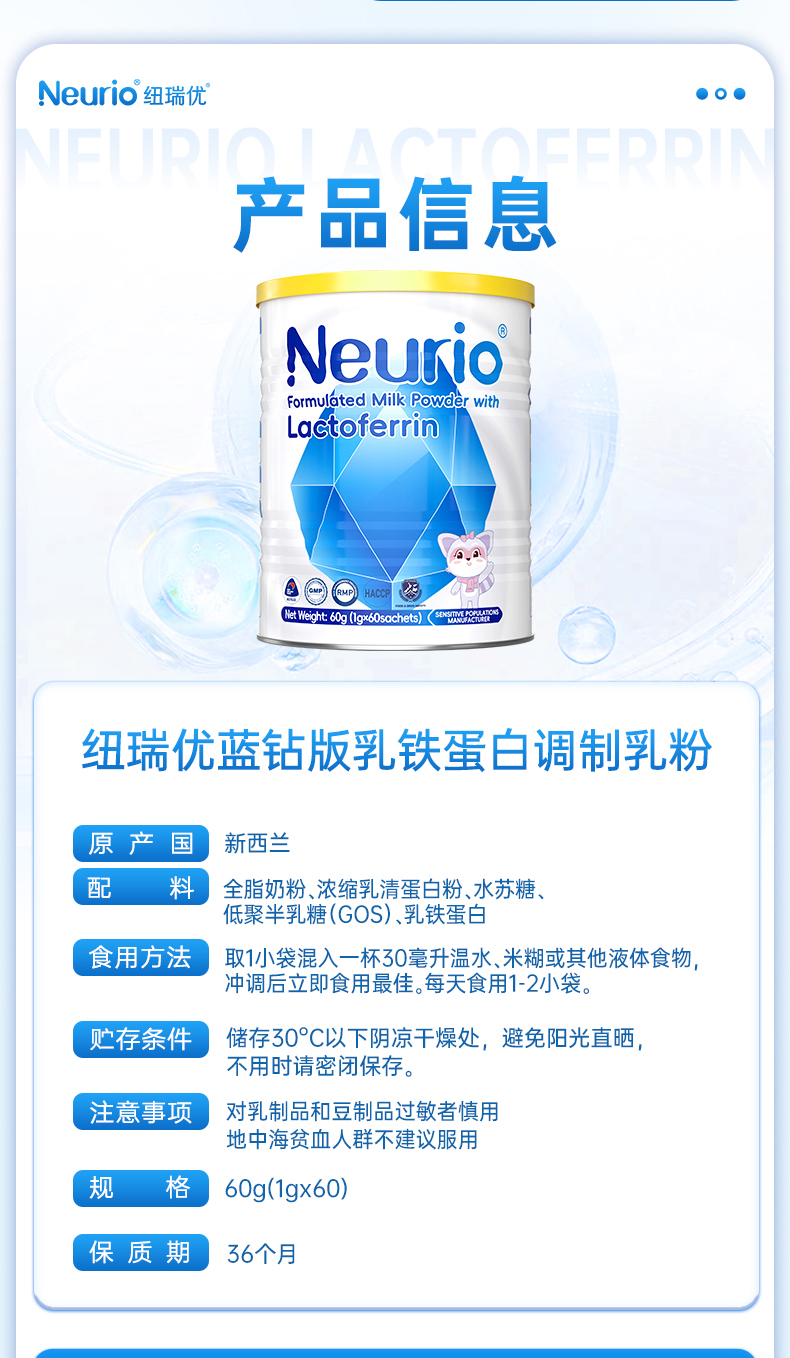 纽瑞优蓝钻版乳铁蛋白调制乳粉【适合需提高自护力,添加双益生元,调理肠道的人群】