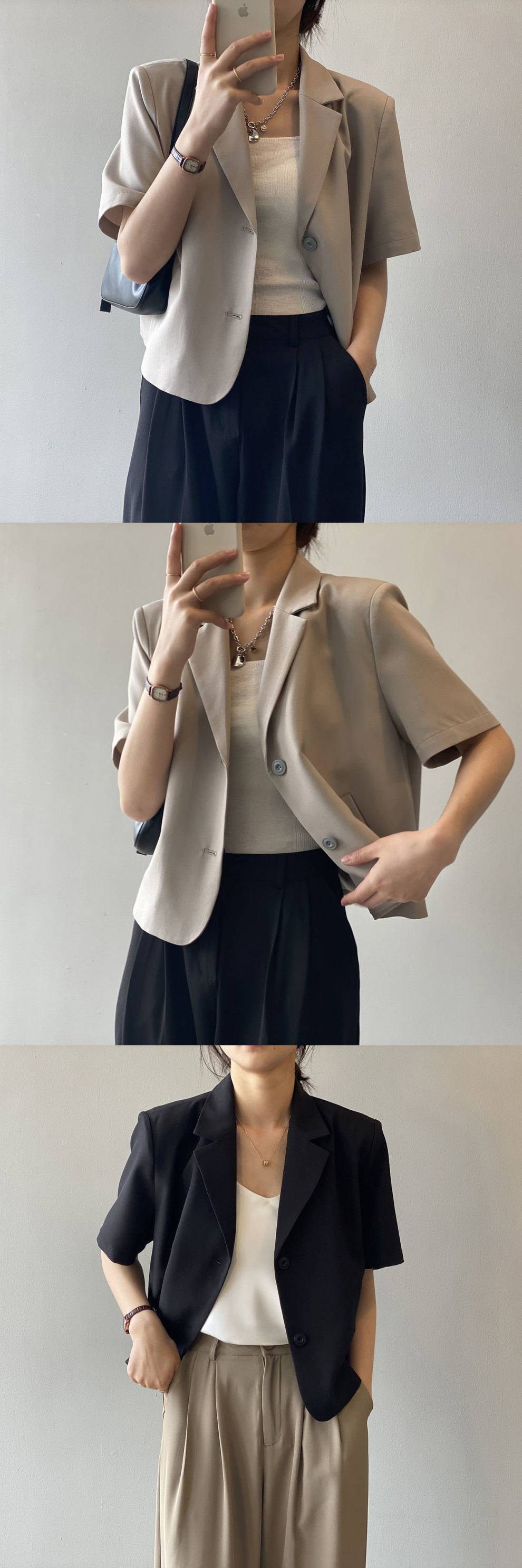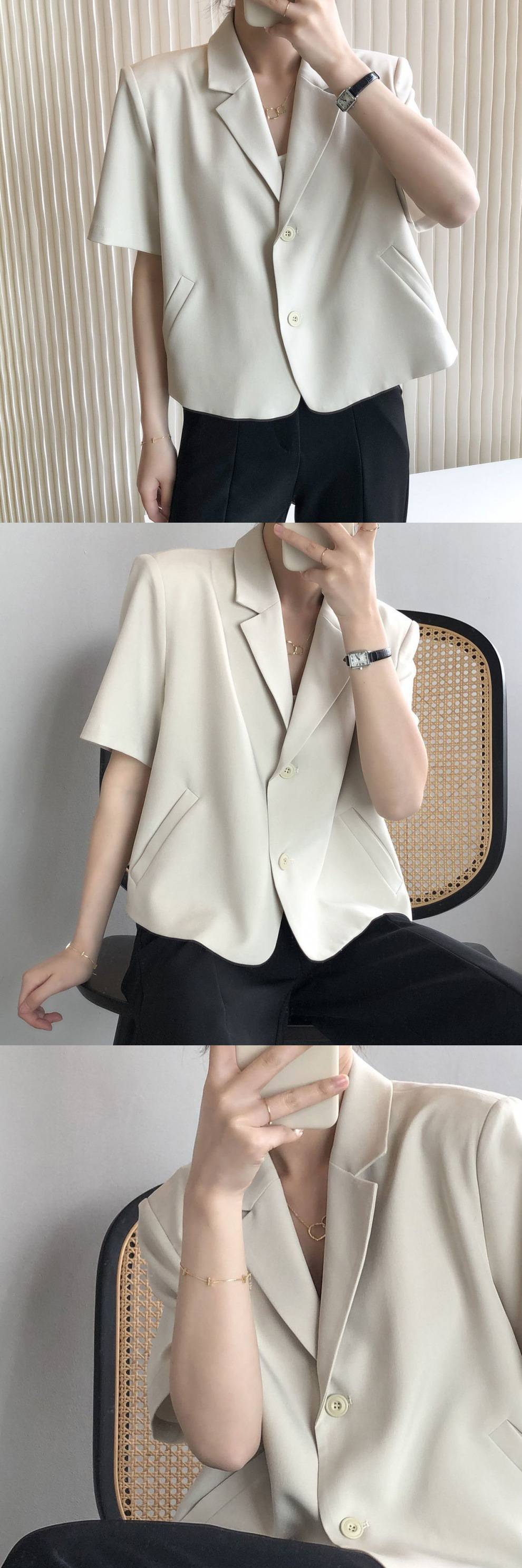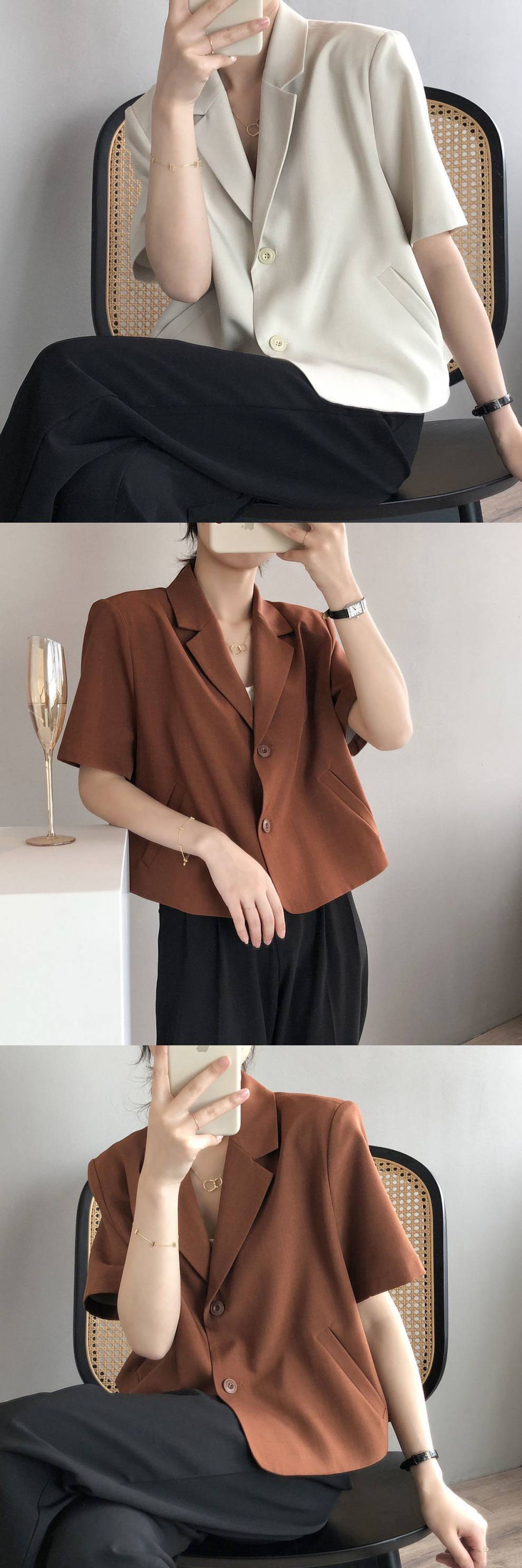 【时尚短袖垂感短款休闲小西服】西装外套女2023夏季薄款韩版新款上衣