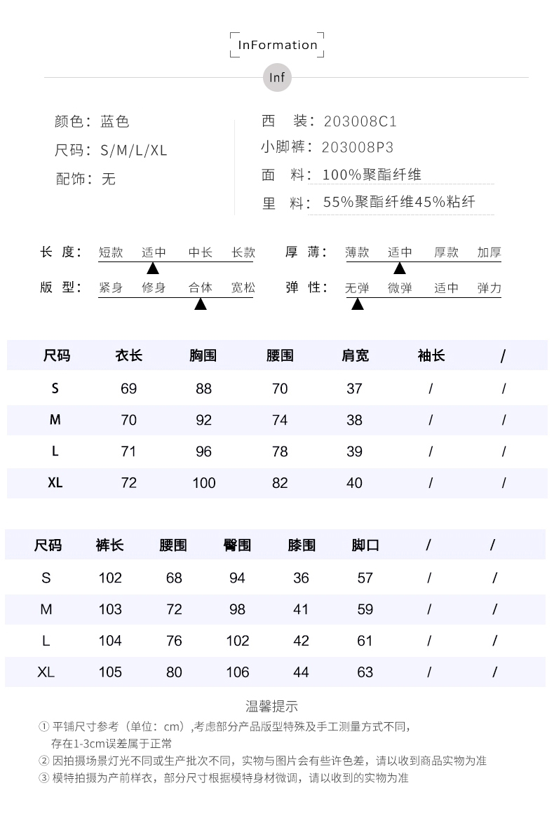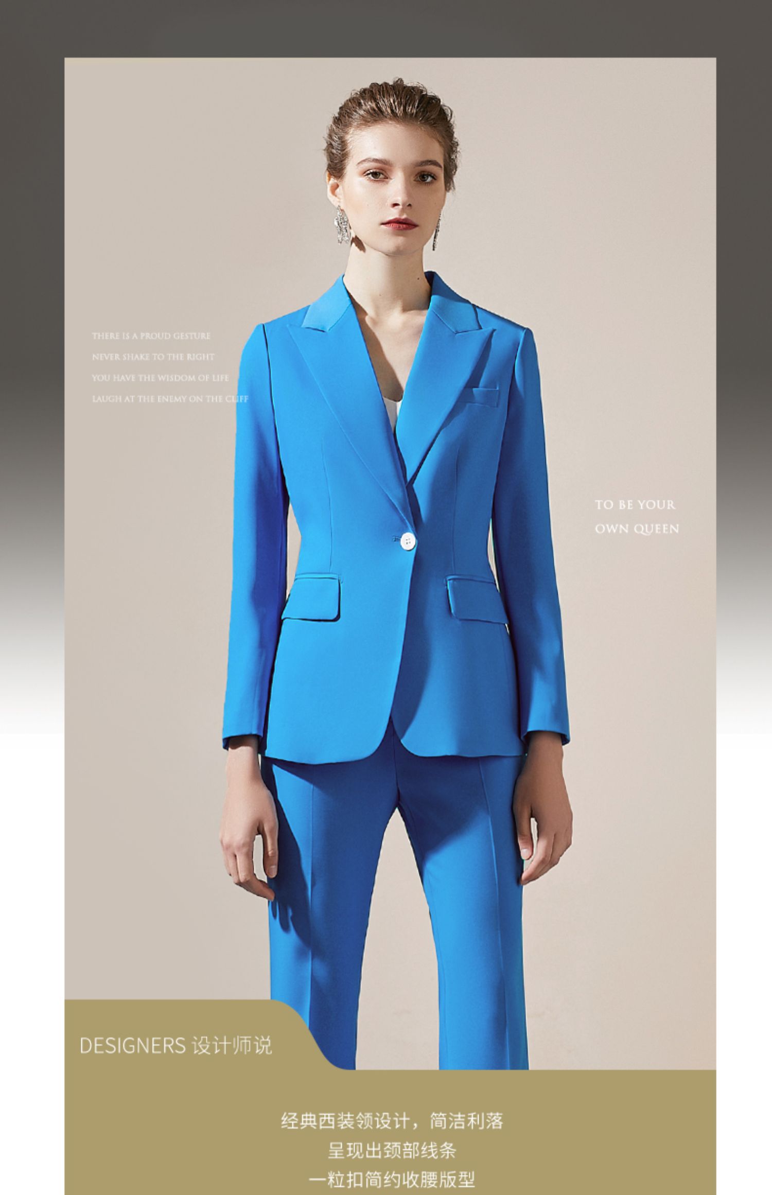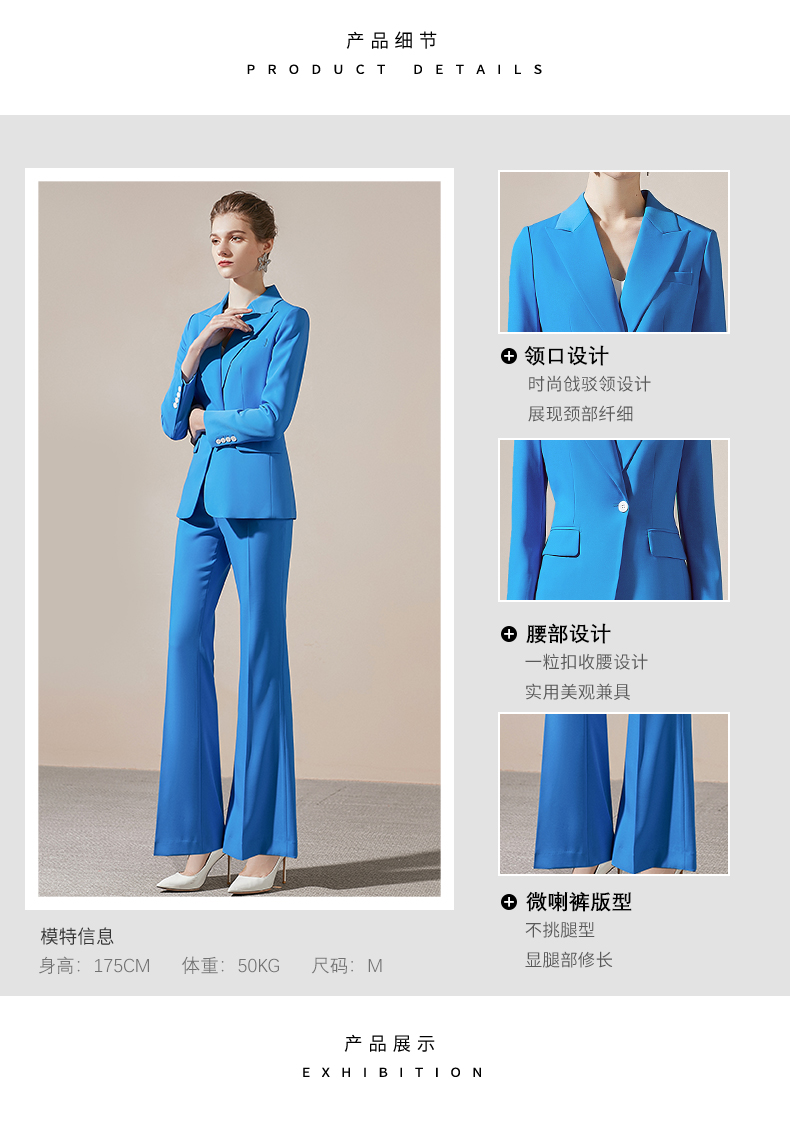 IWY/简约一粒扣高端职业装女总裁职场正装套装蓝色修身显瘦休闲工作服 203008C1+P3