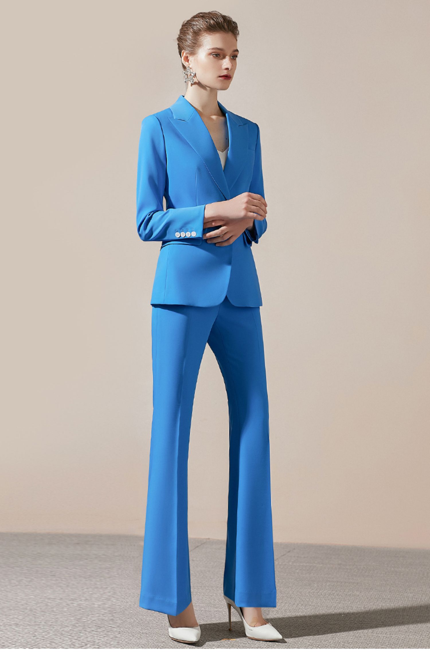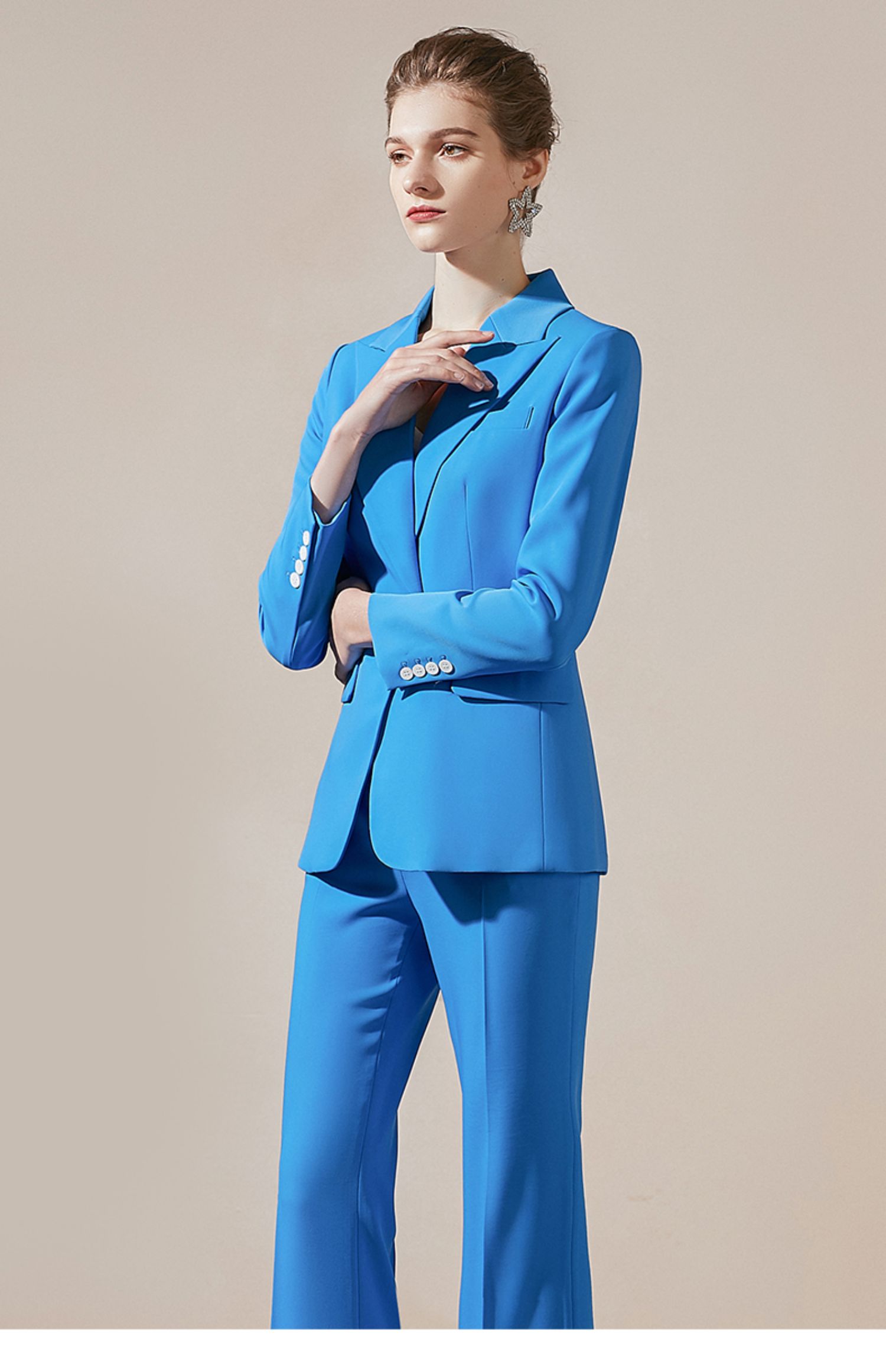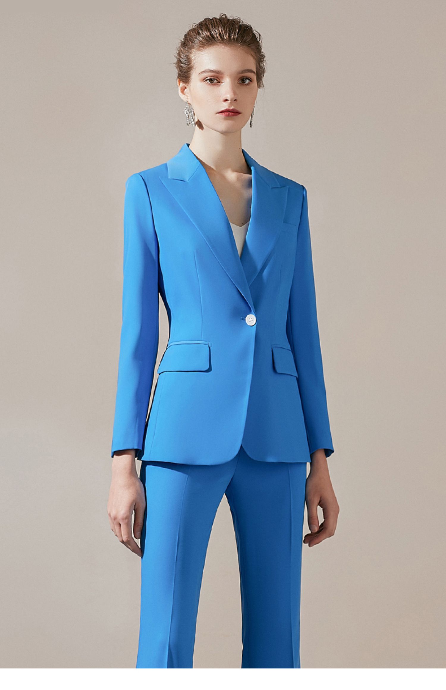 IWY/简约一粒扣高端职业装女总裁职场正装套装蓝色修身显瘦休闲工作服 203008C1+P3