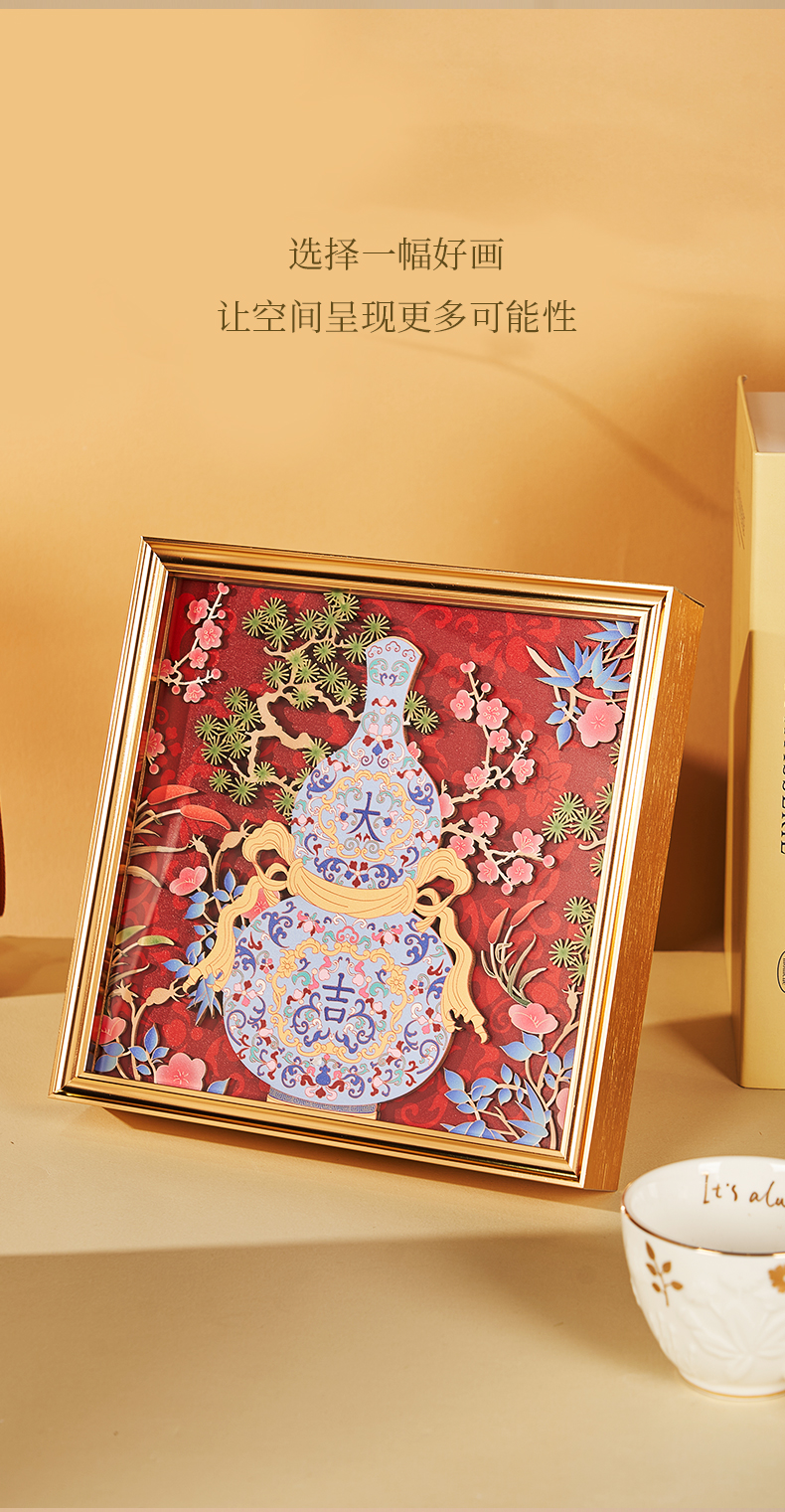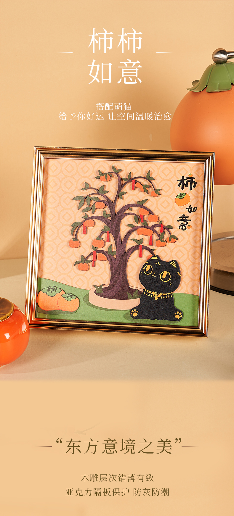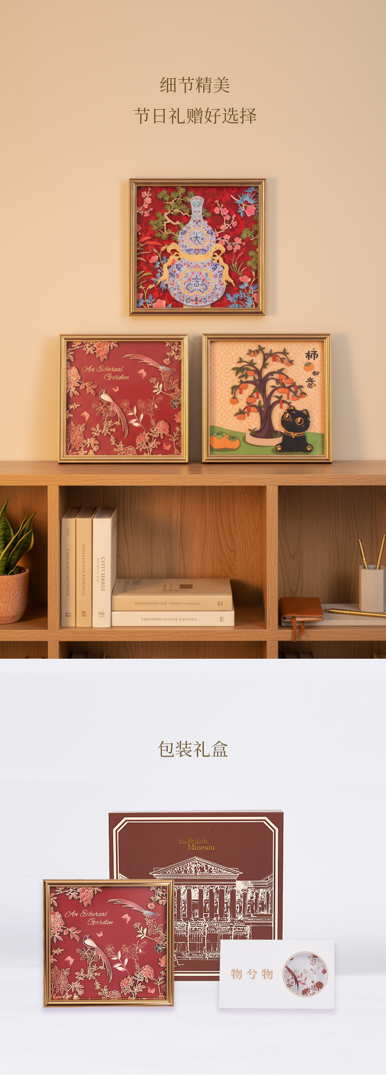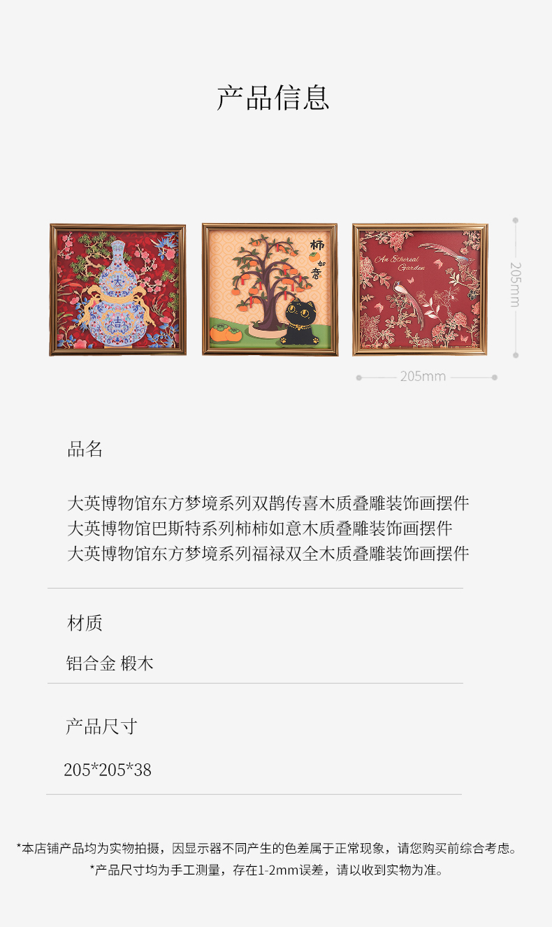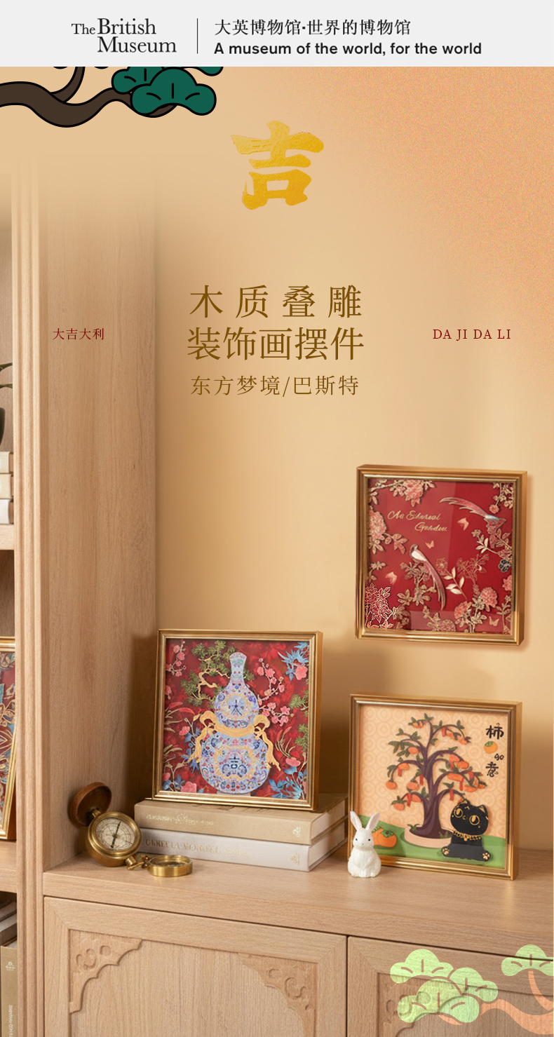 大英博物馆 东方梦境系列 双鹊传喜 福禄双全 盖亚·巴斯特系列 柿柿如意 木质叠雕装饰画摆件