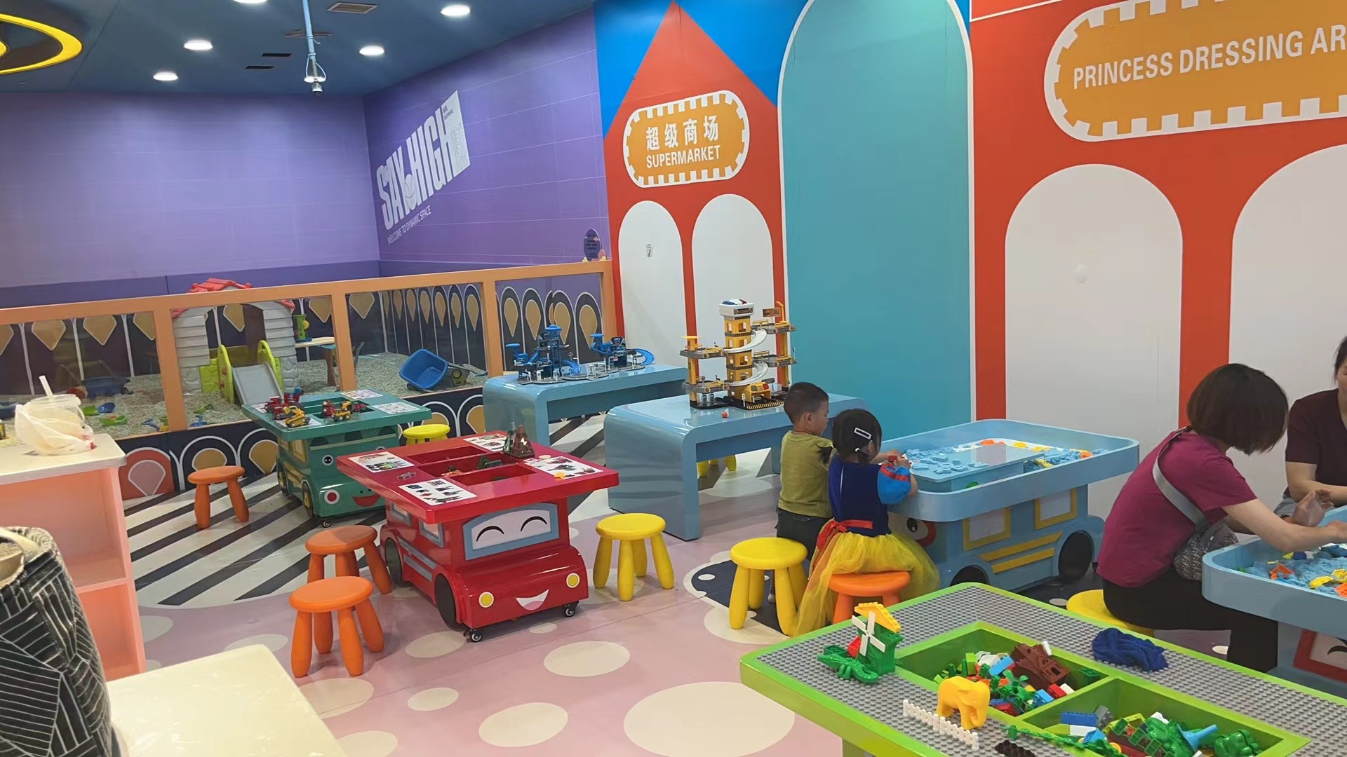 娃娃家、沙池、益智玩具区