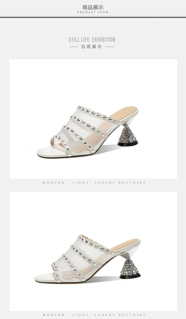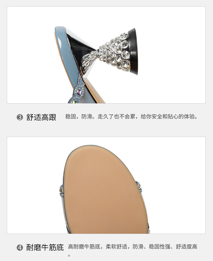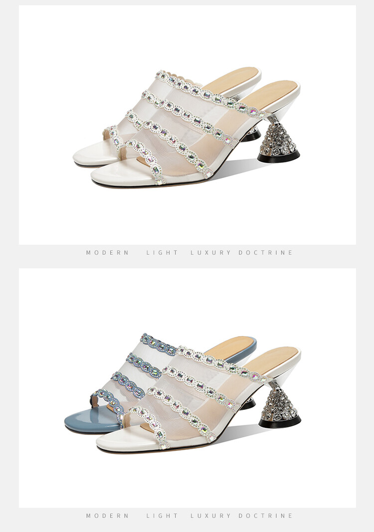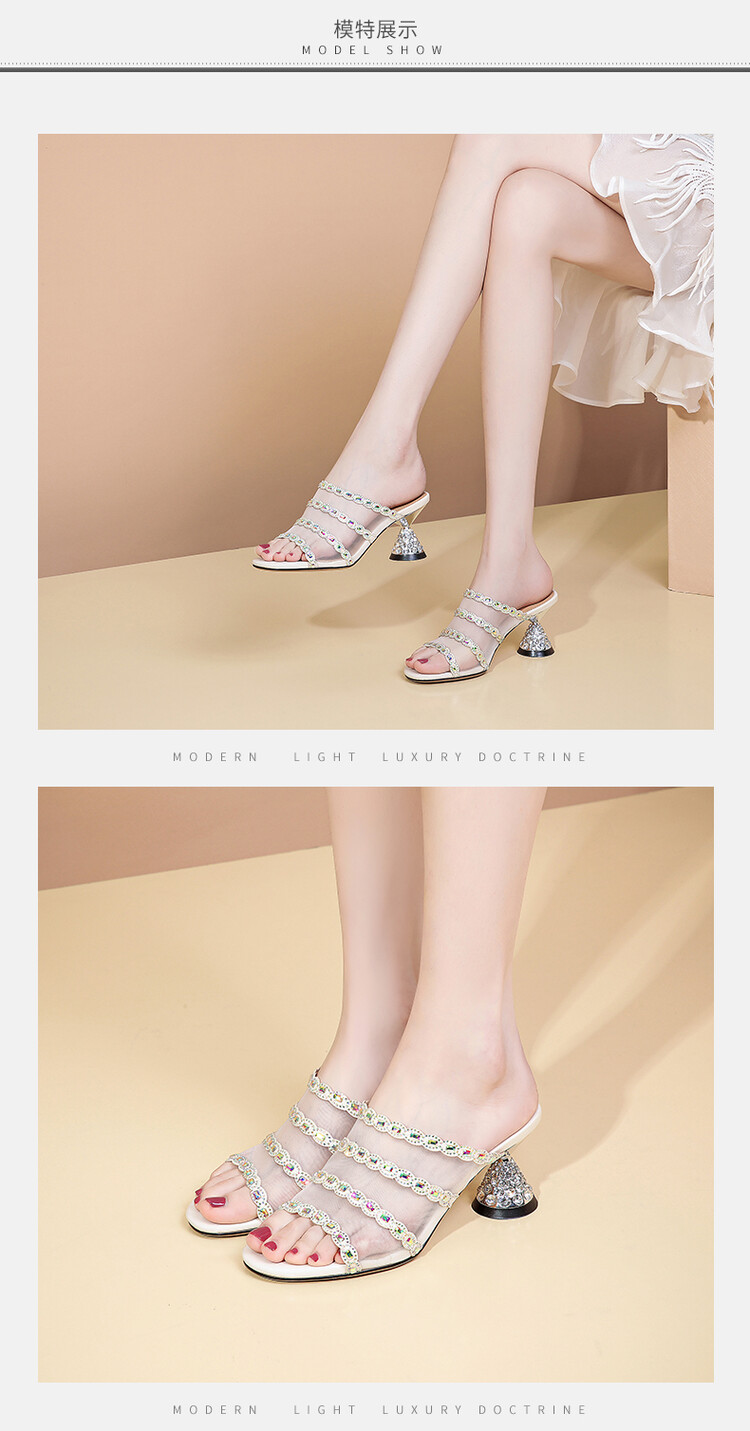 优雅百搭,网纱拼接镶钻高跟凉拖DP-8312