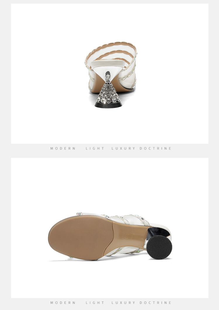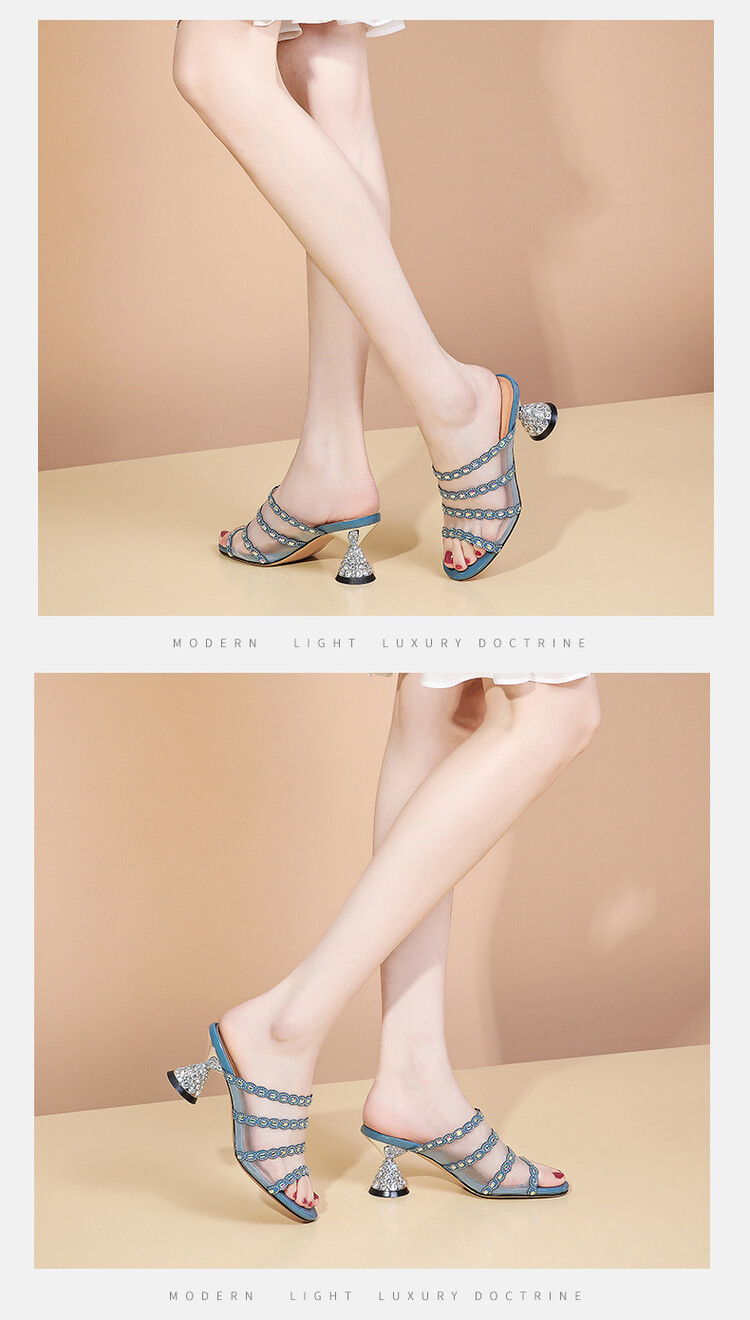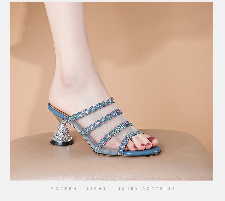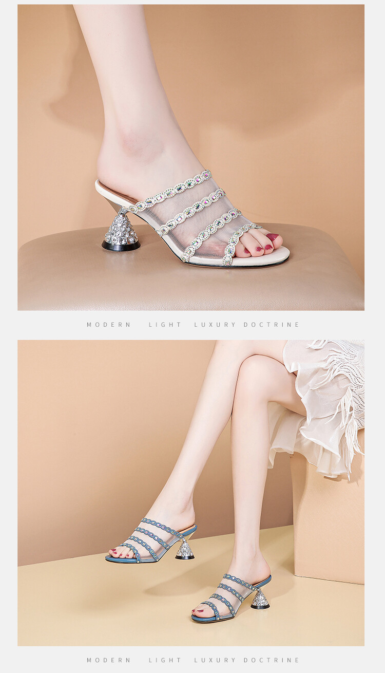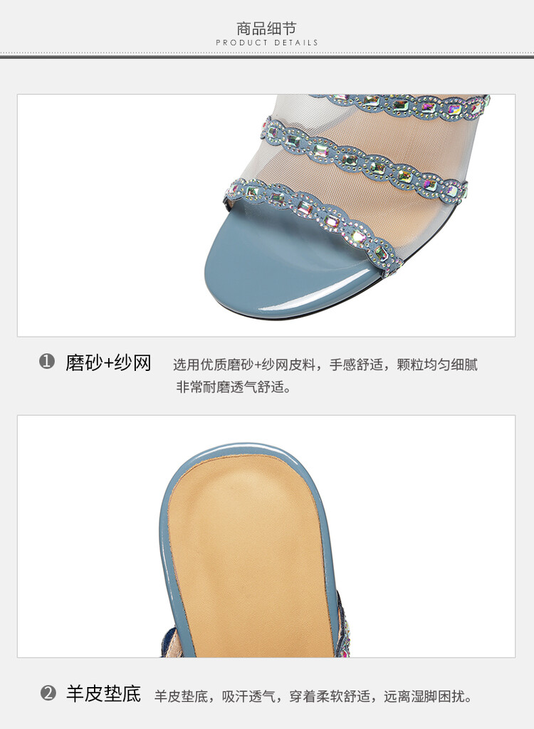 优雅百搭,网纱拼接镶钻高跟凉拖DP-8312