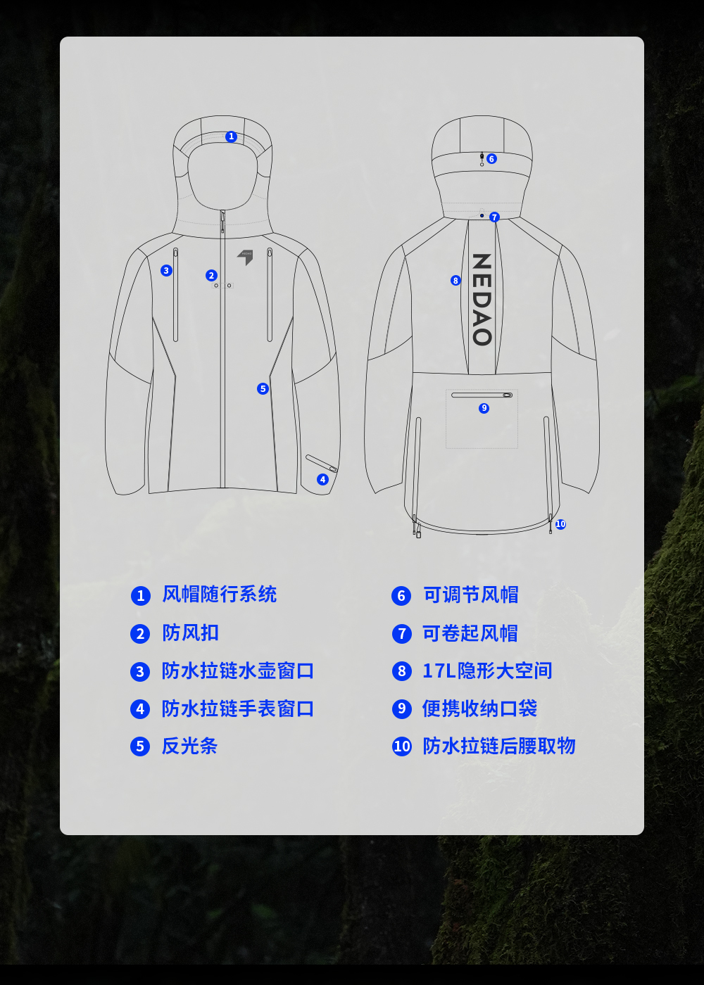 NEDAO男女同款防暴雨防强风越野强制装备多功能雨战冲锋衣