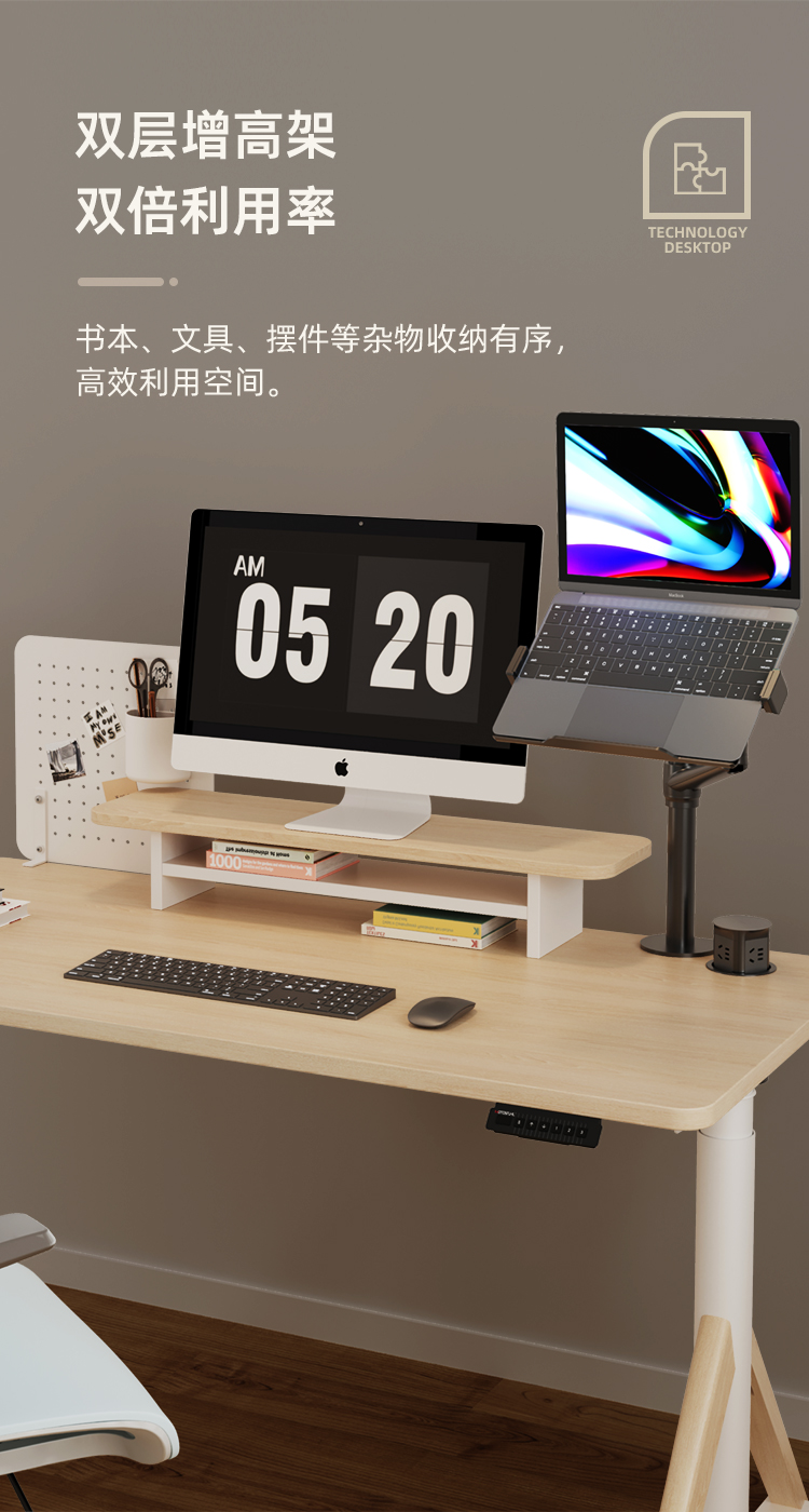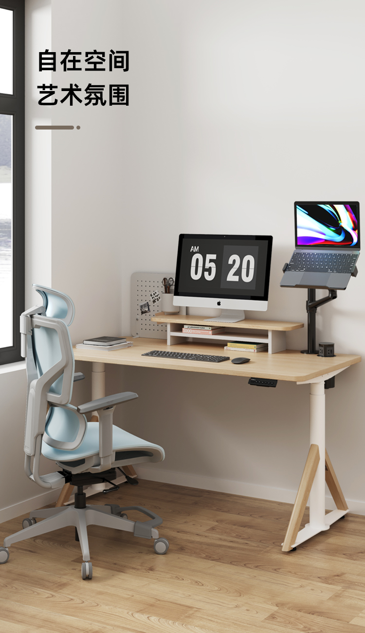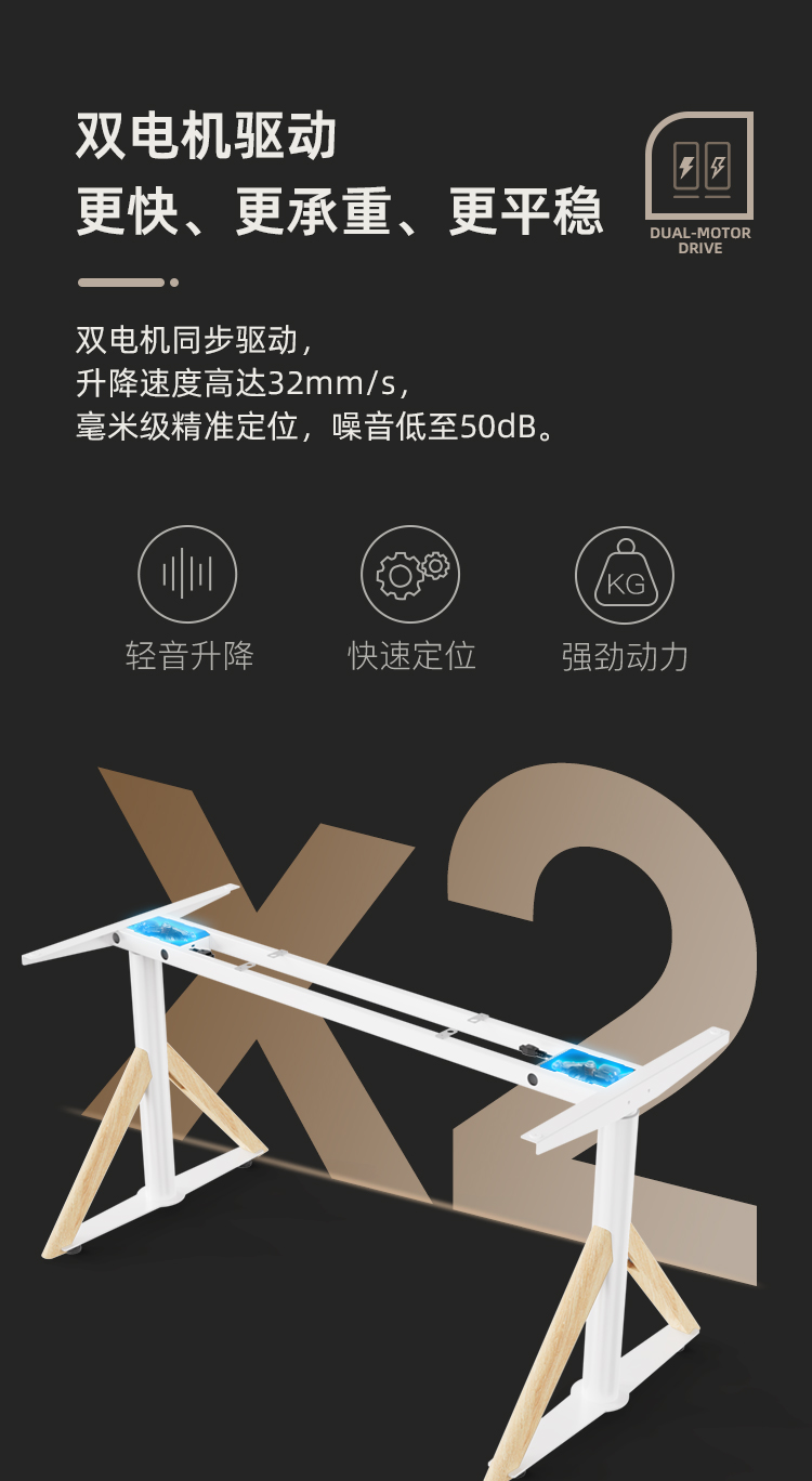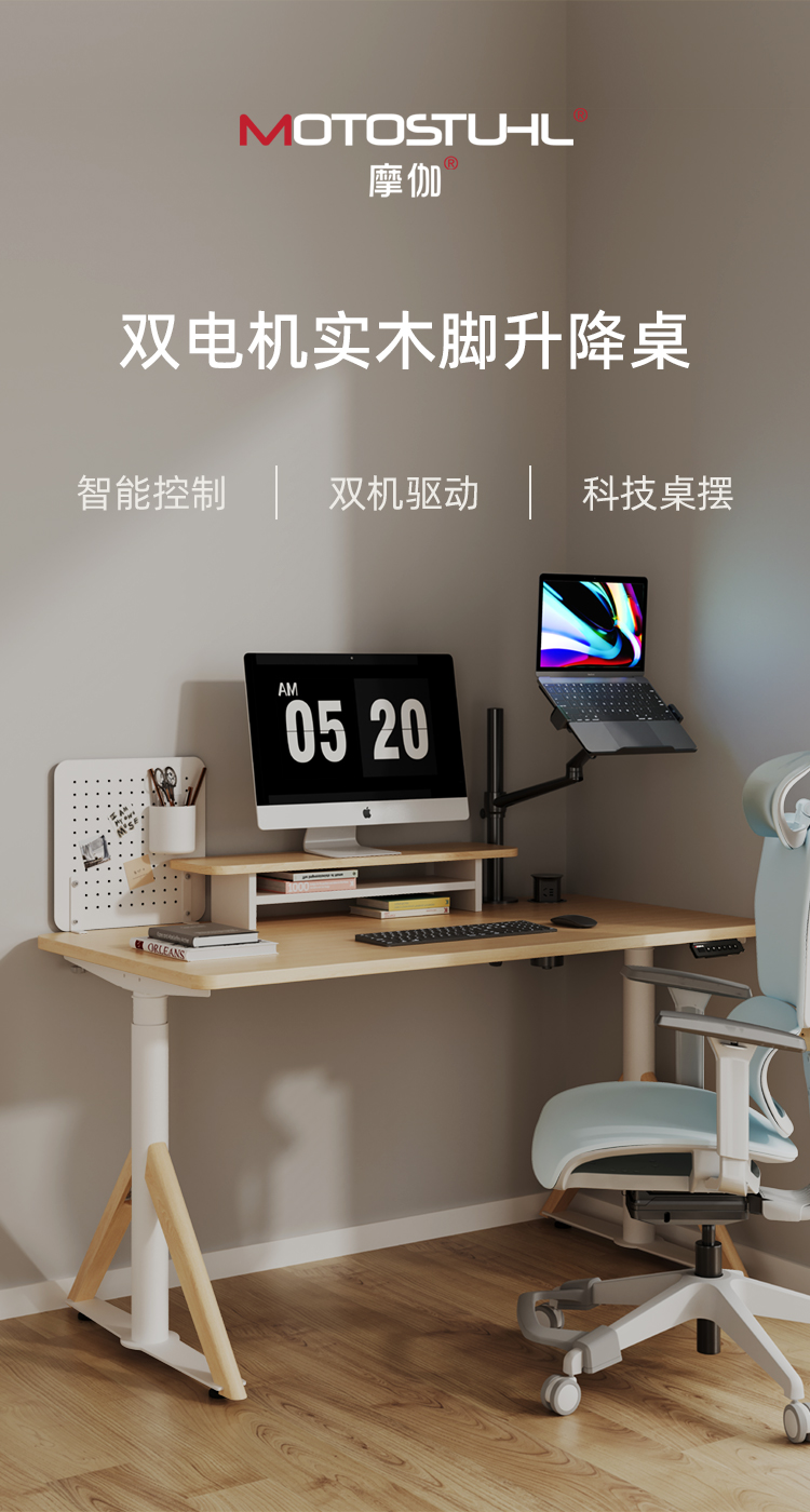 摩伽Super-S双电机驱动电动升降桌木脚电脑电竞办公桌
