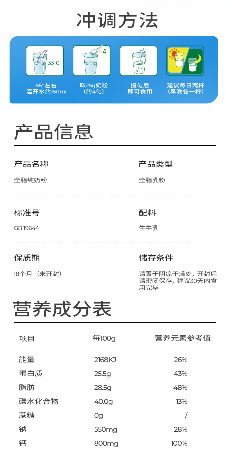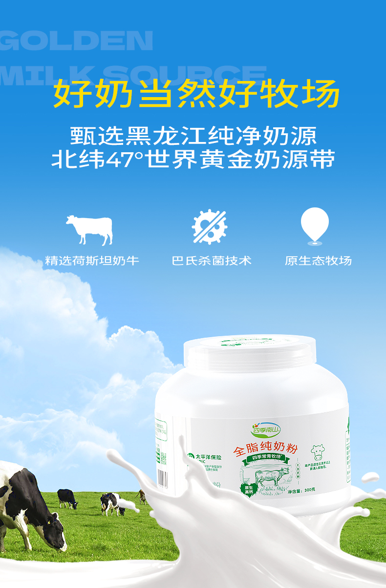 ³ 发2罐【全脂纯牛奶粉】100生牛乳 300g/罐 XN03-CRMM-SJNS