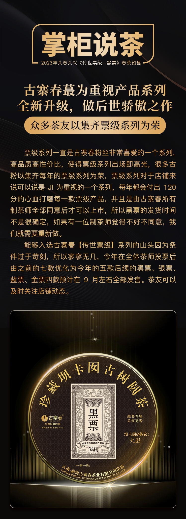 【传世—黑票】坝卡囡全新全面升级更稀缺更具有收藏价值一年仅采一次一年仅出一批,古寨春独享茶地片区资源