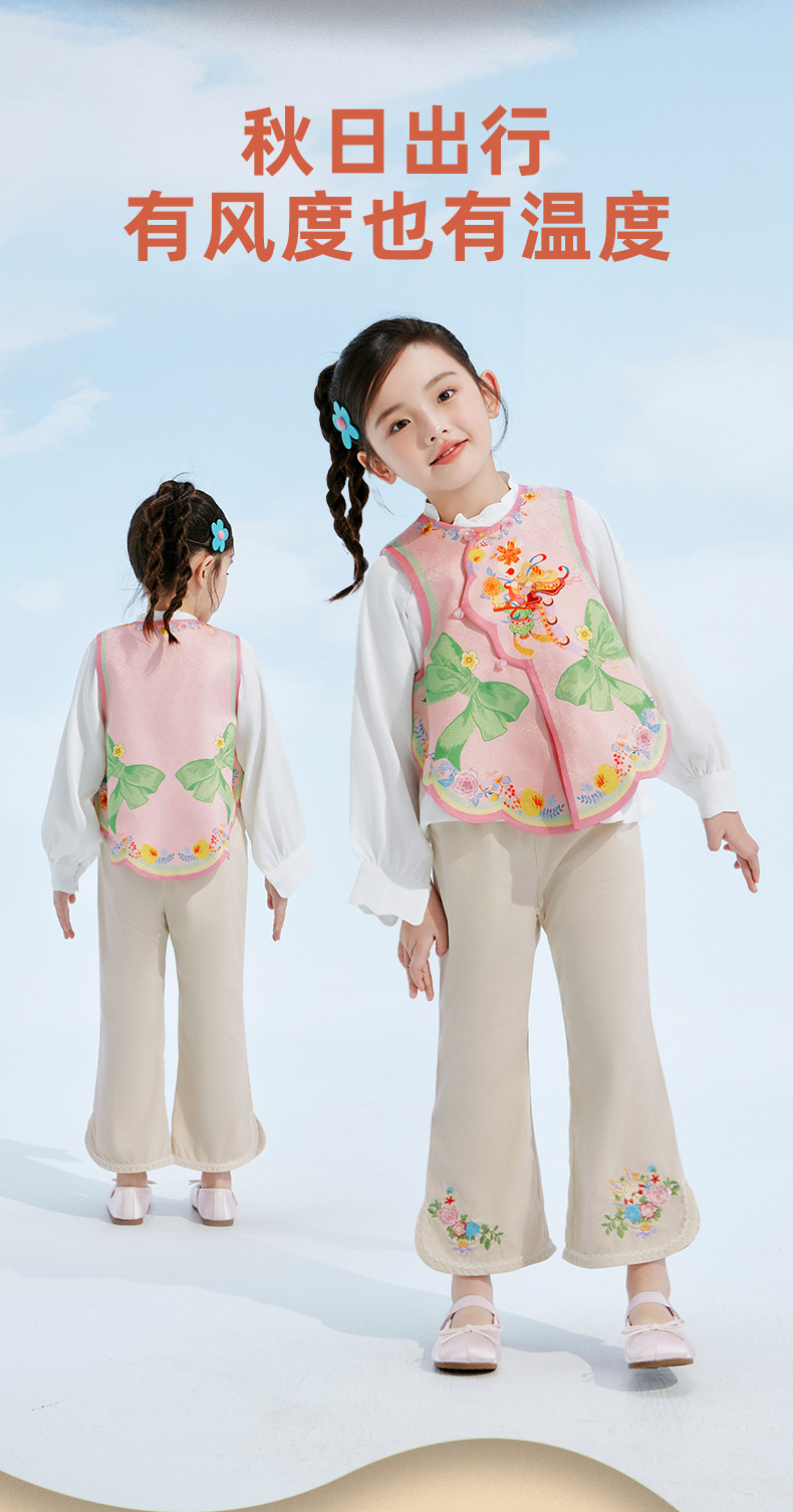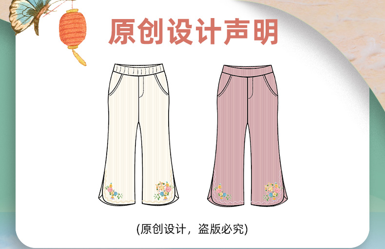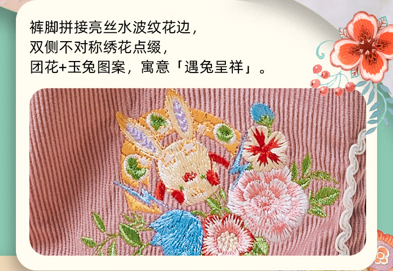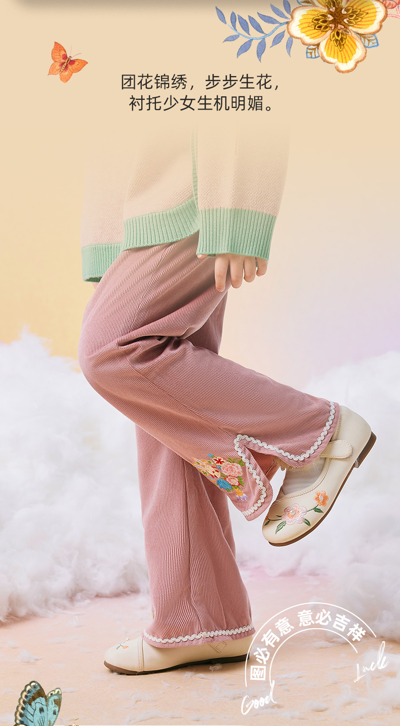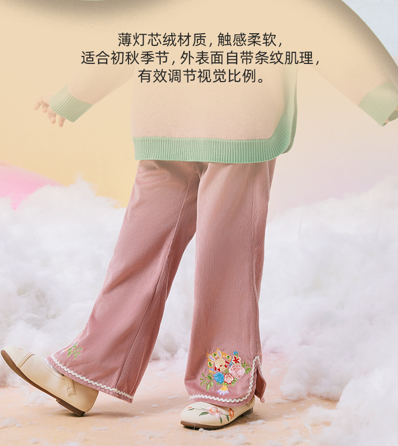 年衣童装女童裤子秋冬新款儿童灯芯绒宽松长裤女孩甜美喇叭裤桃花慕斯长裤