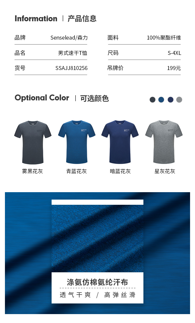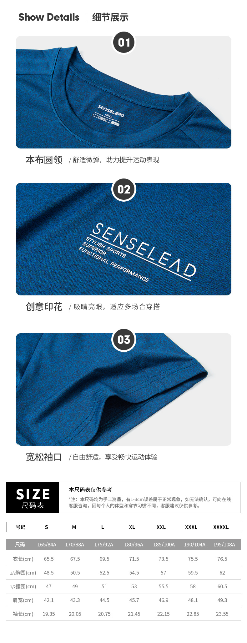 Senselead森力/男式速干圆领短T恤 SSAJG81013