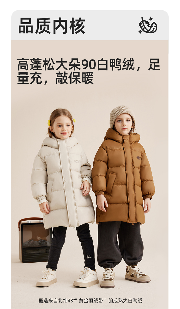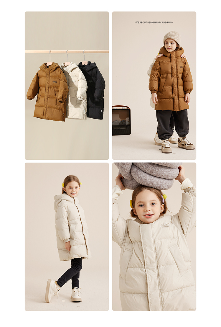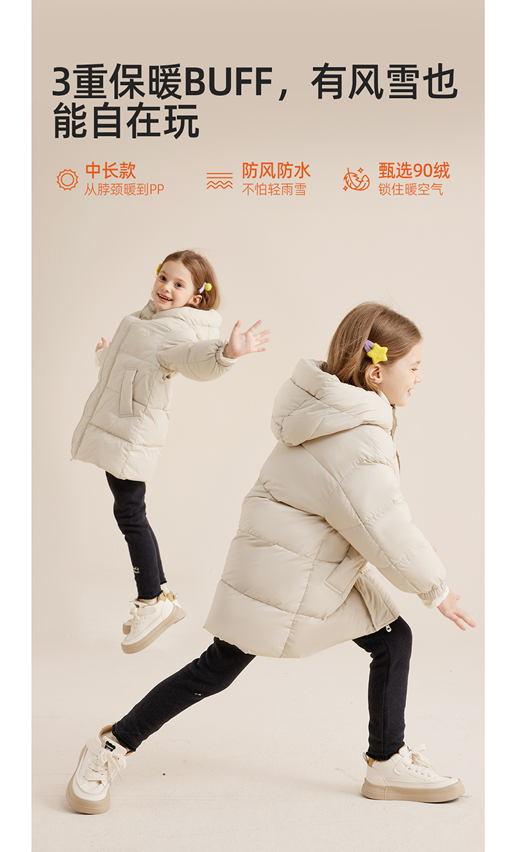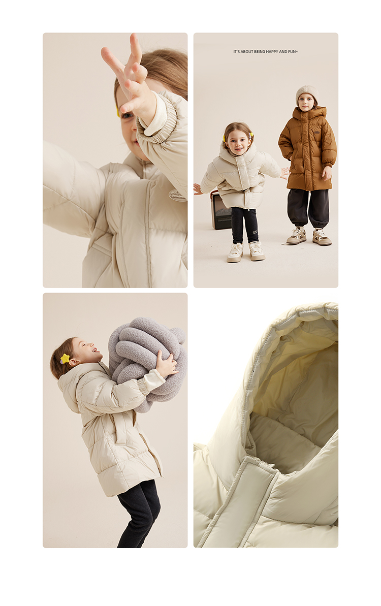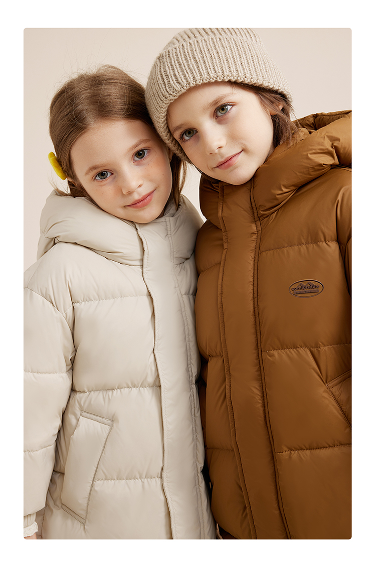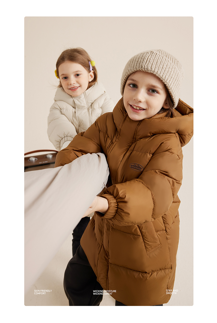 【暖到脖子的羽绒王者 防风抗寒】美拉德色系儿童中长款90白鸭绒连帽羽绒服PDWT2302