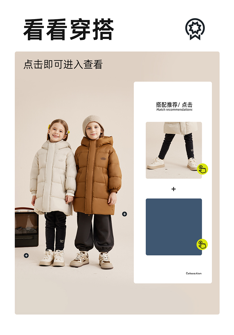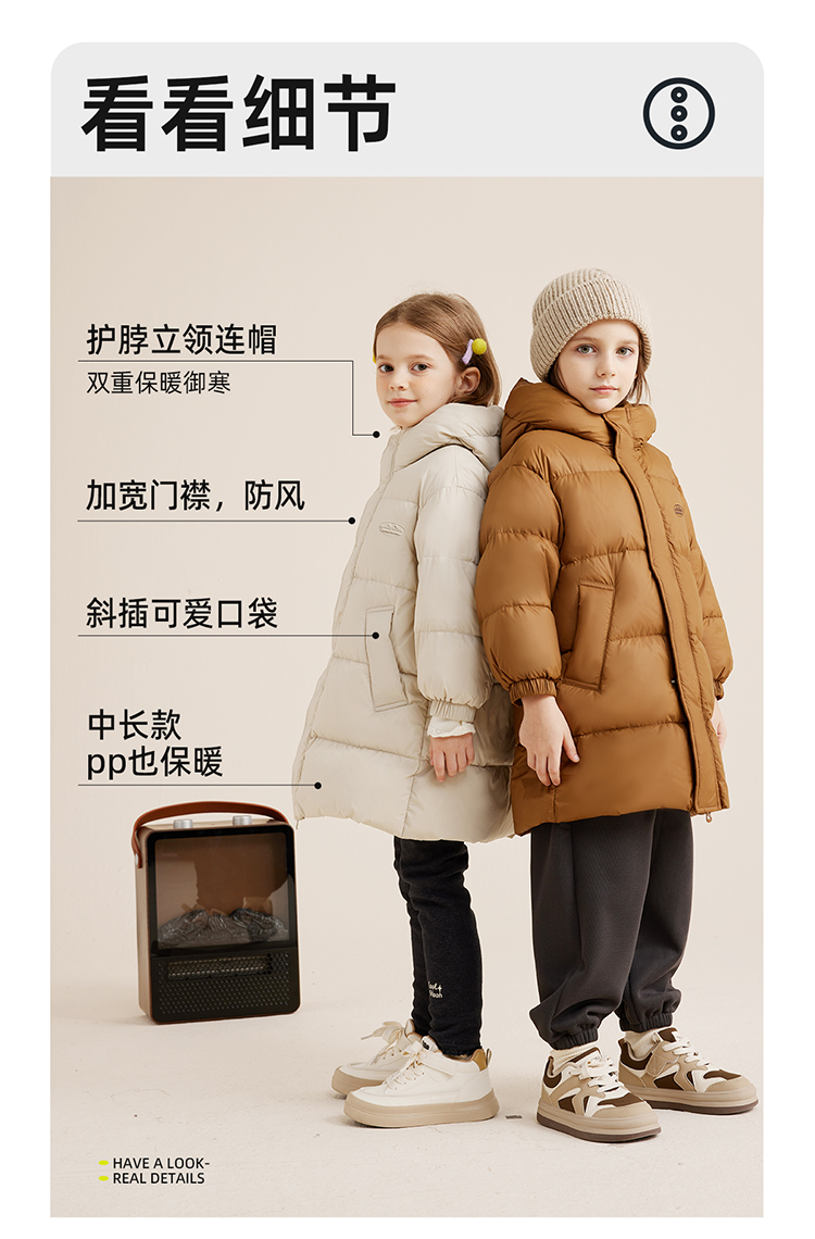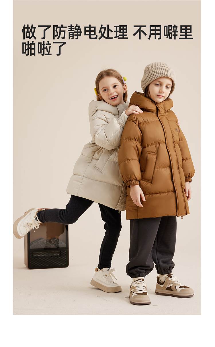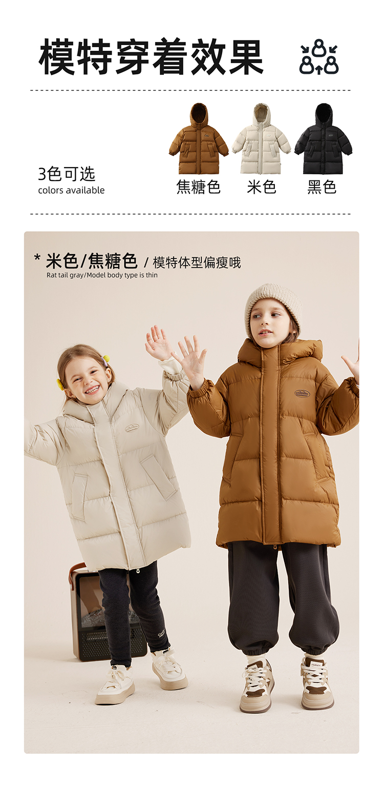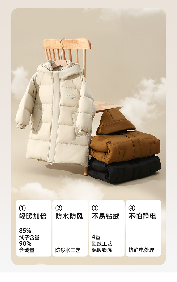 【暖到脖子的羽绒王者 防风抗寒】美拉德色系儿童中长款90白鸭绒连帽羽绒服PDWT2302