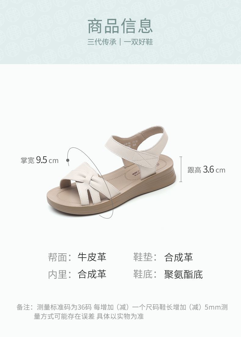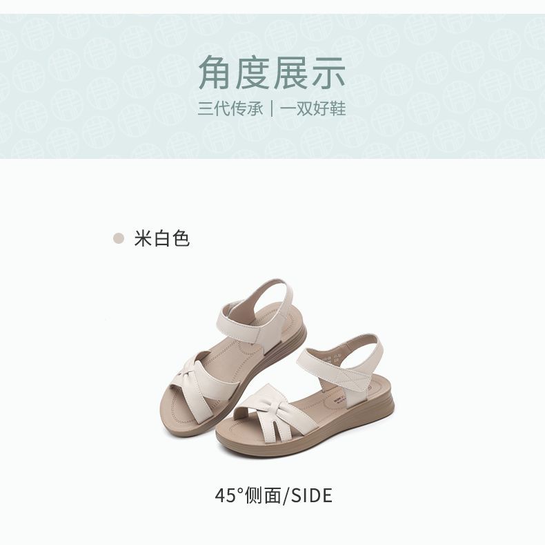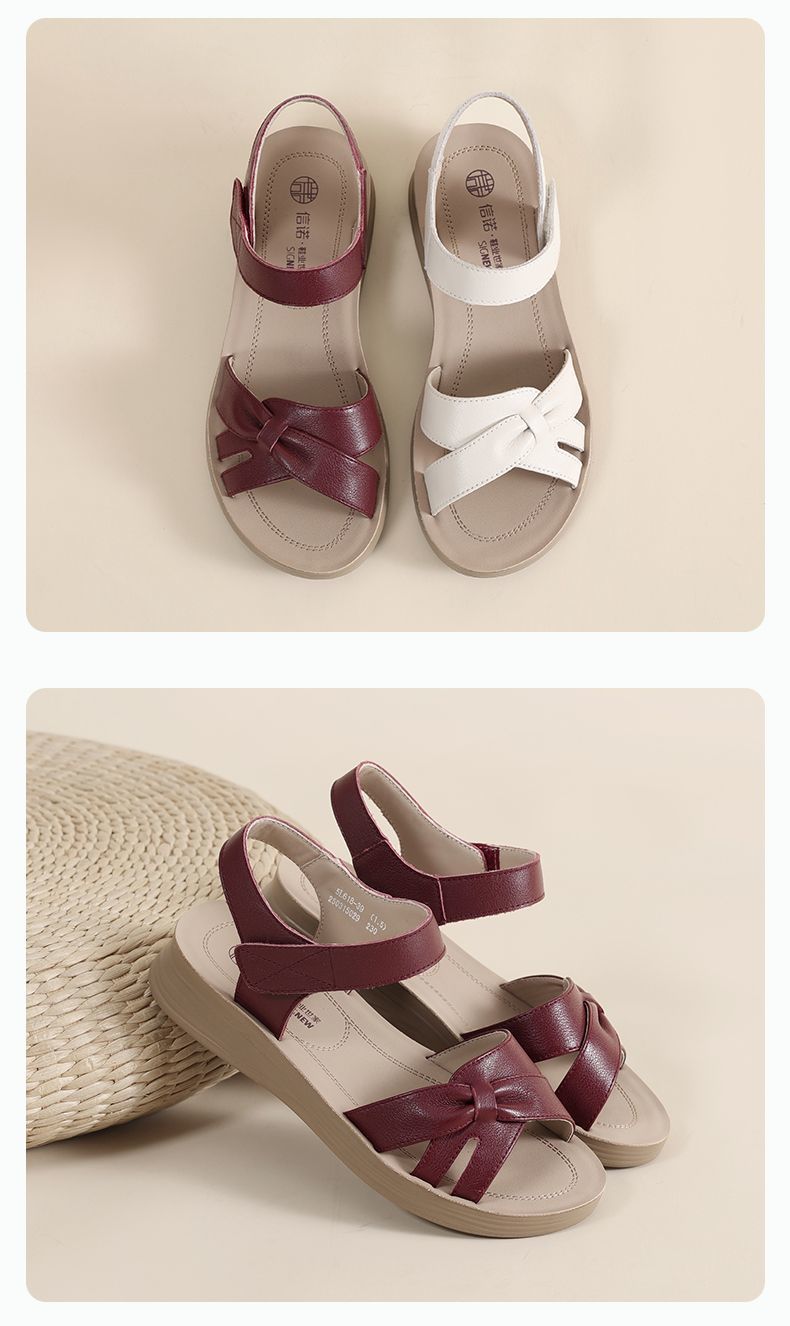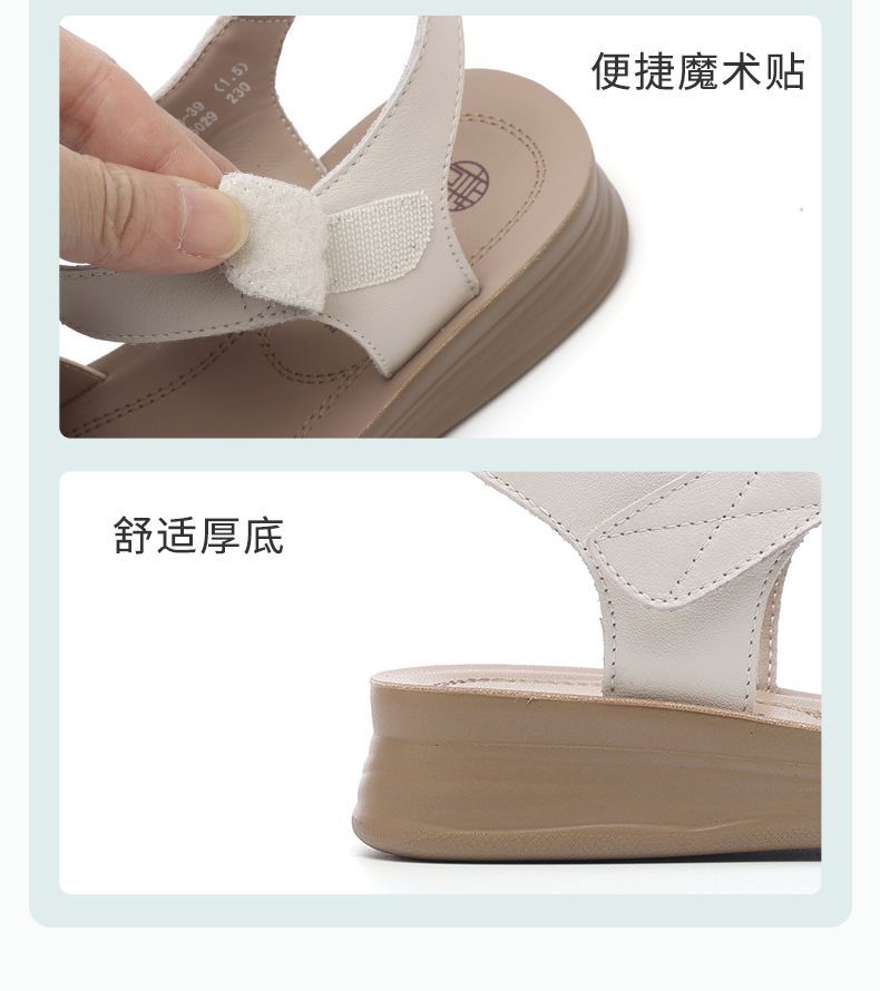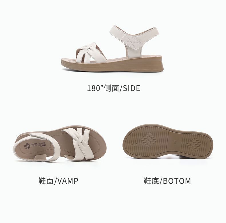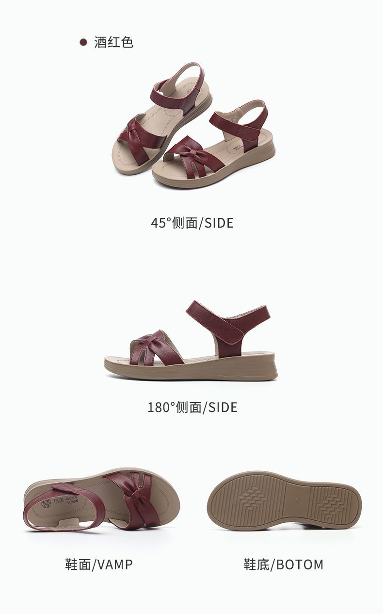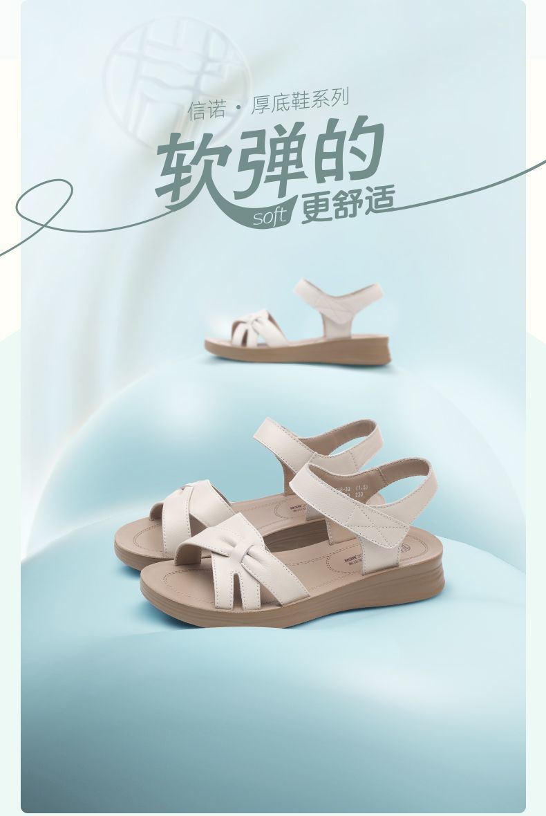 信诺真皮妈妈凉鞋女款平底2025新款夏季平底舒适软底魔术贴女鞋子5L618-39