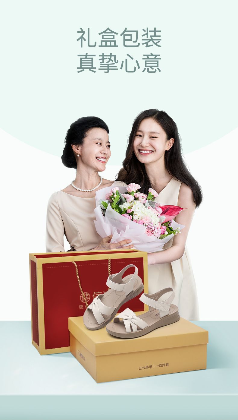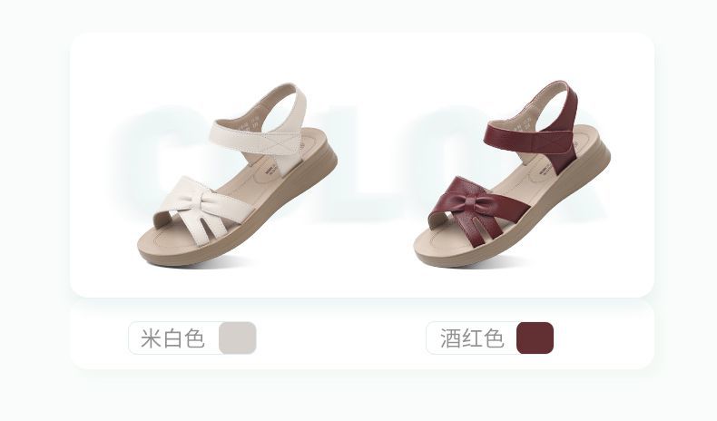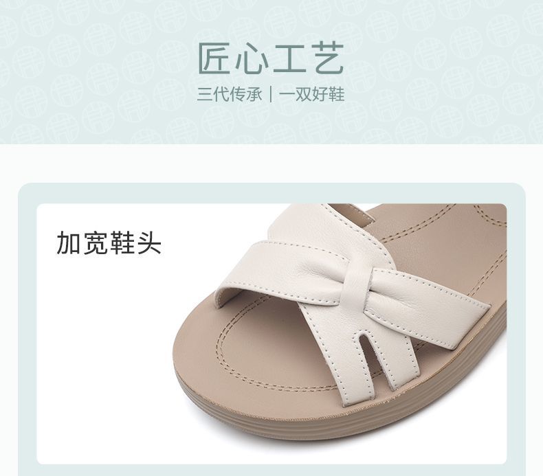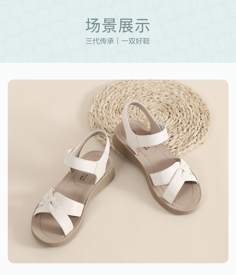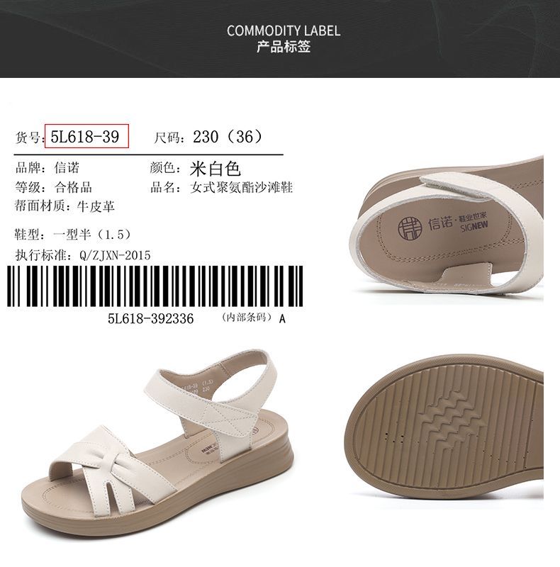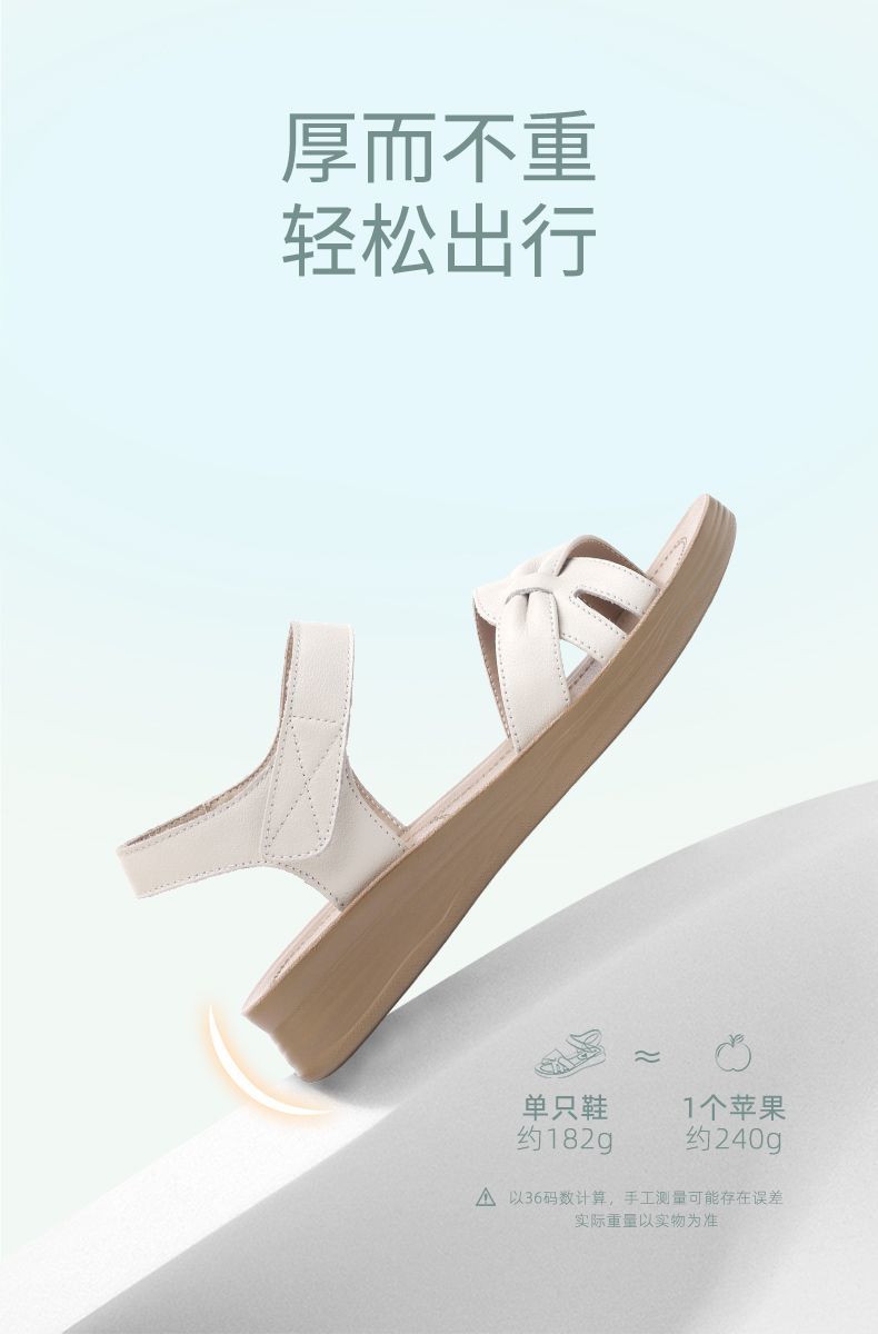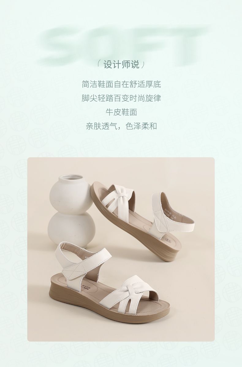 信诺真皮妈妈凉鞋女款平底2025新款夏季平底舒适软底魔术贴女鞋子5L618-39