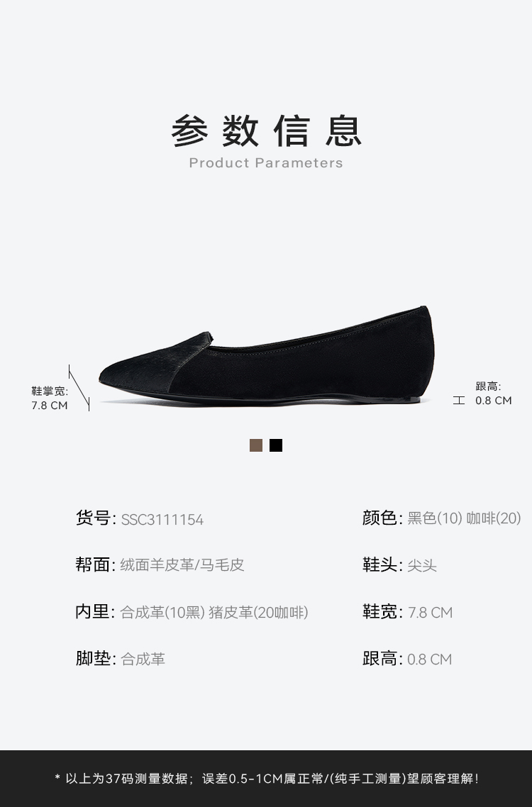 星期六质感马毛皮尖头平底鞋SSC3111154