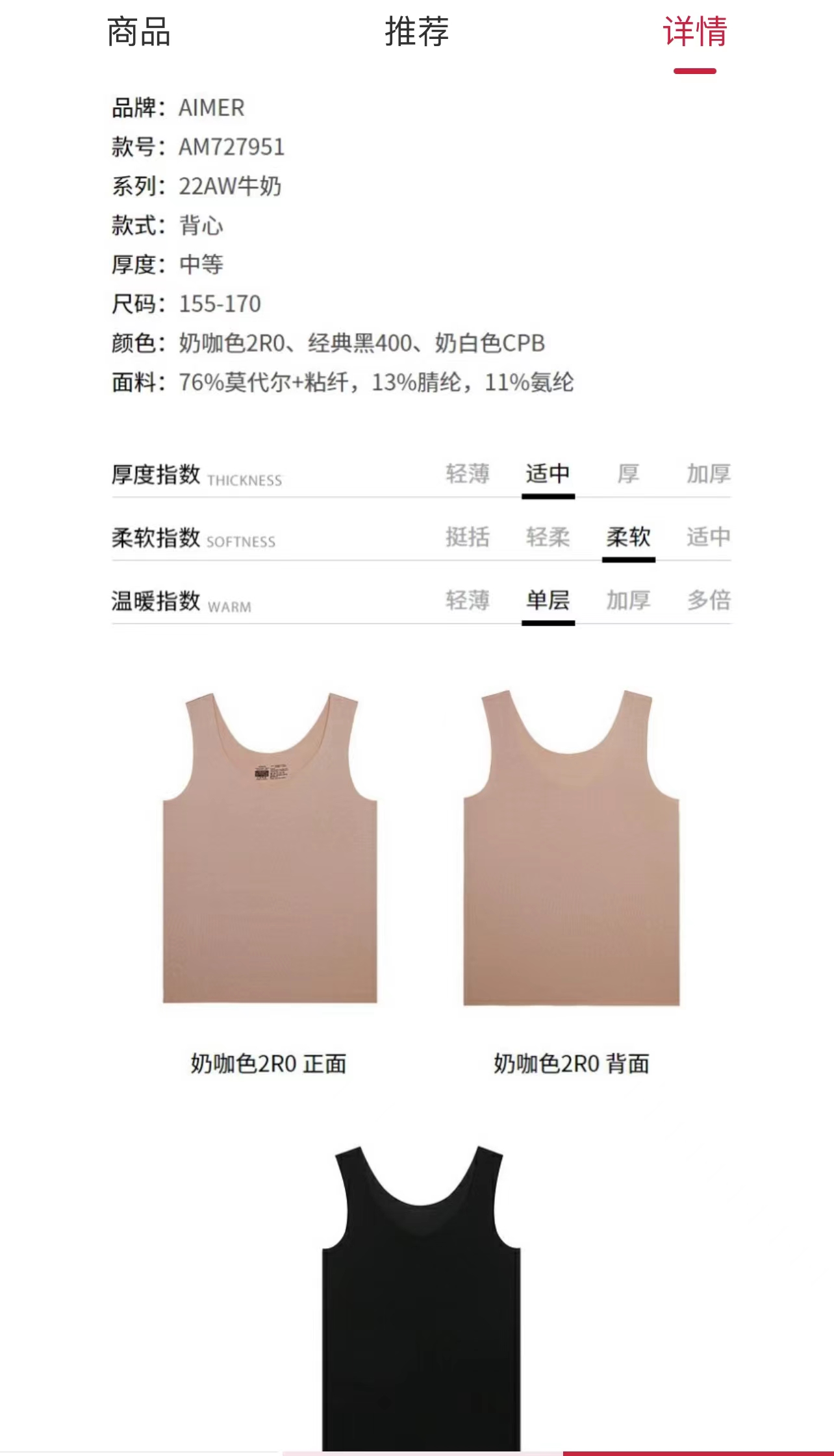 5F AIMER 爱慕22AW牛奶系无痕背心