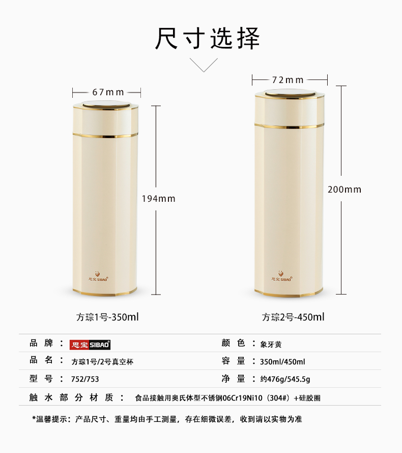 思宝方琮1/2号新品真空保温杯礼盒包装便携车载男女通用内置茶隔