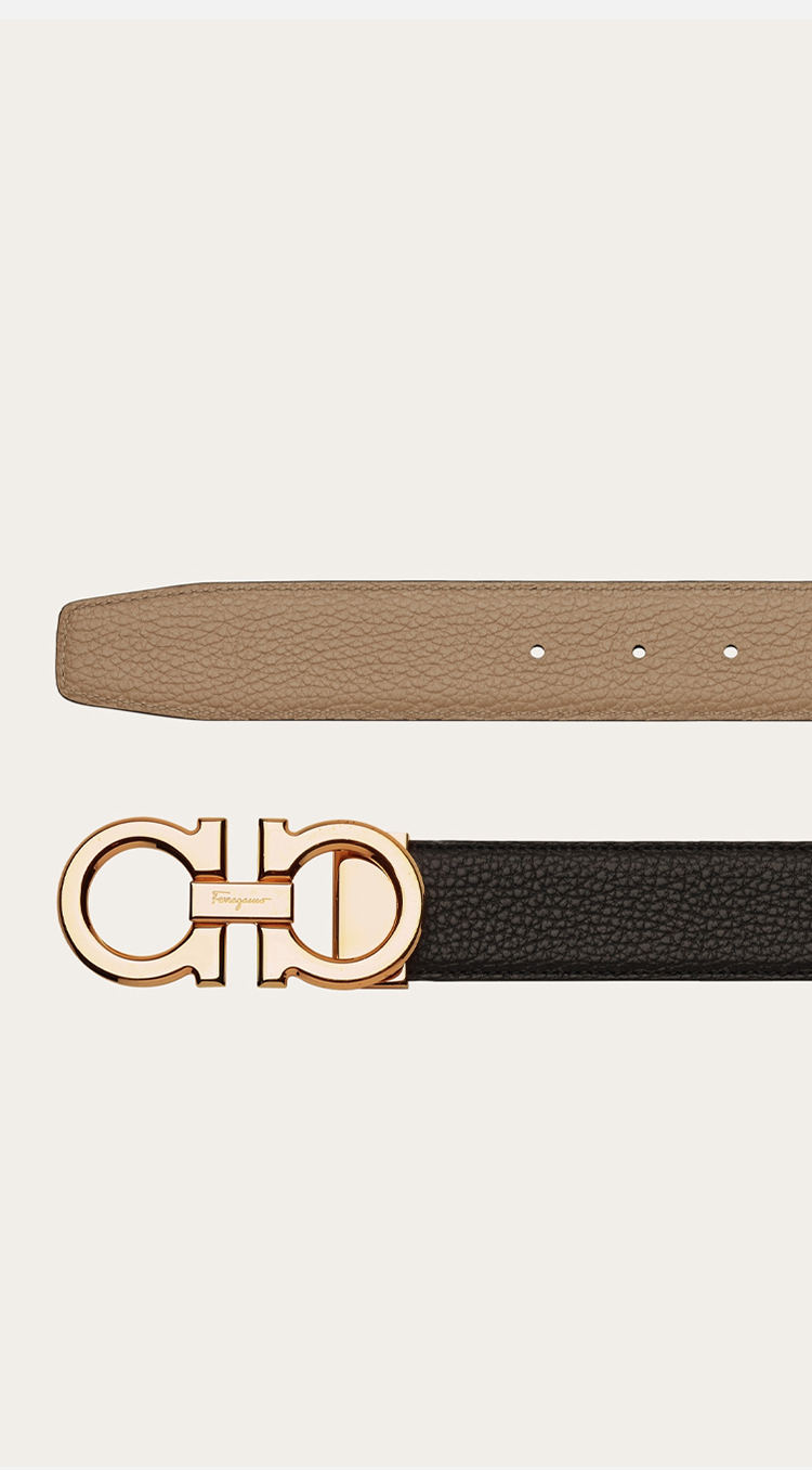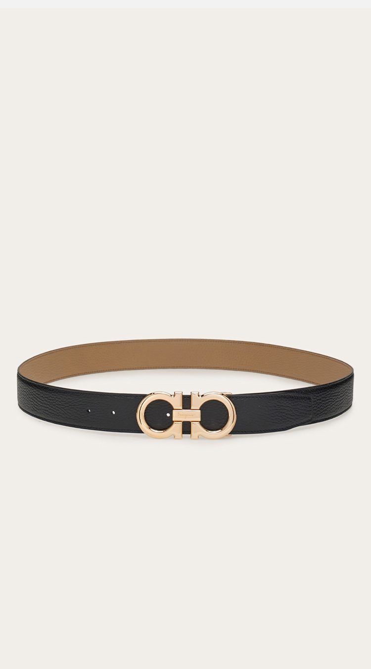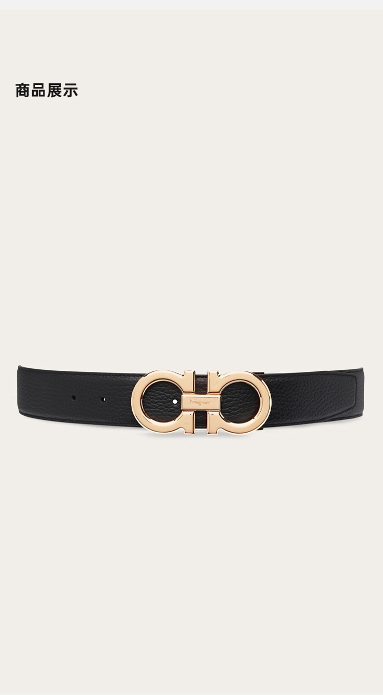 FERRAGAMO 菲拉格慕 男士双面可调式 GANCINI 皮革腰带 黑色 67 9710 764161