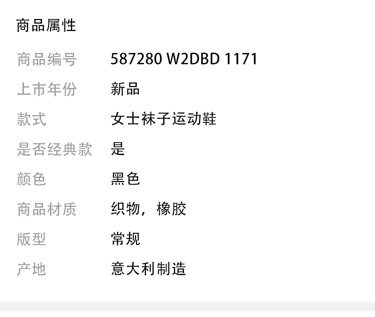 BALENCIAGA 巴黎世家 女士袜子休闲运动鞋 黑色 587280 W2DBD 1171