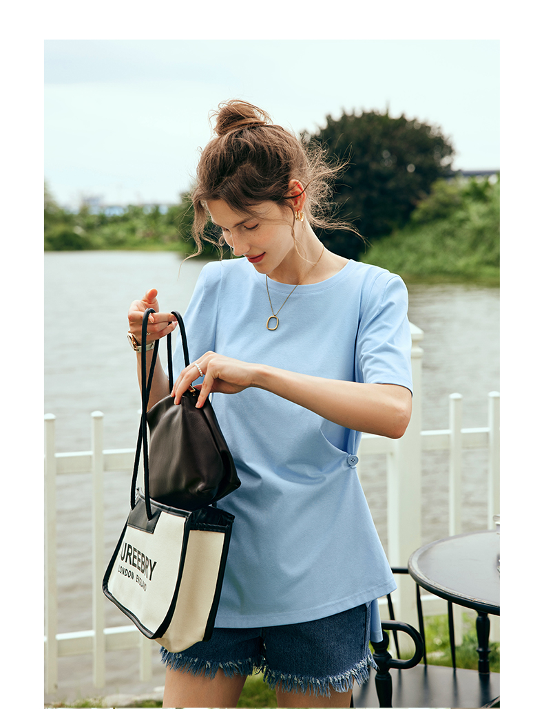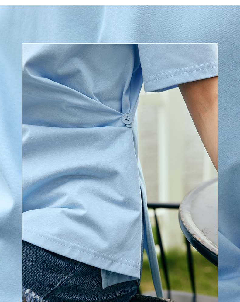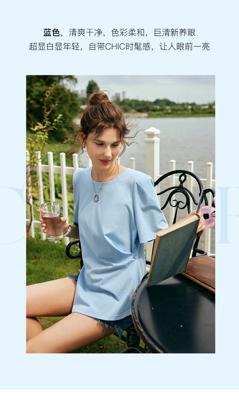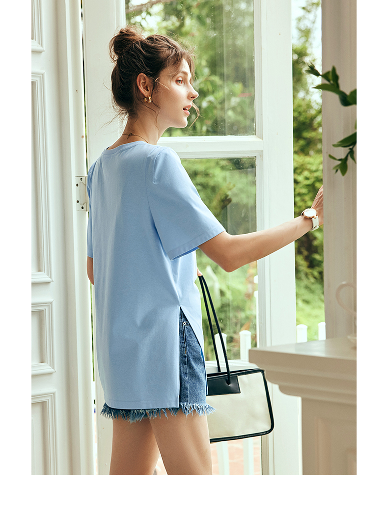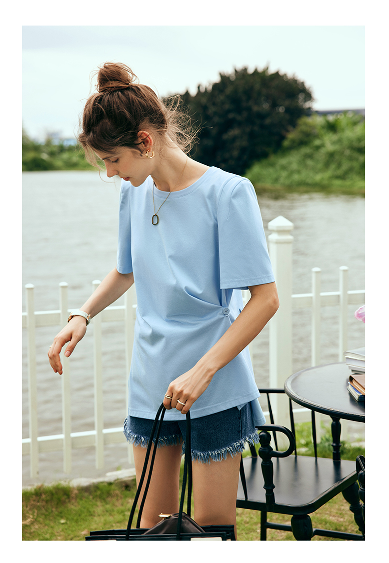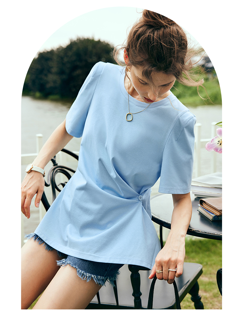 OLrain欧芮儿法式短袖T恤女夏季2023新款宽松不规则开叉休闲上衣