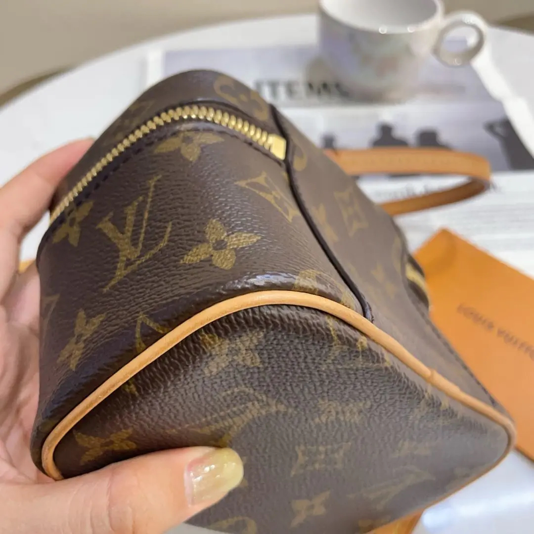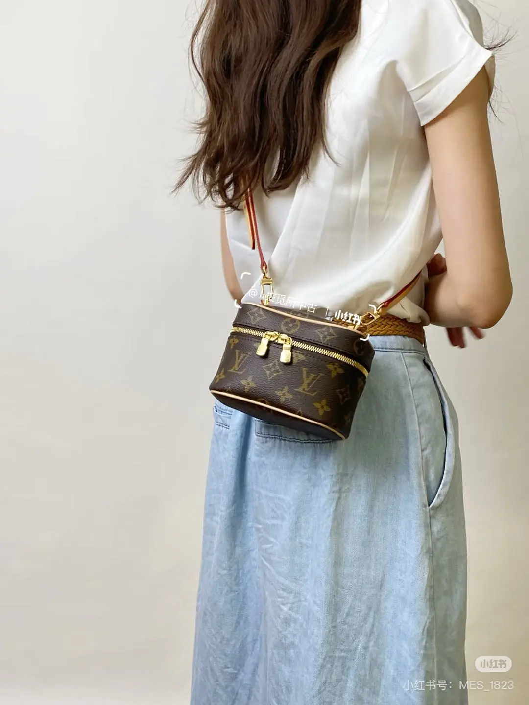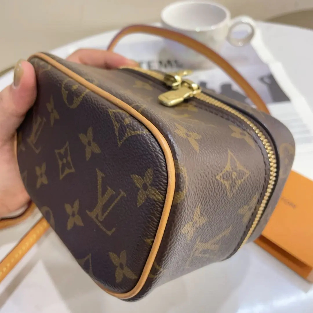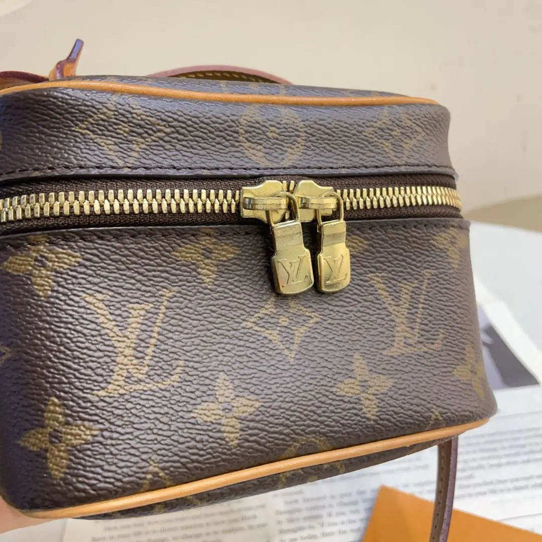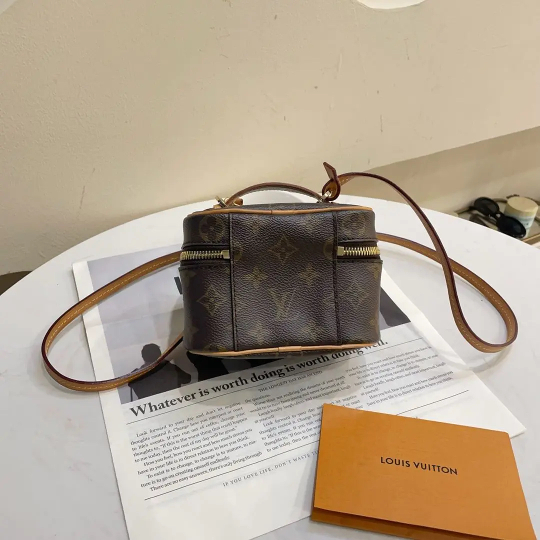 【商品详情】正品二手 LV nice 老花 nano 化妆包 😮95新 14×10 配件:票 肩带。包身轻微使用感。美丽大方