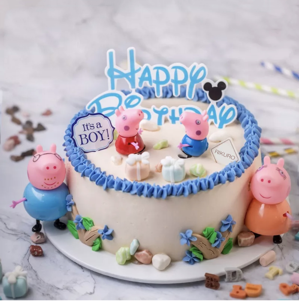 【佩奇一家】鲜果奶油蛋糕(蓝/粉)