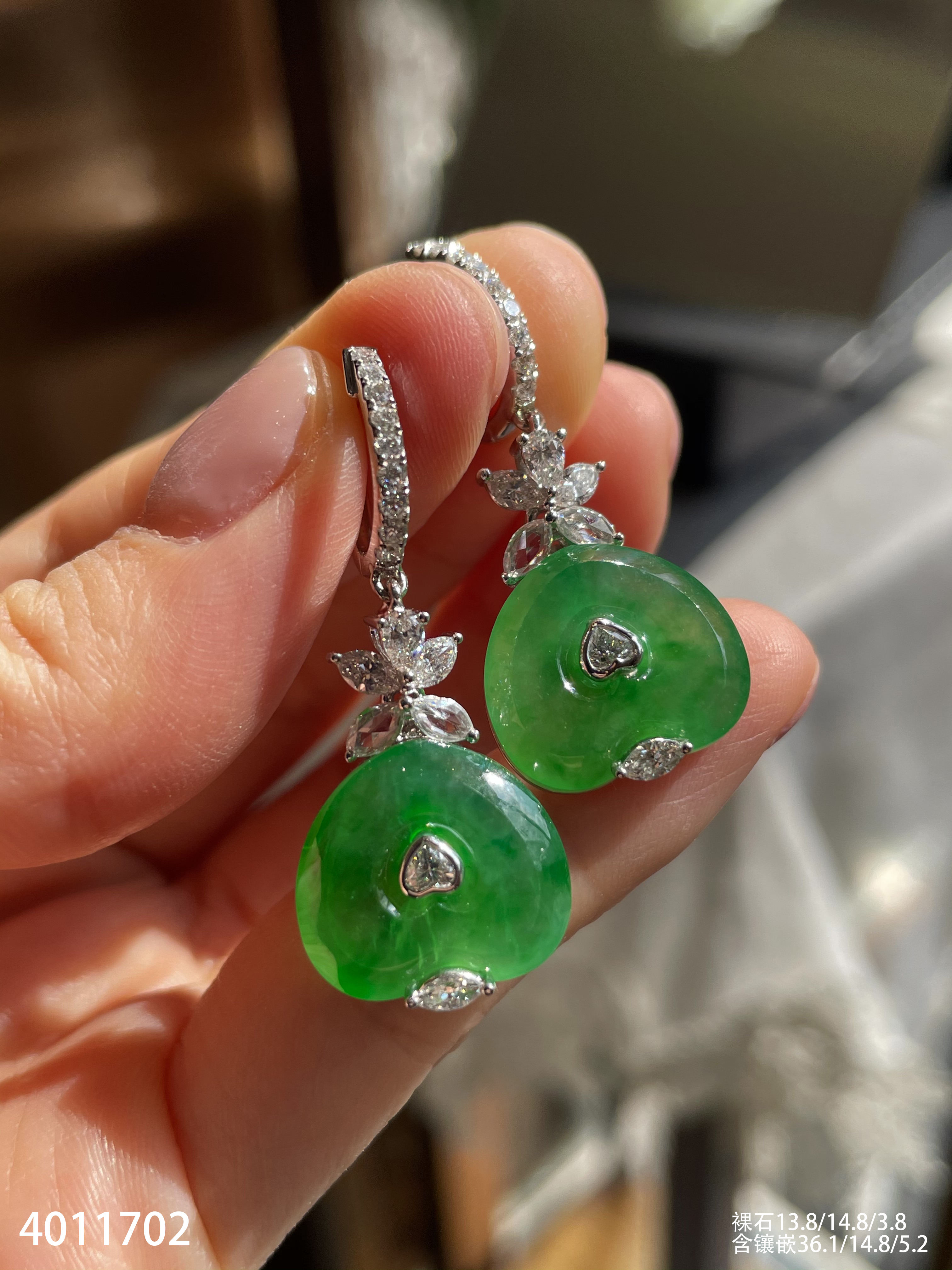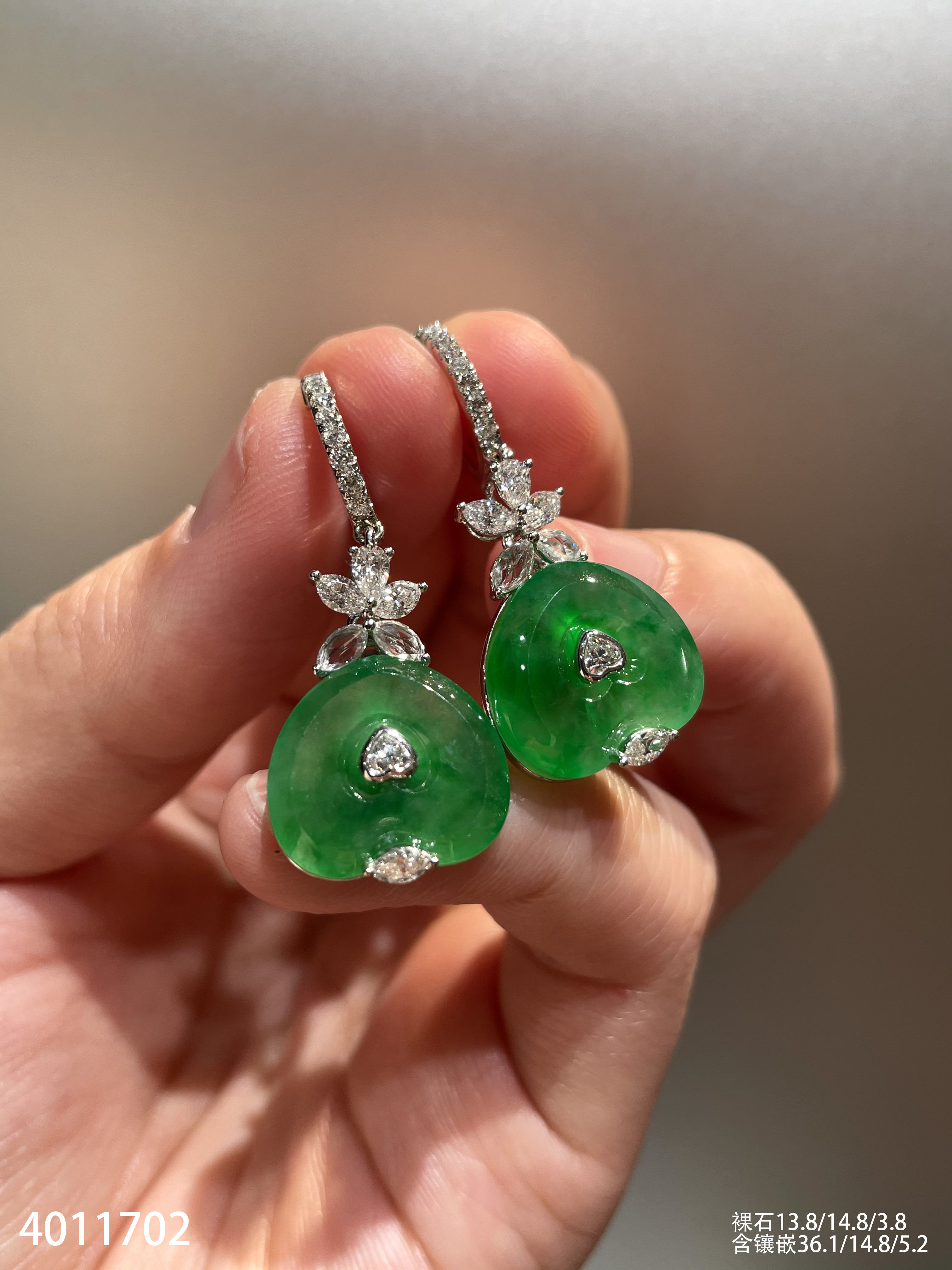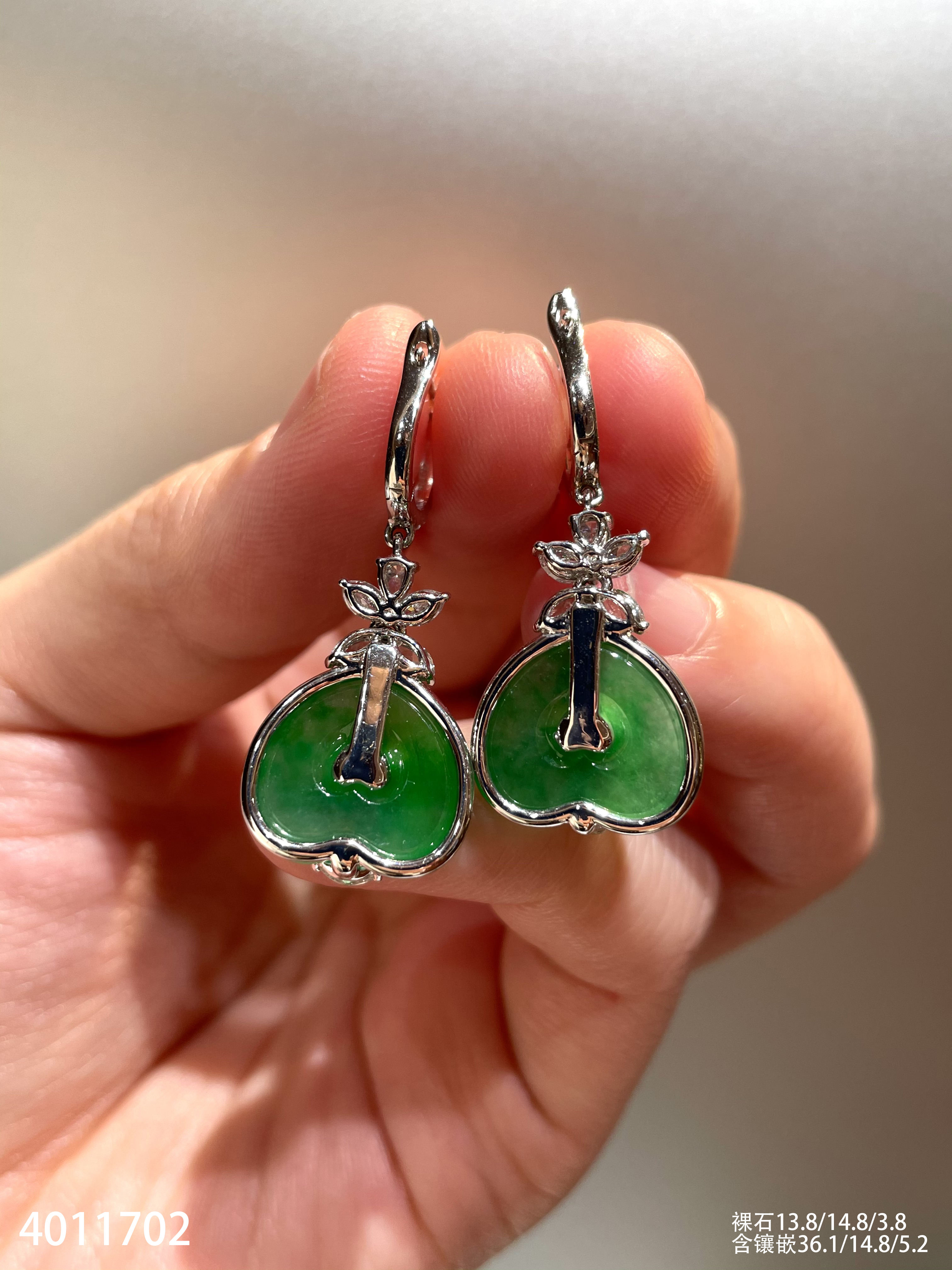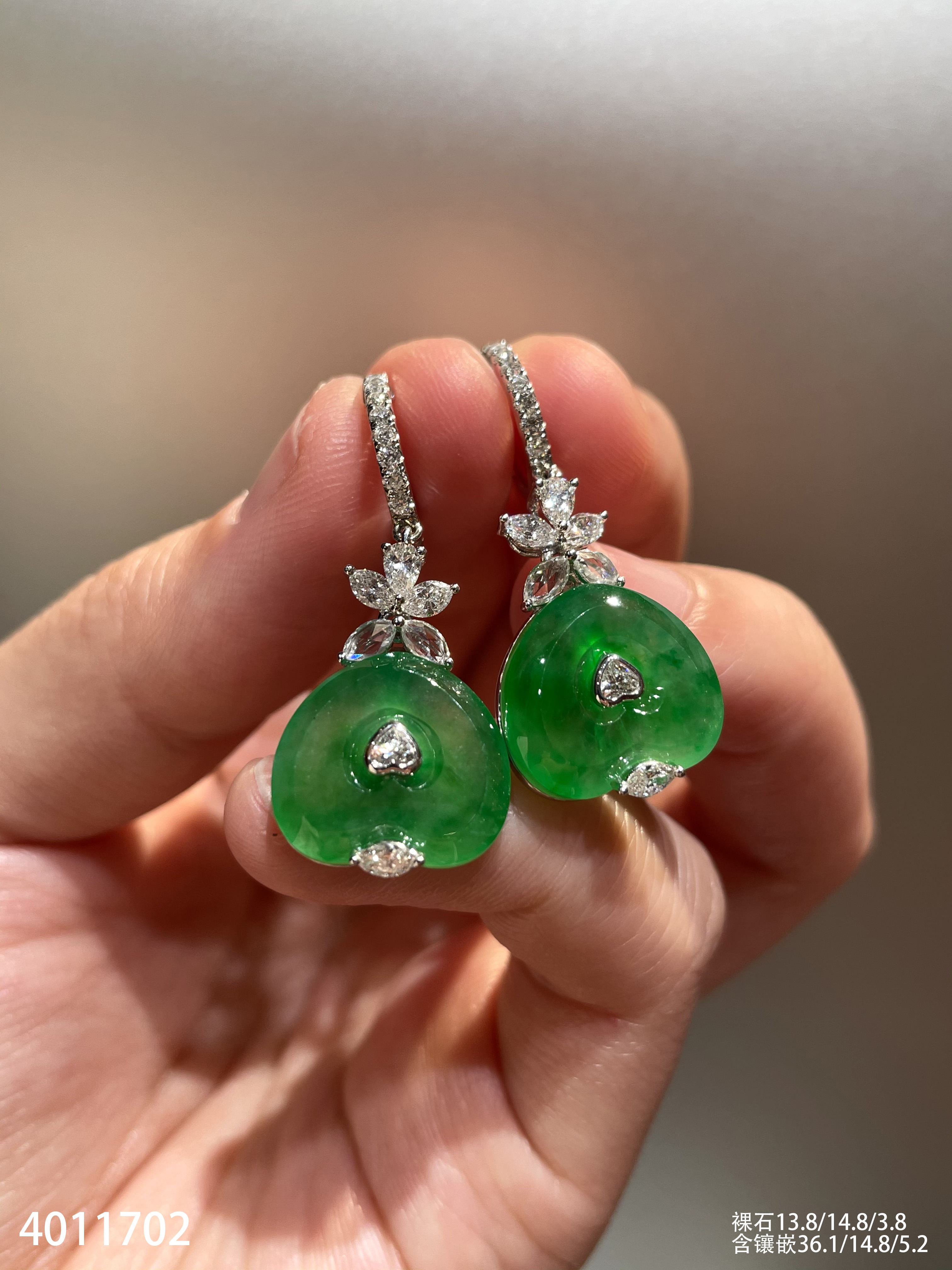 玻璃种艳绿心形耳坠【4011702】具体价格微信咨询
