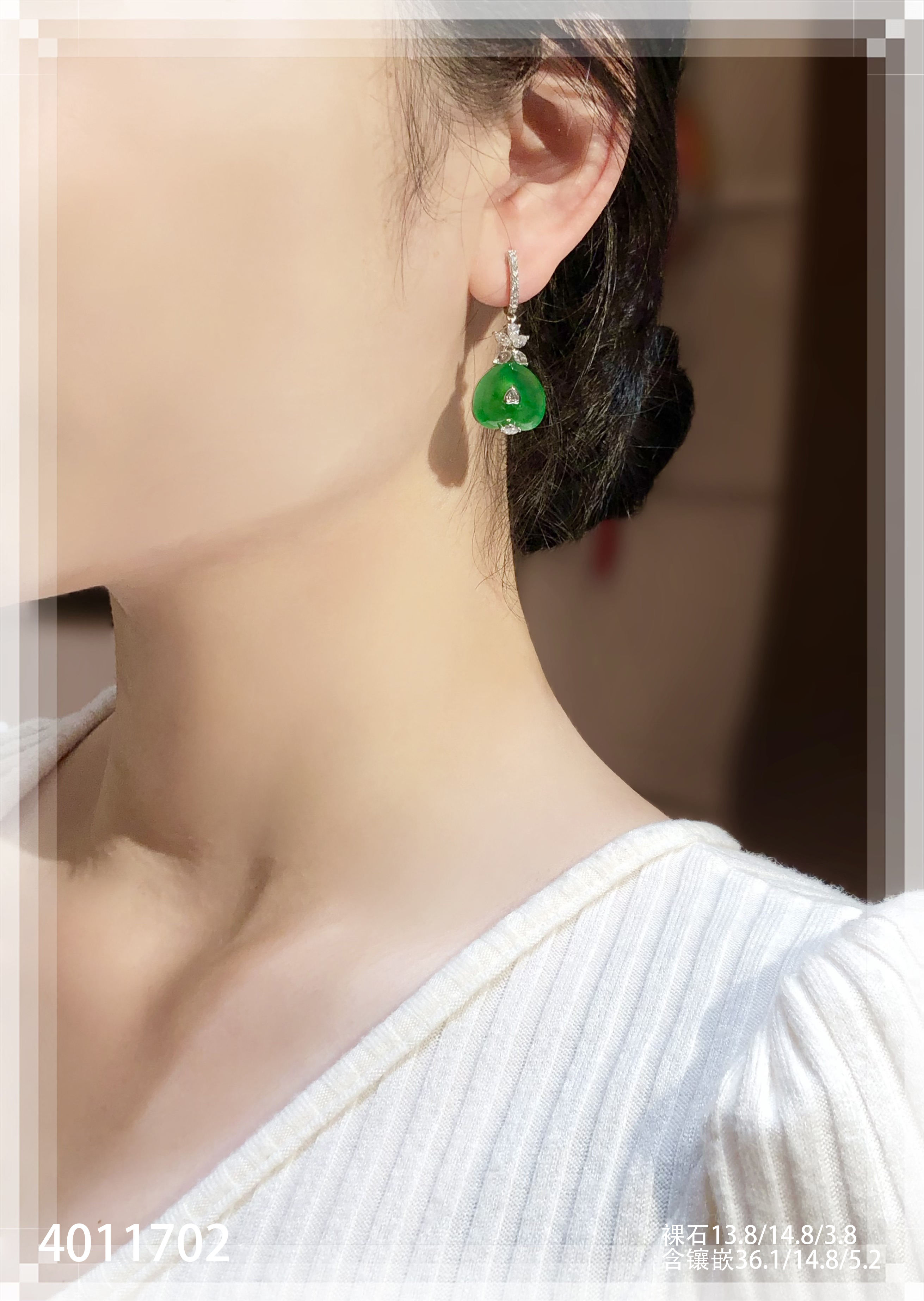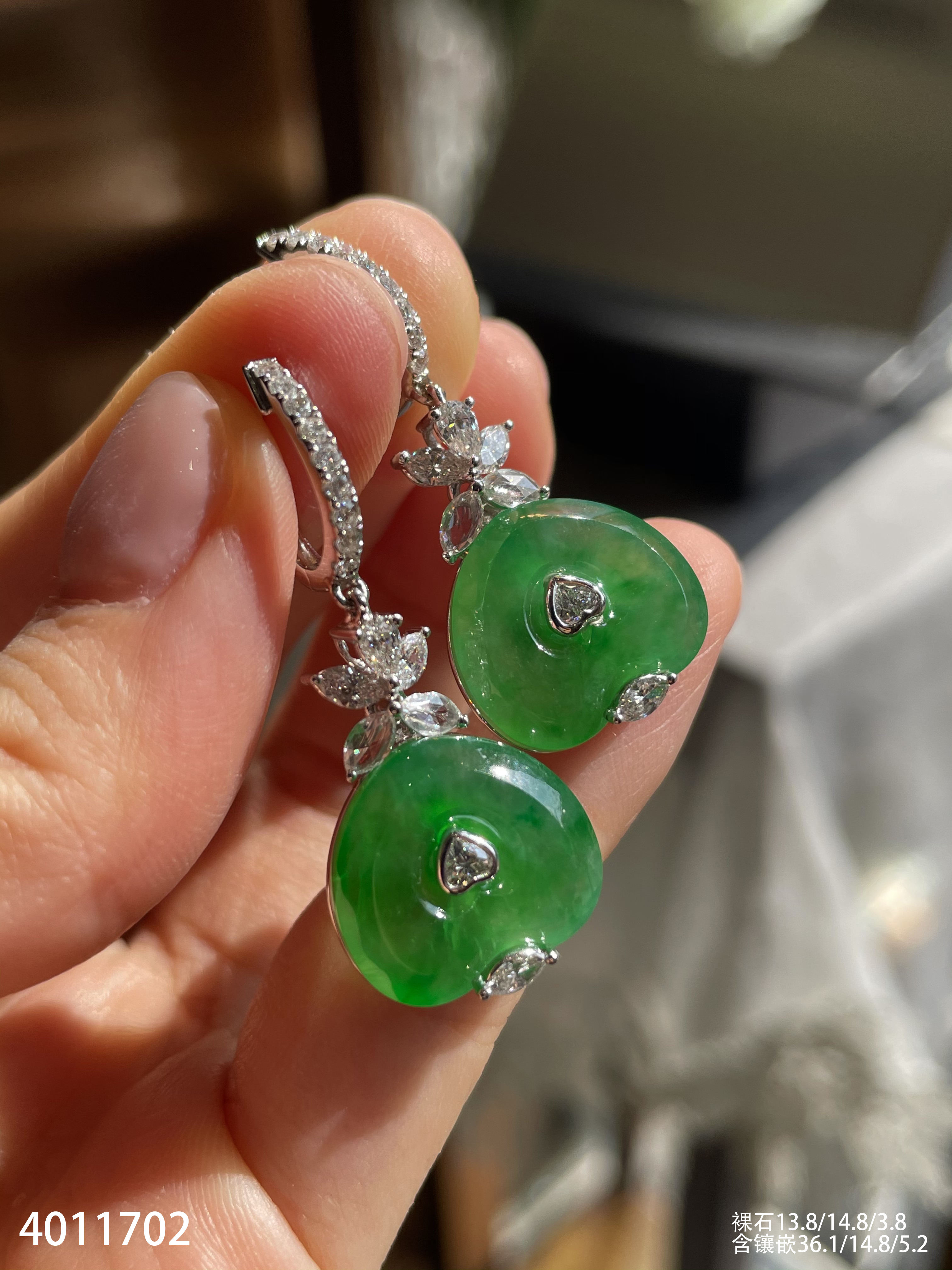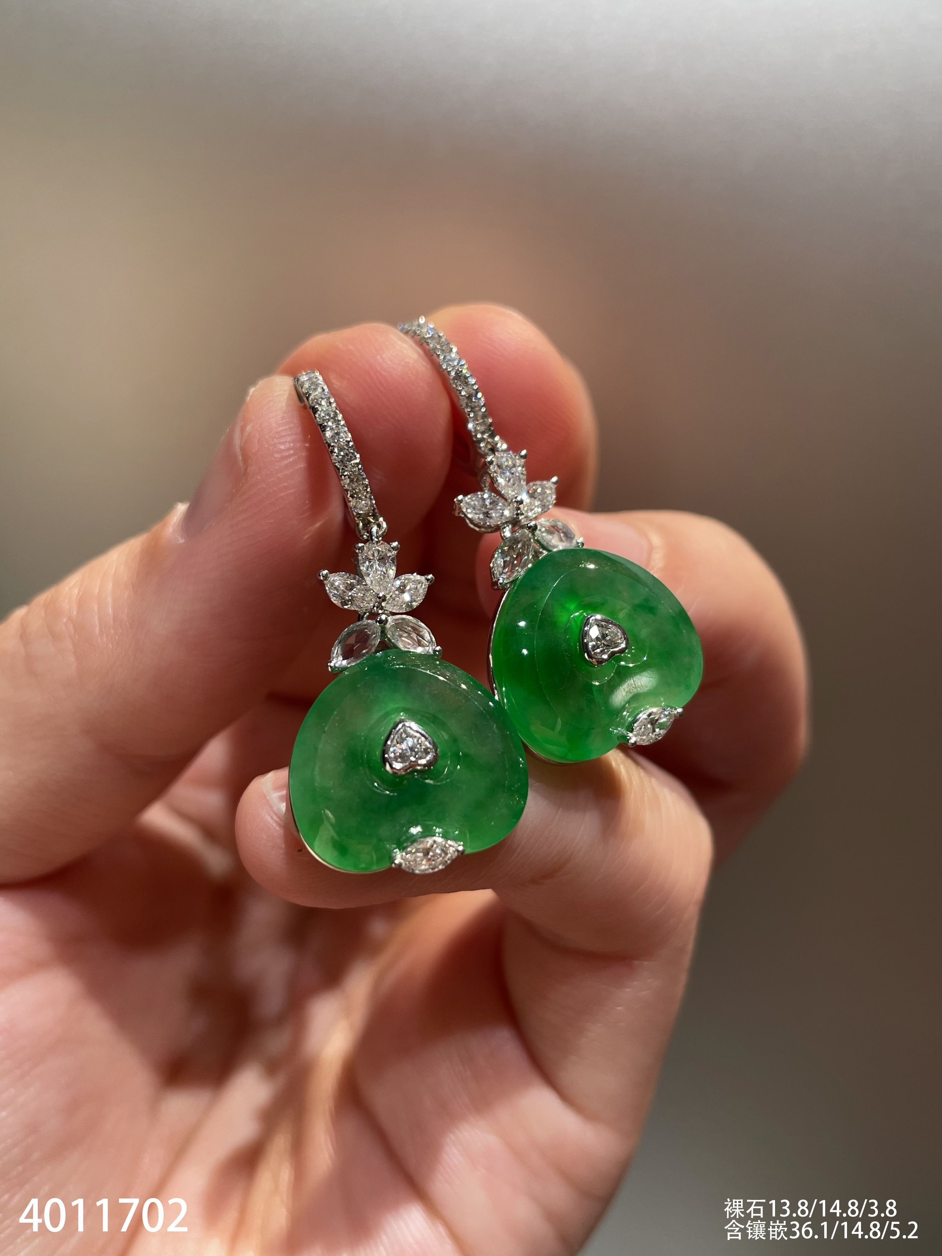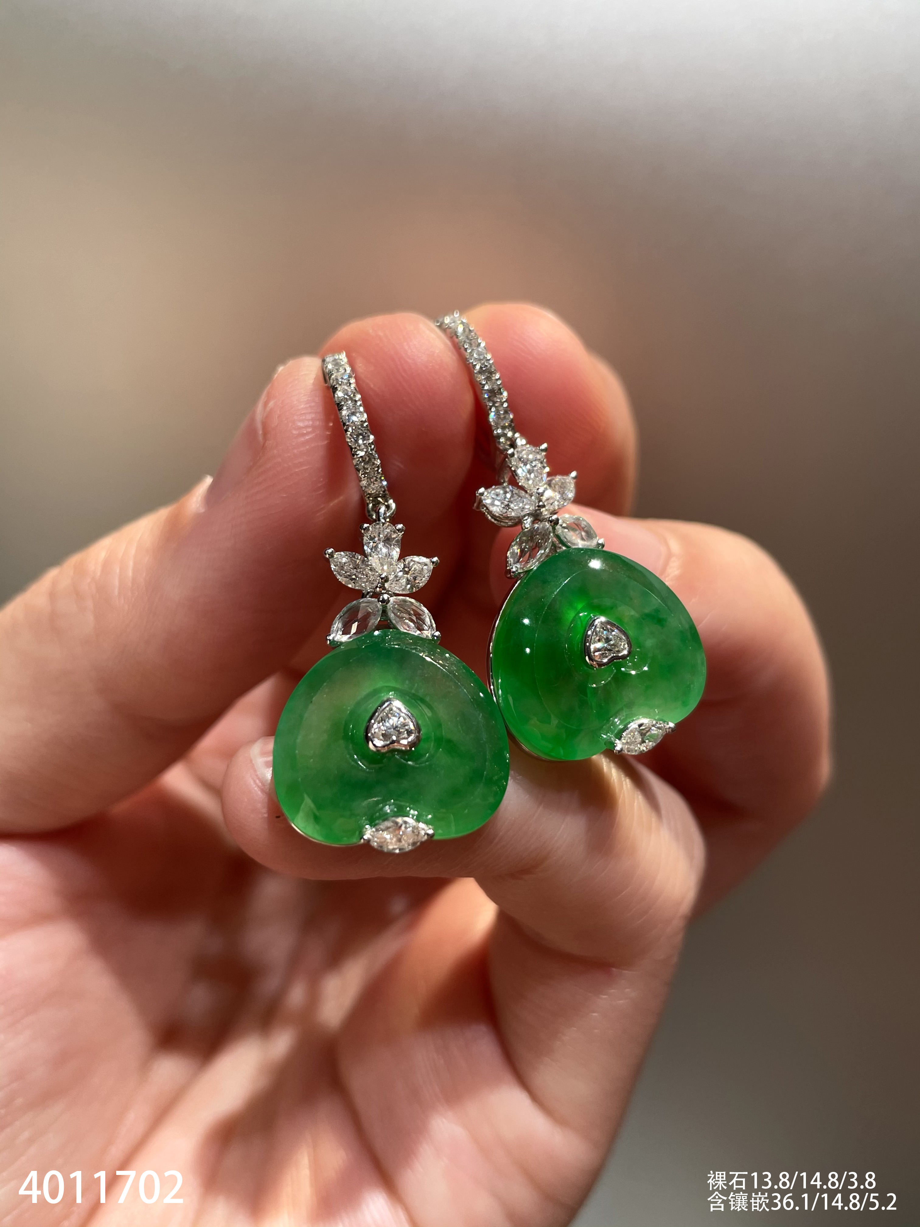 玻璃种艳绿心形耳坠【4011702】具体价格微信咨询