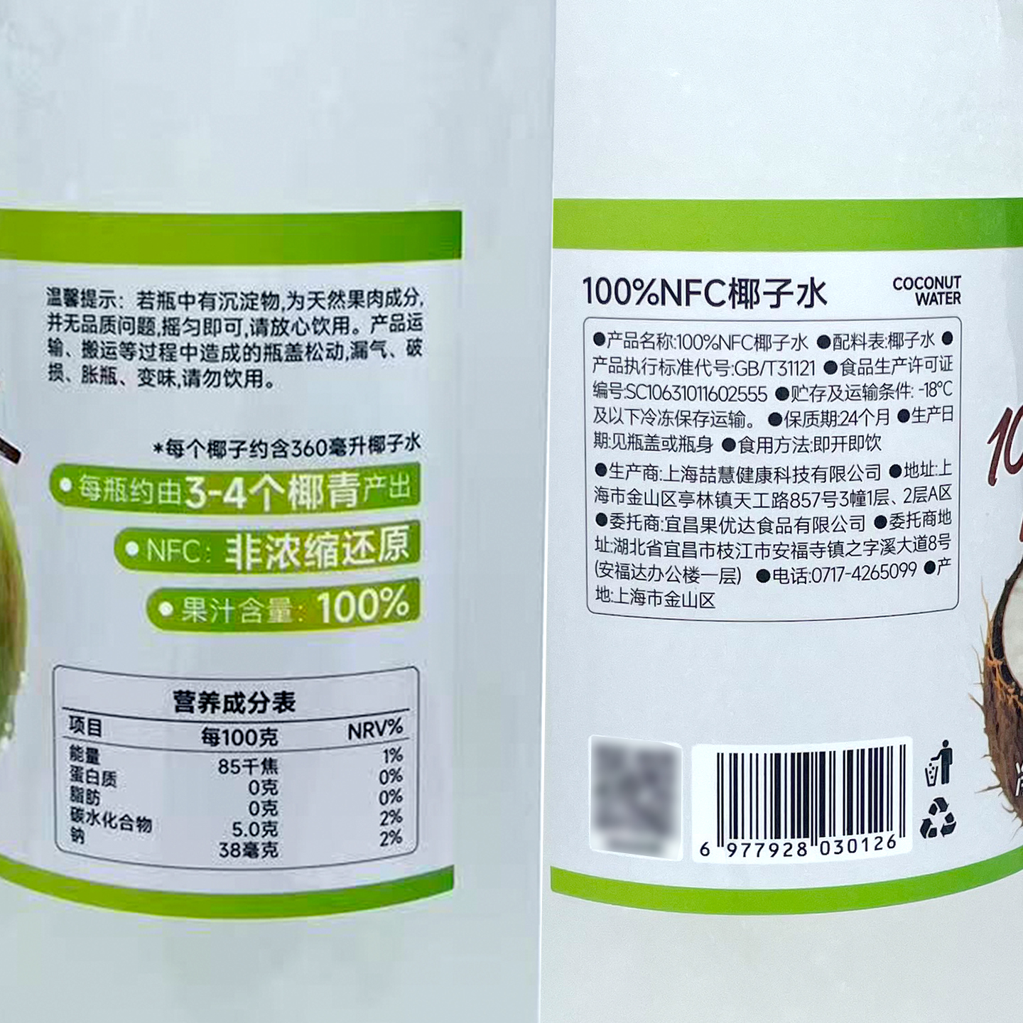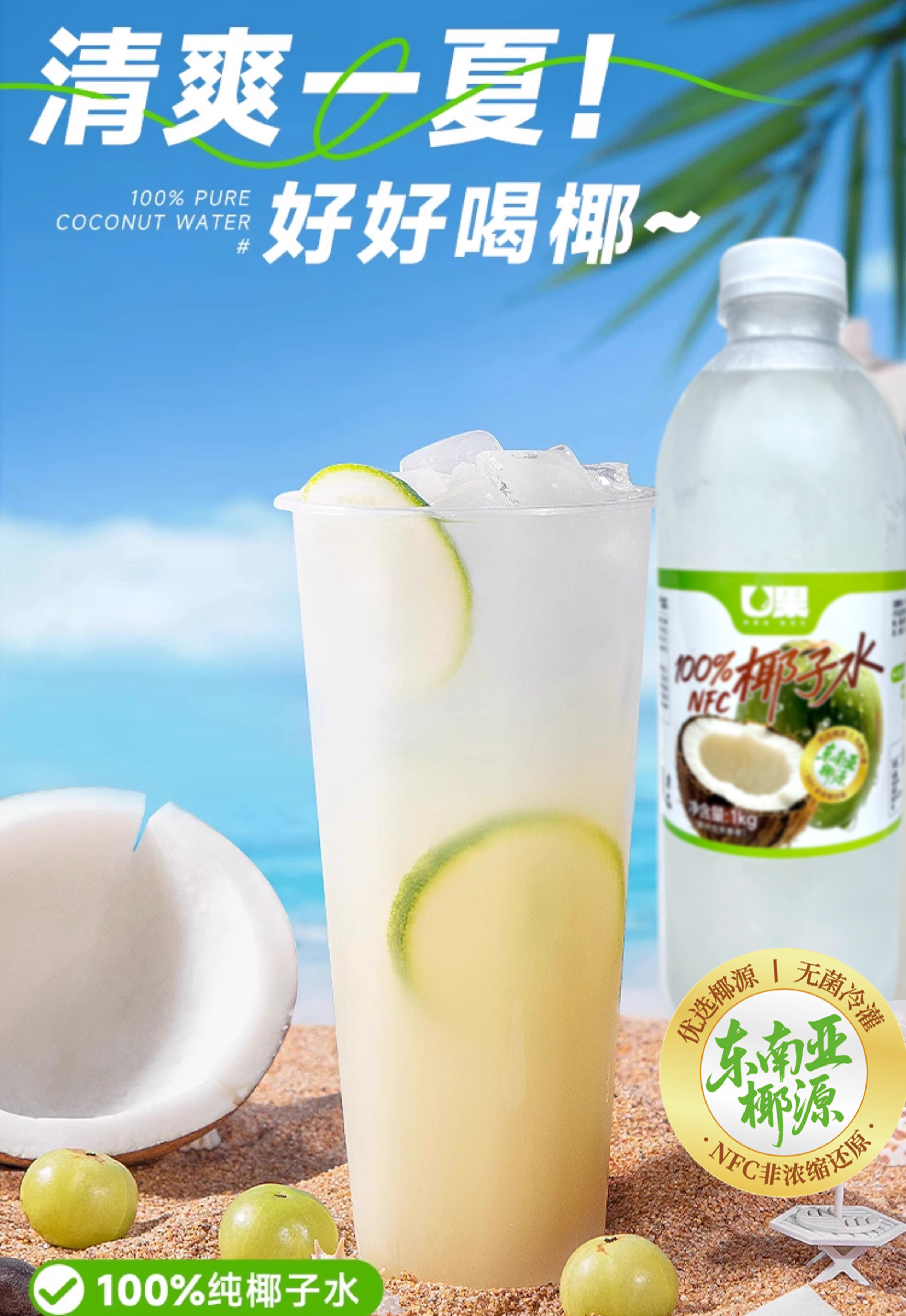 U果100%NFC椰子水1kg商用鲜榨椰子水纯椰青水冷冻鲜椰汁餐饮奶茶咖啡专用
