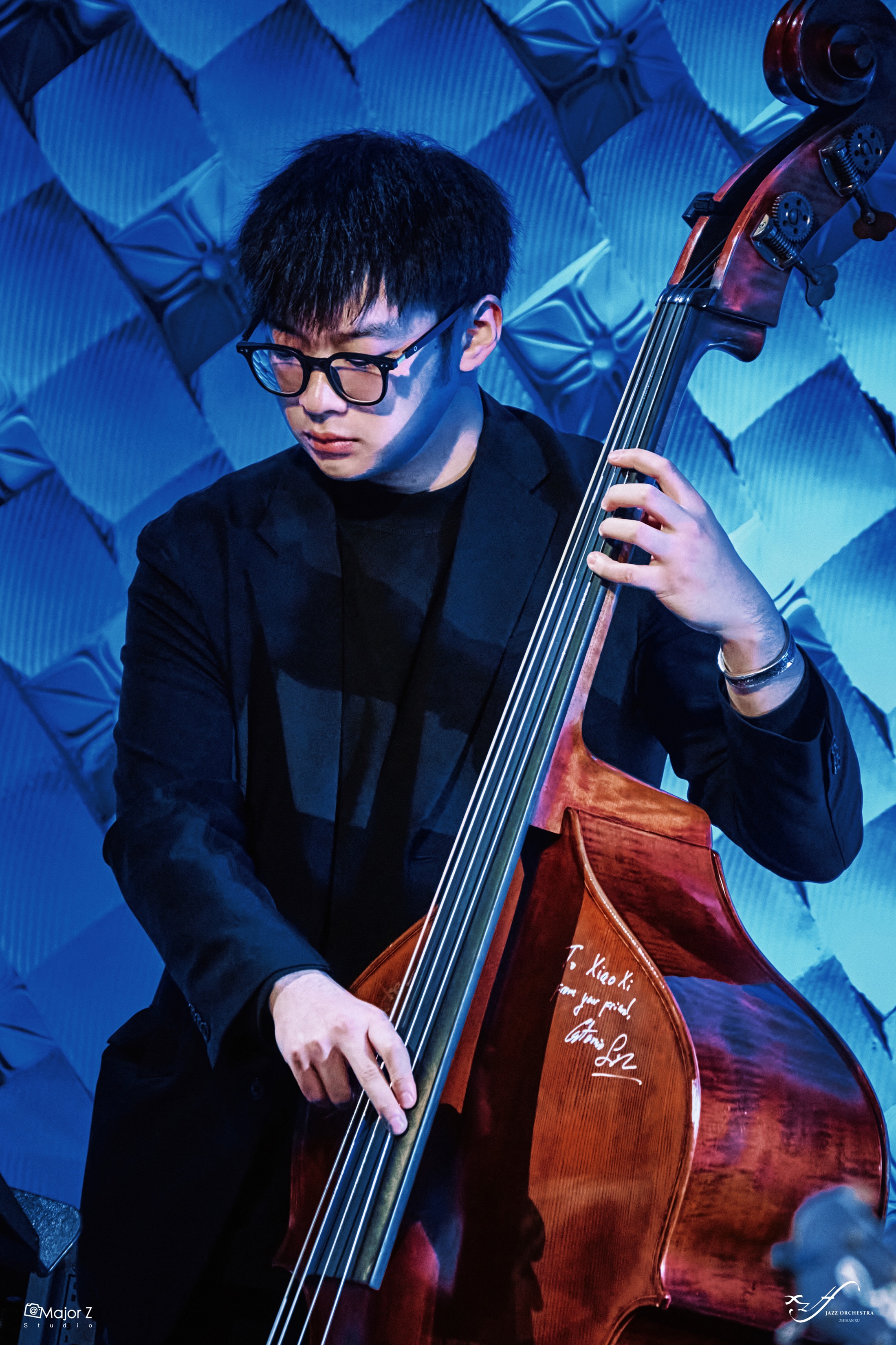 潘瑞林,JZ School 青年教师,上海林肯大乐队贝斯手,2023 爵士高手乐坛争霸乐队组冠军。毕业于南京艺术学院流行音乐学院本科。于 2014 年考入南艺附中学习古典专业。2017 年以省内贝斯第一的成绩考入南艺流行音乐学院,师从闵艺老师,开始学习爵士木贝斯,在校期间担任爵士大乐队贝斯手。2022.1月 -2023.5 月期间曾在杭州黄楼爵士俱乐部任职House Band 贝斯。曾参加上海爵士春天、阿那亚爵士音乐节、上海爵士音乐节、南京玄武区政府惠民演出、上海爵士与诗歌。并多次参加南昌大剧院,德州大剧院,上海音乐厅,上海凯迪拉克音乐厅,上海东方艺术中心等剧院活动。2023 参与四川音乐学院爵士人声教师王沐语新歌录制,2024 参与音乐人喜辰晨新专辑《Queen and Elf》录制。目前活跃在上海 Jz Club、林肯中心、Blue note,杭州黄楼爵士俱乐部和全国各地的爵士俱乐部。合作过的音乐人有张钰琪、徐若娇,爵士音乐家有Ryan sands、Theo croker、赵可、李晓川、黄健怡、喜辰晨、徐之晗、徐之曈、包峻睿等等。