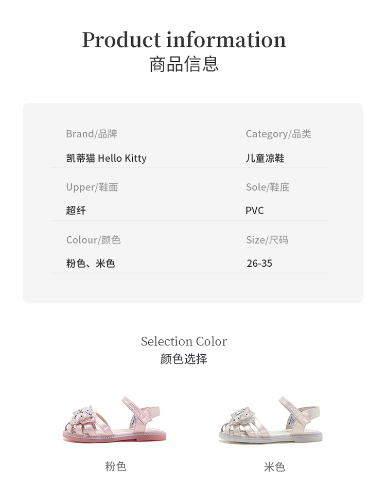 HelloKitty夏季女童软底洋气公主凉鞋女宝宝蝴蝶结包头鞋26-33 K3526882