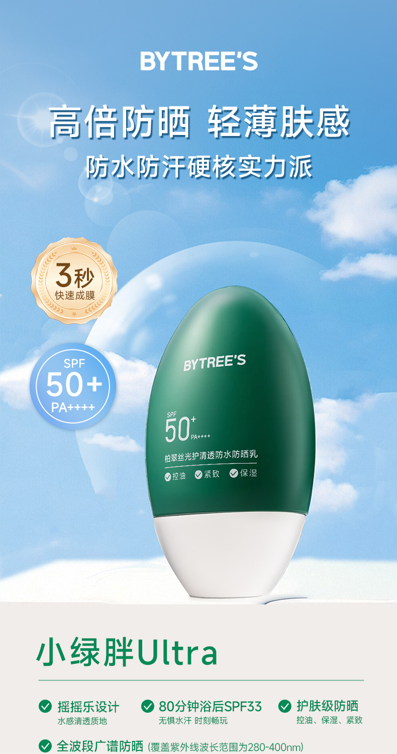 【三八节】BYTREE'S柏翠丝光护清透防水防晒乳50ml