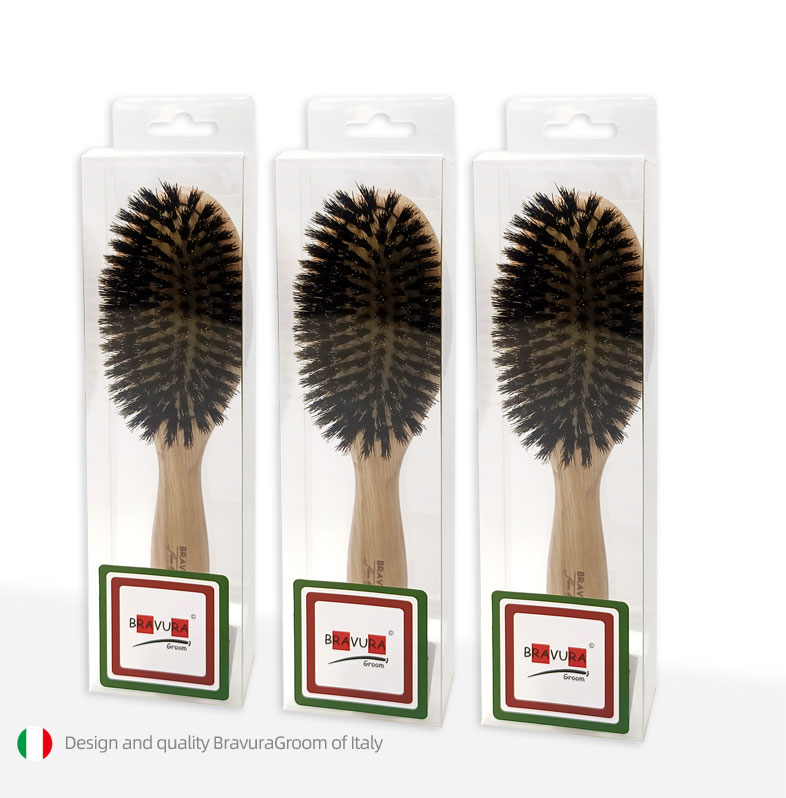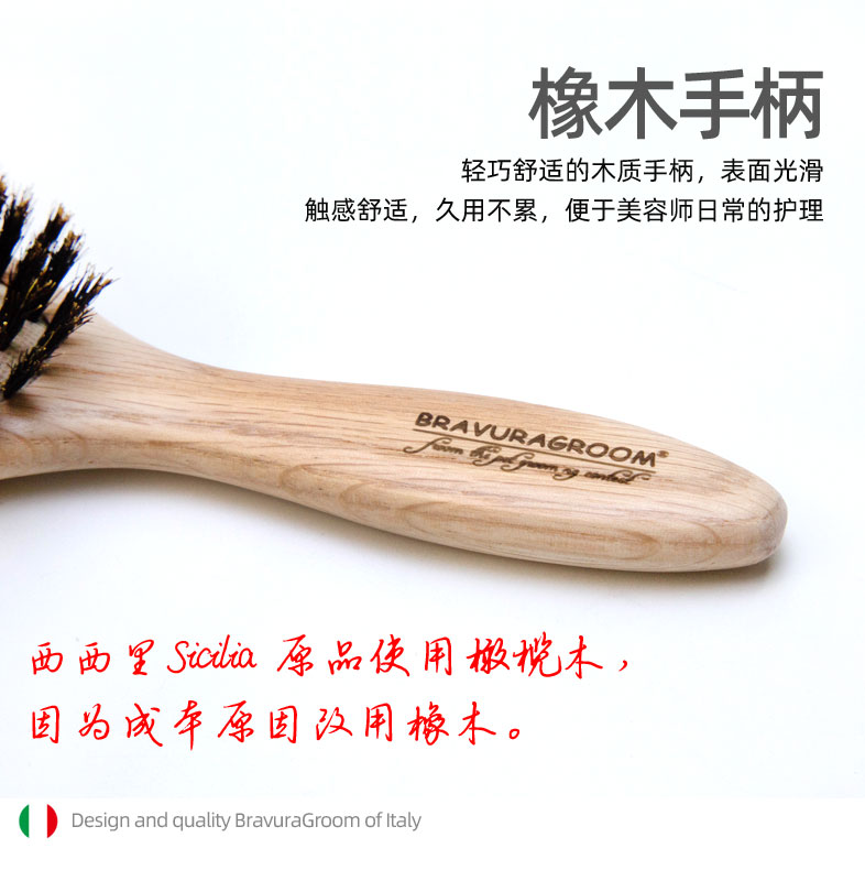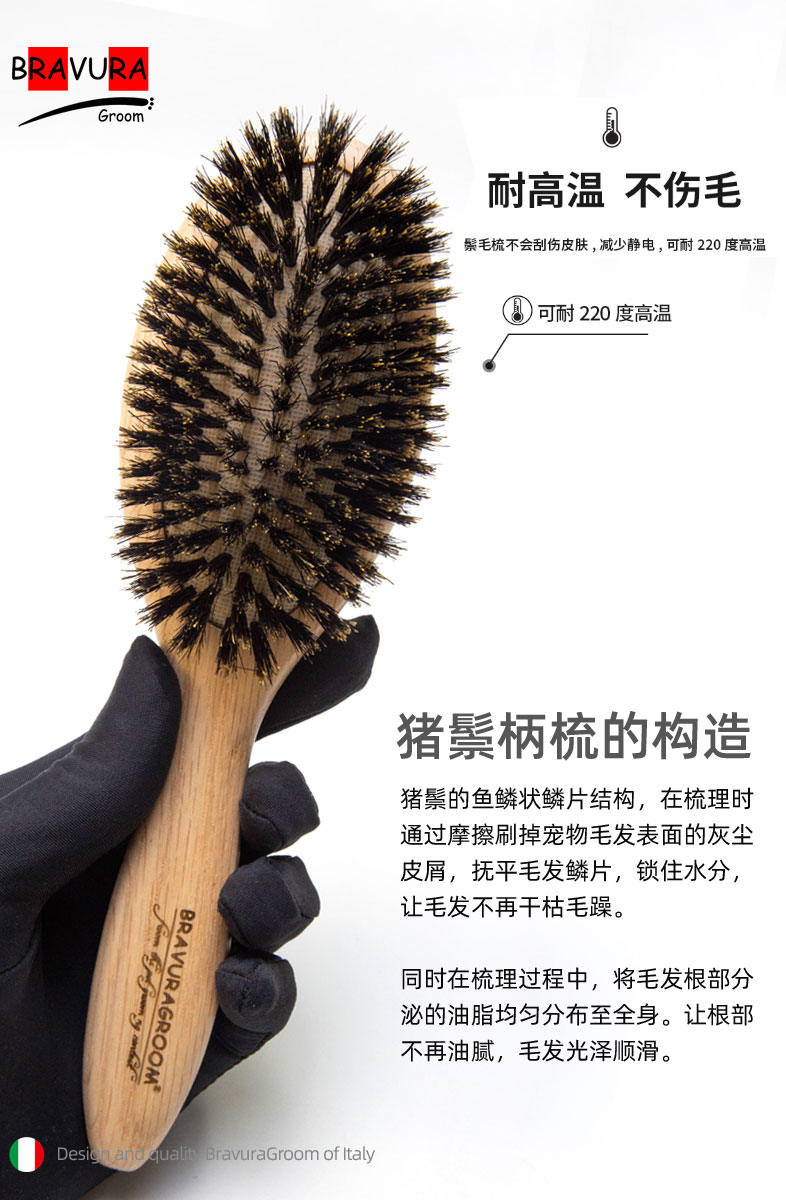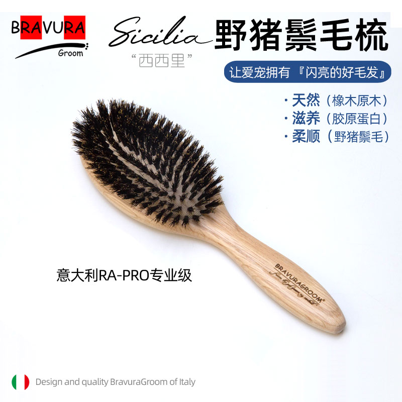 野猪鬃毛梳 RA-PRO专业级 西西里Sicilia 宠物美容橡木柄梳 意大利BravuraGroom