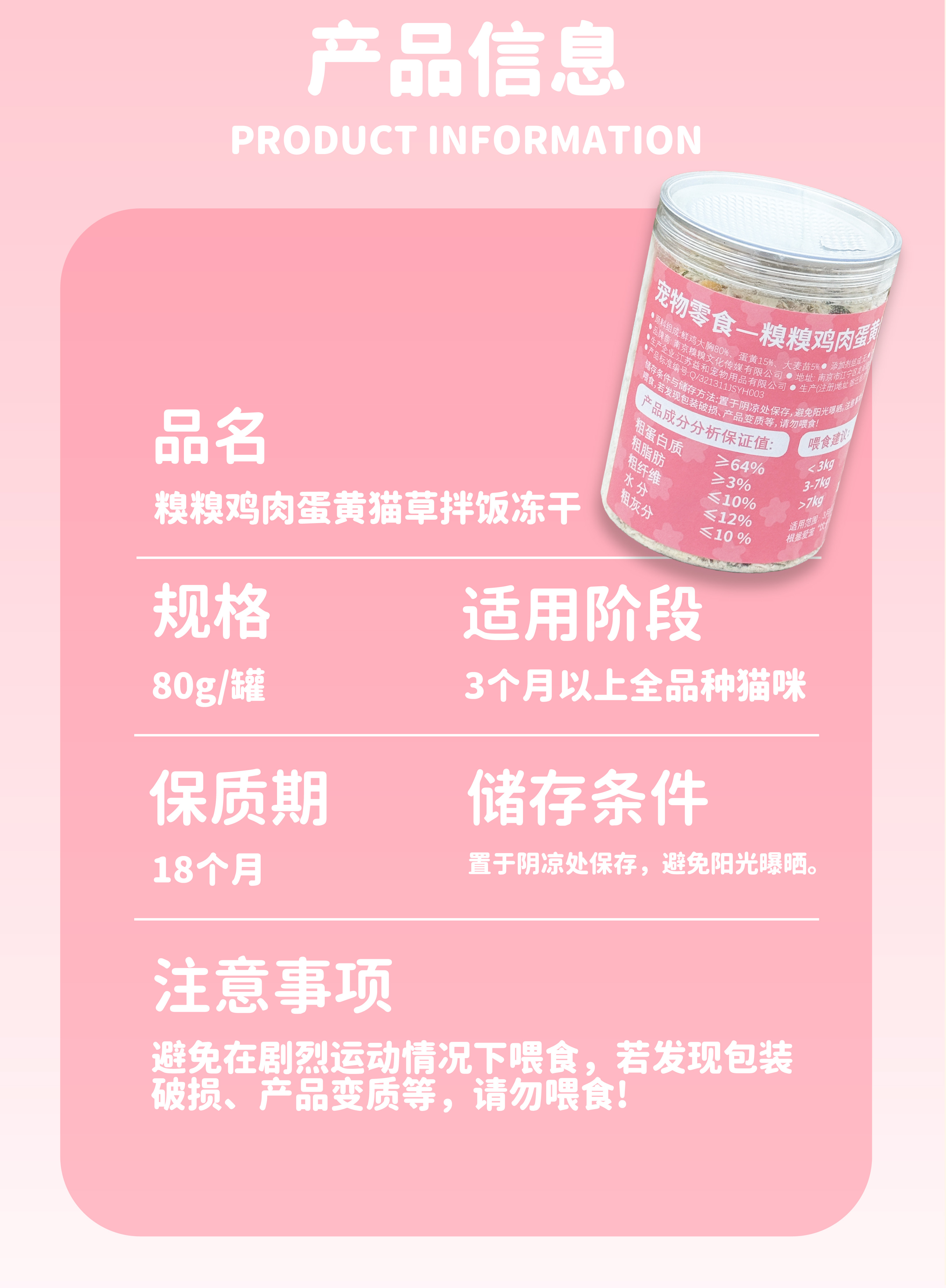 糗糗庄园鸡肉蛋黄猫草拌饭冻干80G/罐