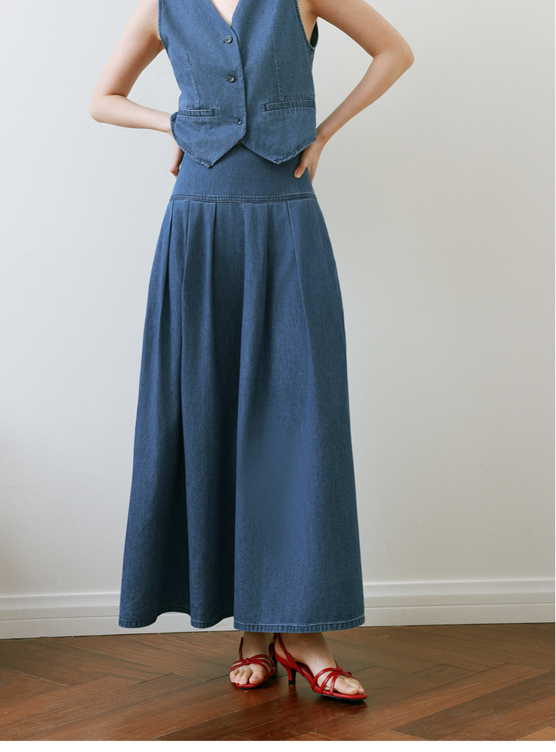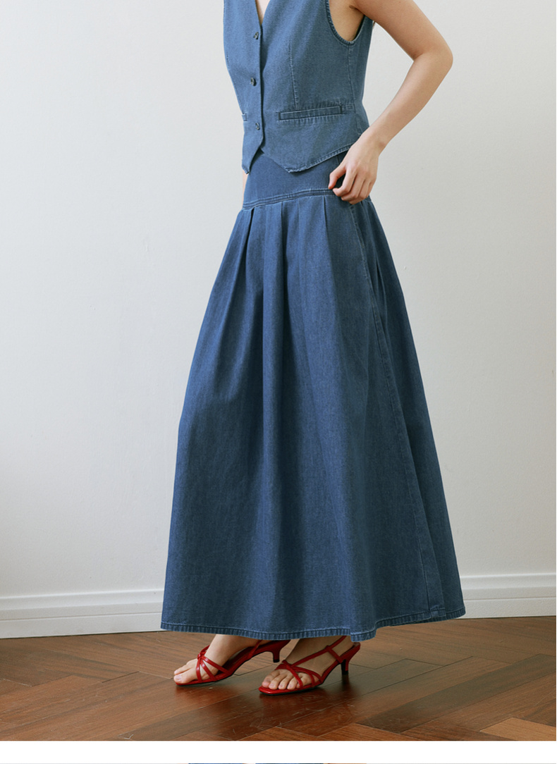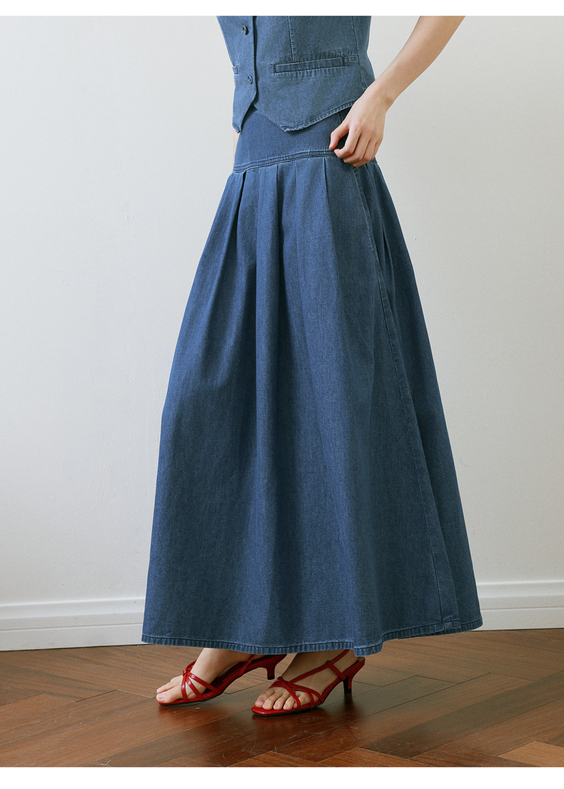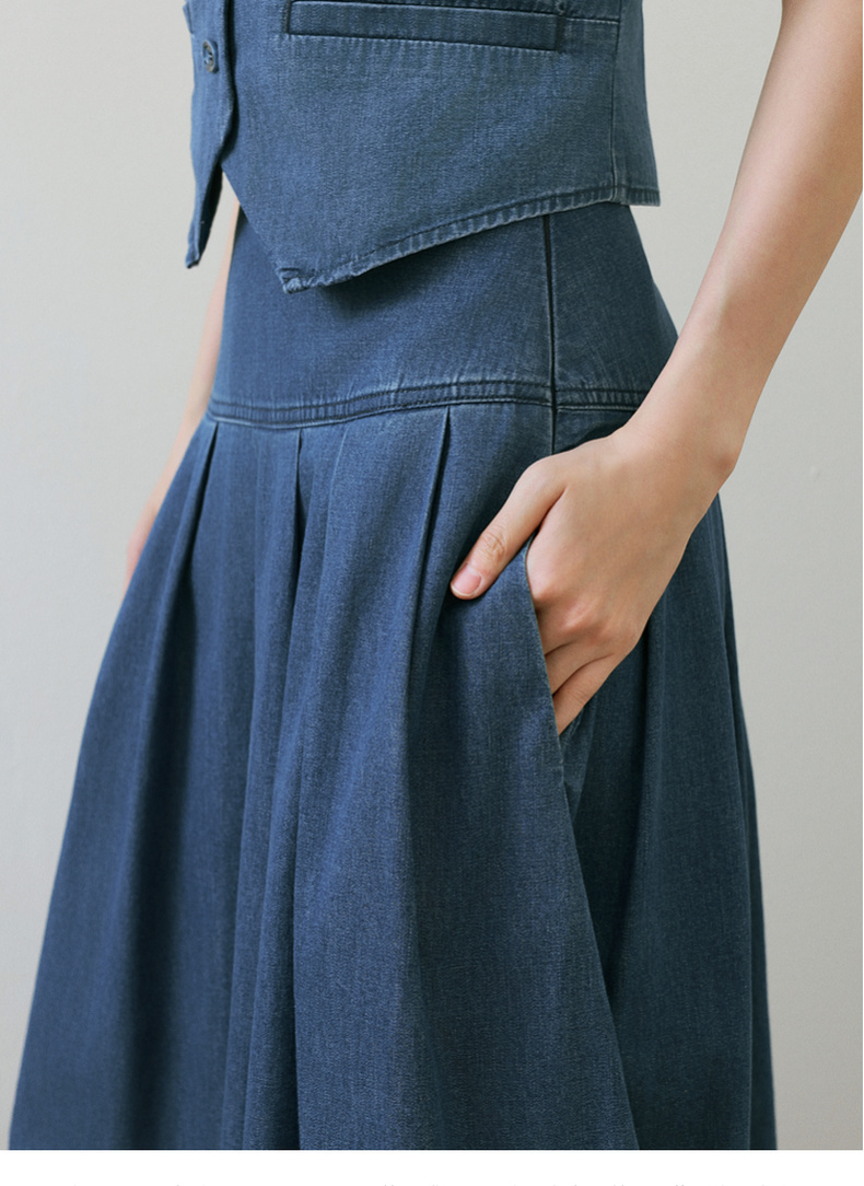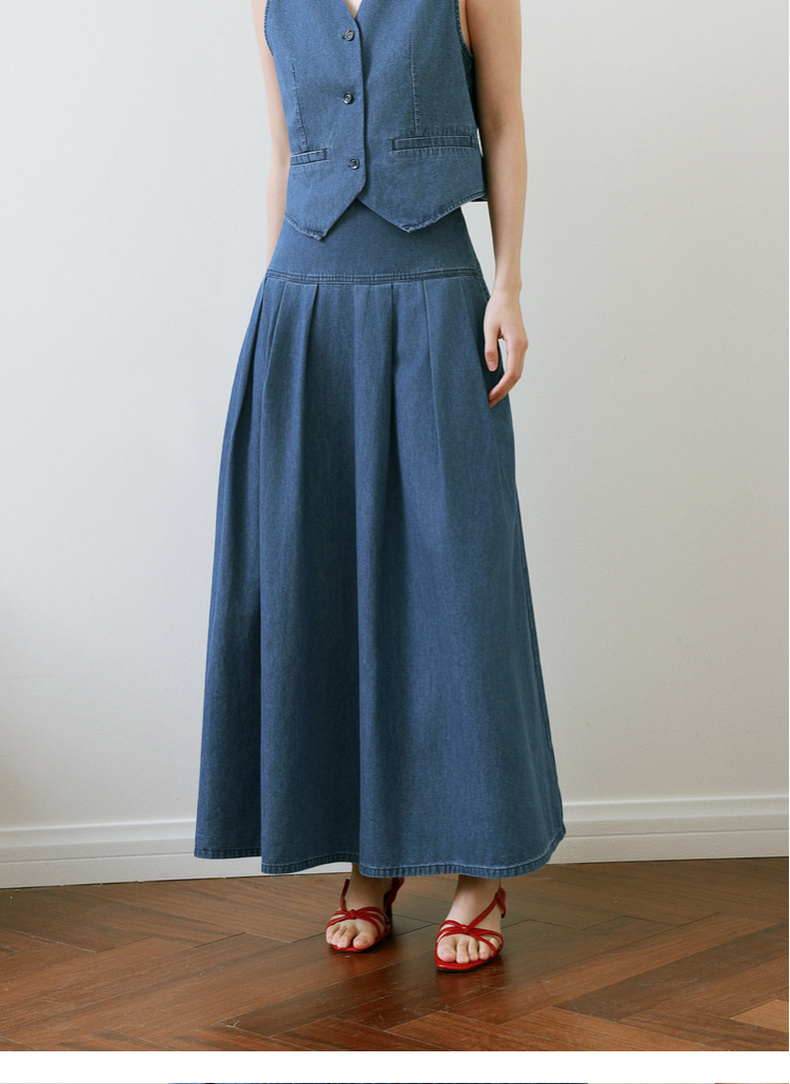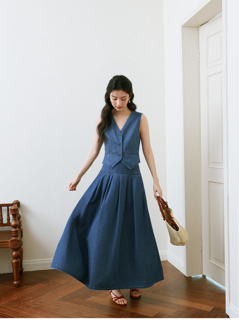 【严选】诗凡黎复古摩登牛仔半身裙2025夏新款古着色调轻量感A字中长裙7G4240291