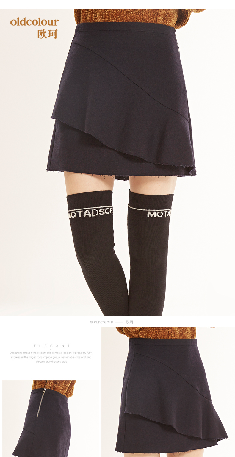oldcolour欧珂秋冬高腰半身裙女秋百搭不规则a字秋季短款