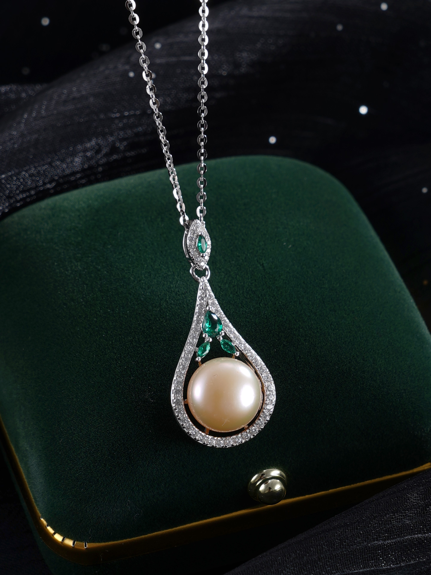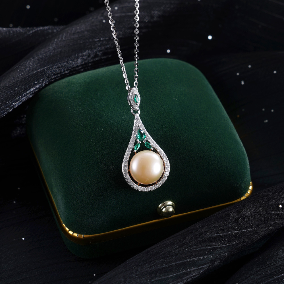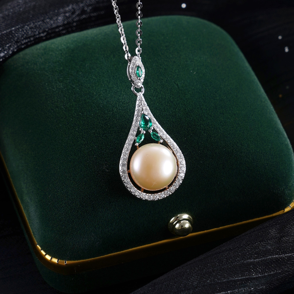 子佩集【珍爱流年】银S925珍珠惜王妃套链【PM2179-XF】10.7mm珠绿点水滴2601