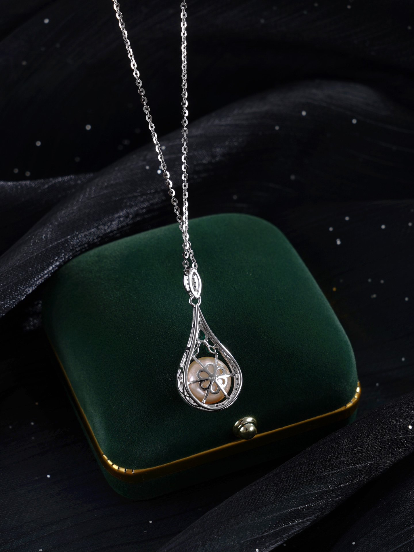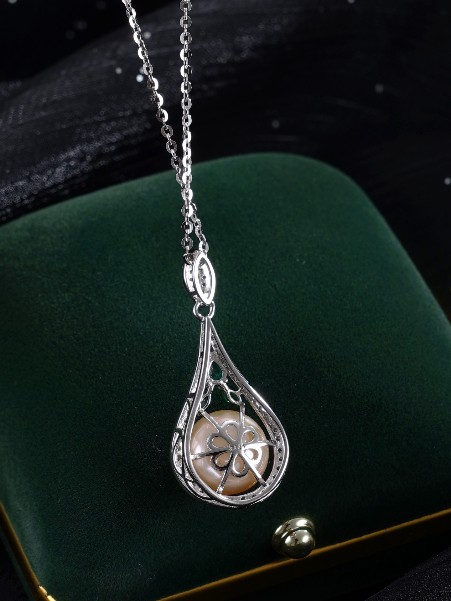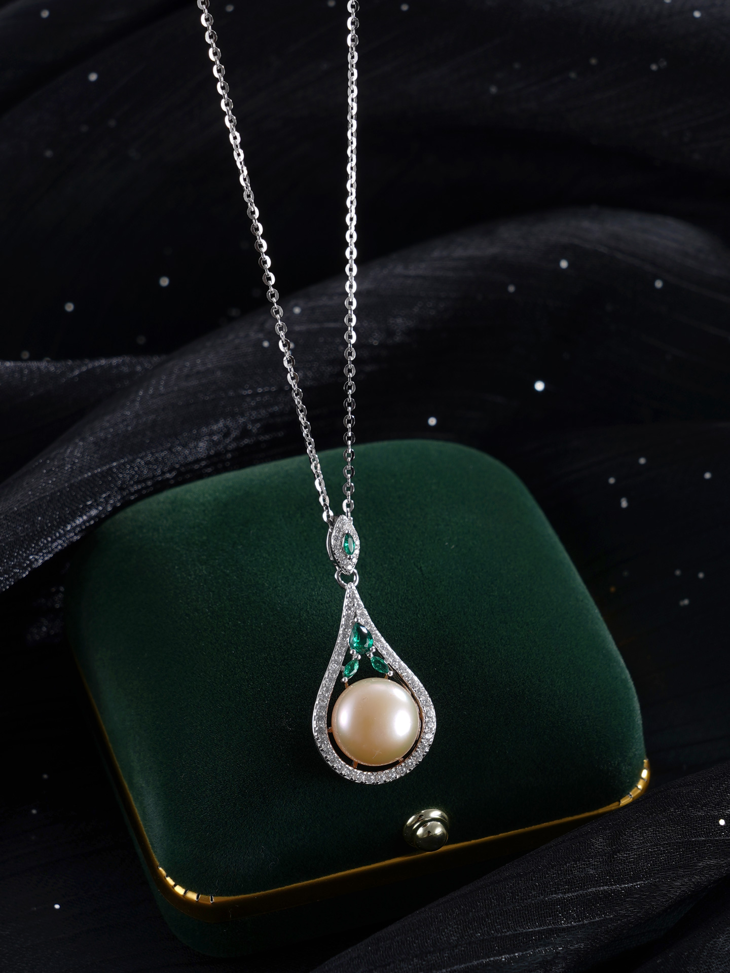 子佩集【珍爱流年】银S925珍珠惜王妃套链【PM2179-XF】10.7mm珠绿点水滴2601