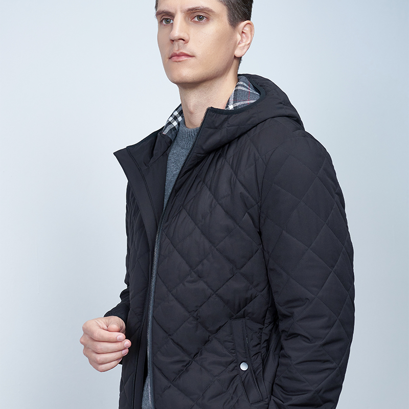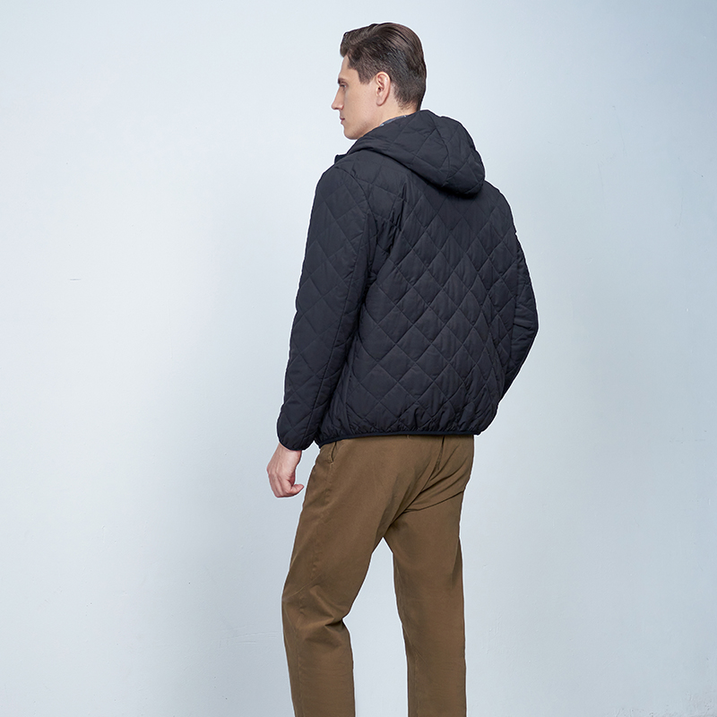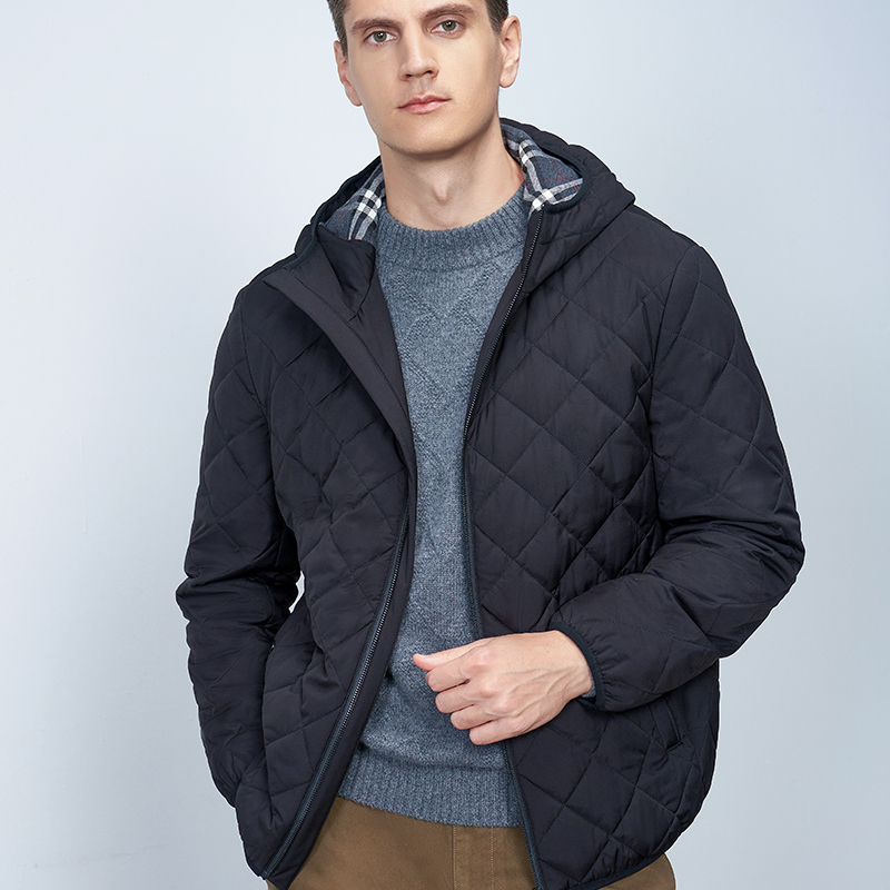【男士连帽外套】22年秋冬新品男士保暖外套时尚菱形格纹保暖棉服