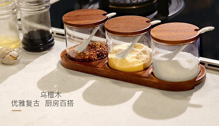 原森太3瓶调味套装/非洲乌檀木+高硼硅玻璃/YSTTW004