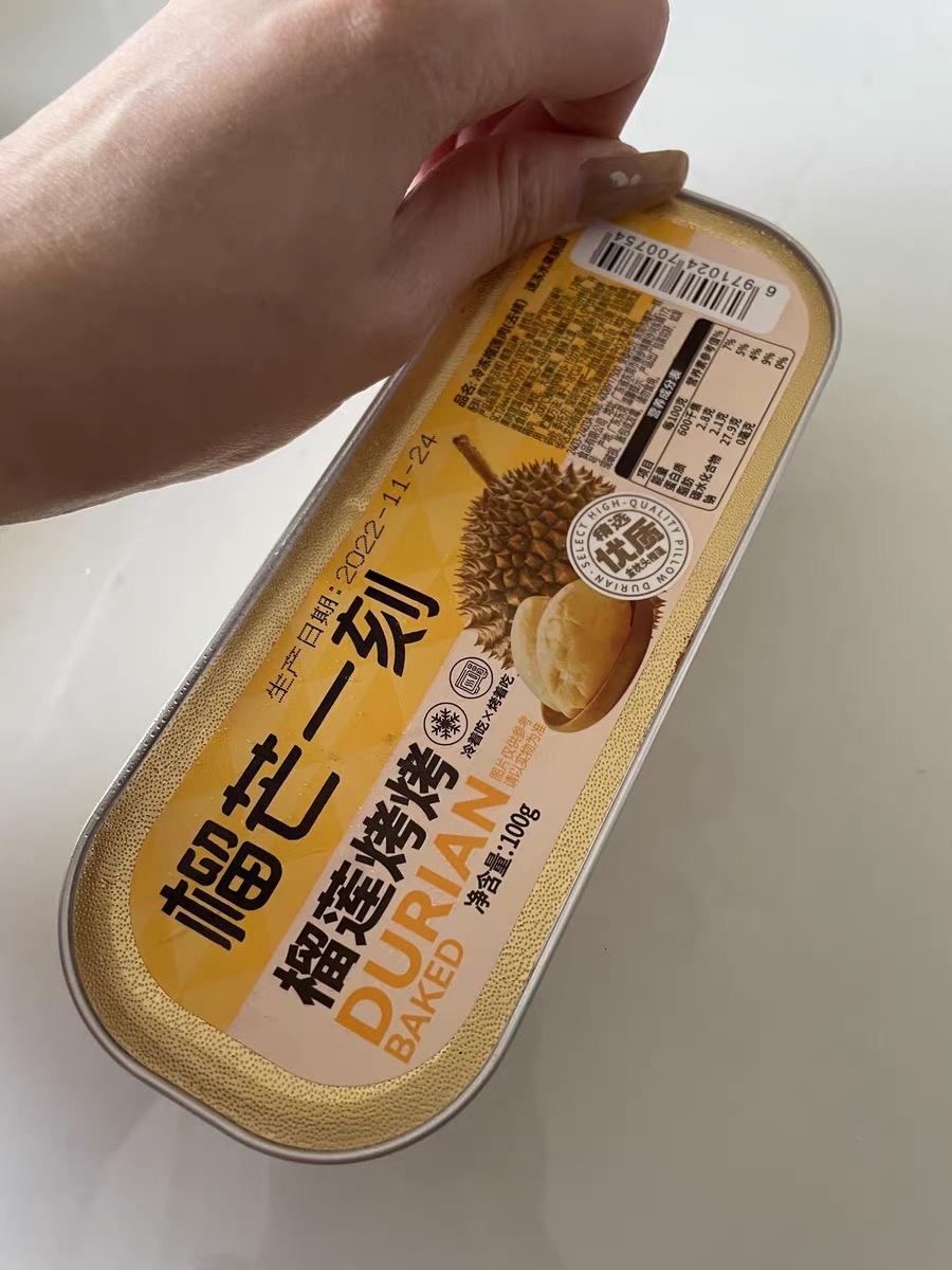烤着吃:无需解冻,撕掉上盖,放入空气炸锅或烤箱内,200℃预热烘烤1015分钟,至榴莲外皮焦黄,稍冷片刻即可食用。