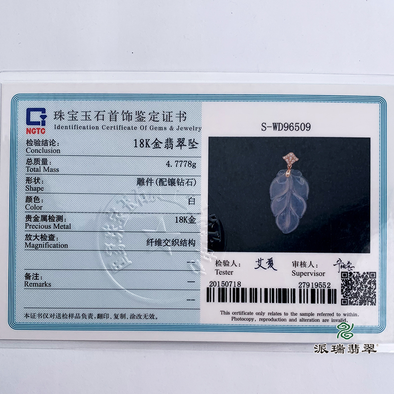 派瑞翡翠 18k金翡翠吊坠 冰种 无色