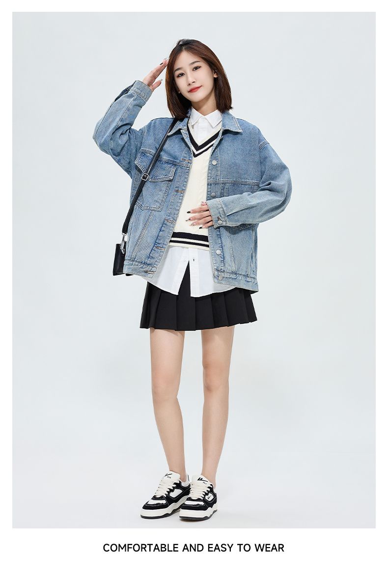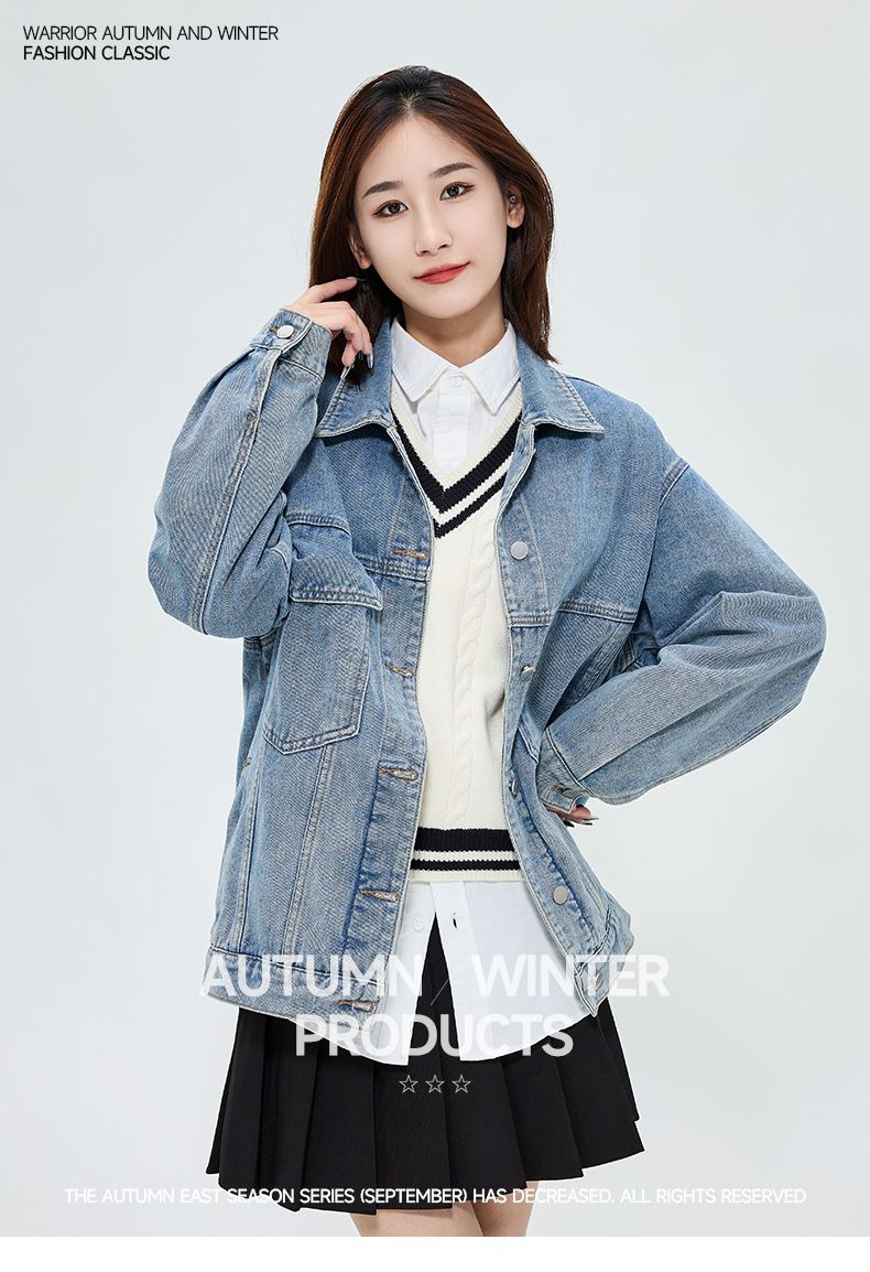 回力牛仔外套女士2025春秋新款BF风美式复古设计感宽松ins潮上衣