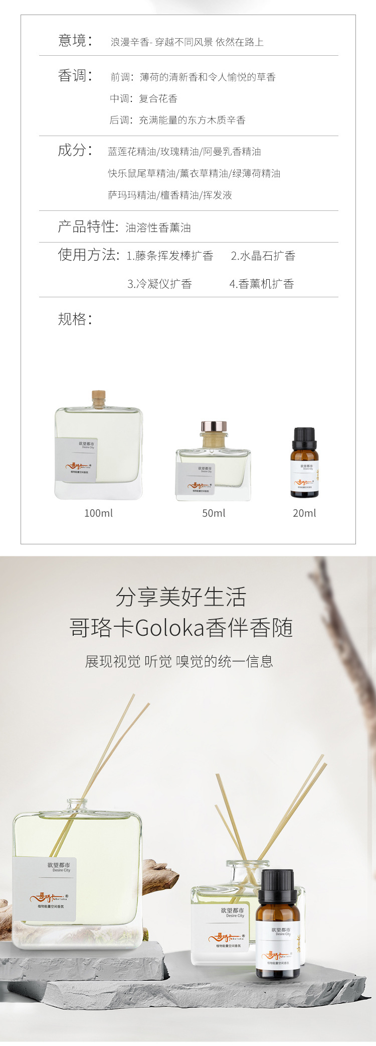欲望都市香薰油无火香薰精油哥珞卡植物香氛家用室内车载酒店香薰
