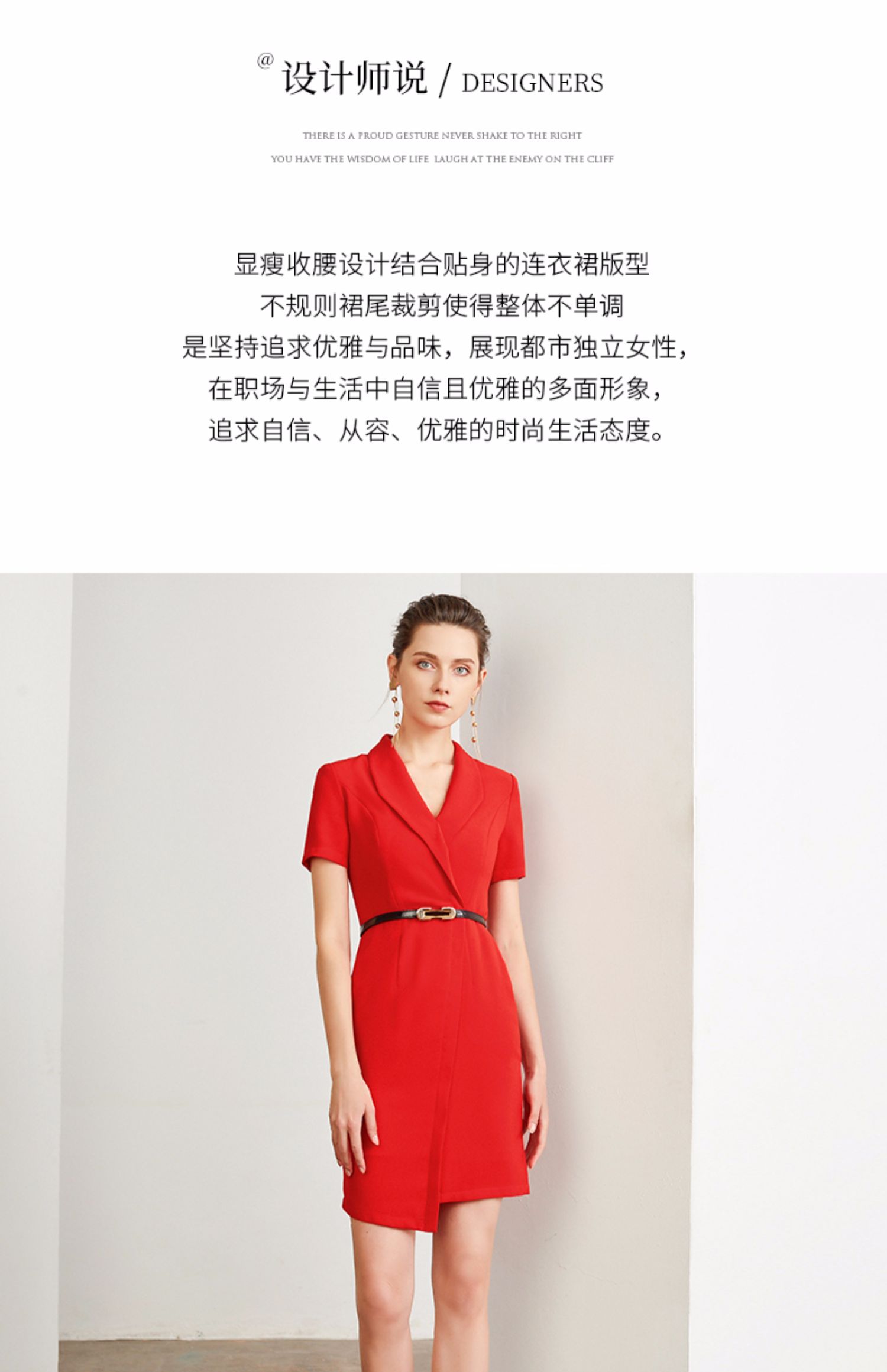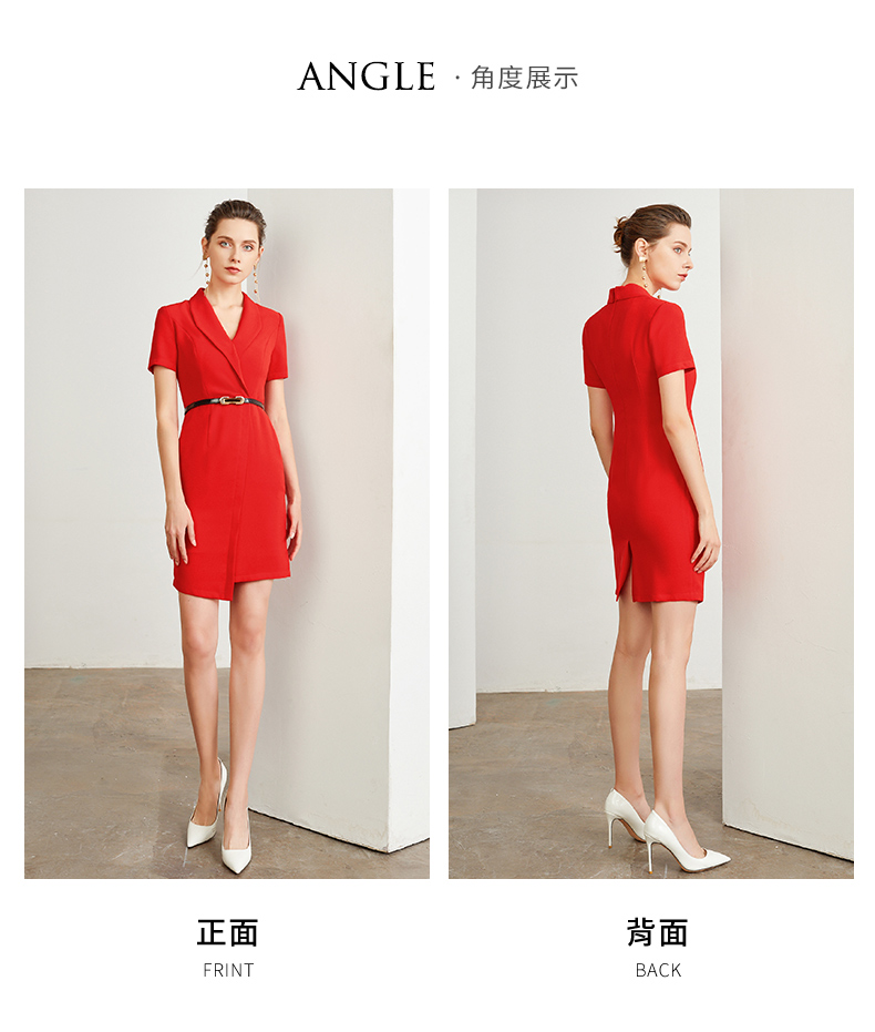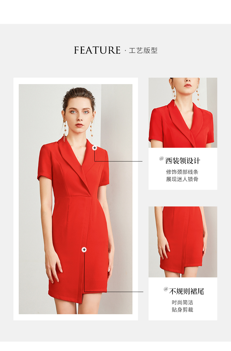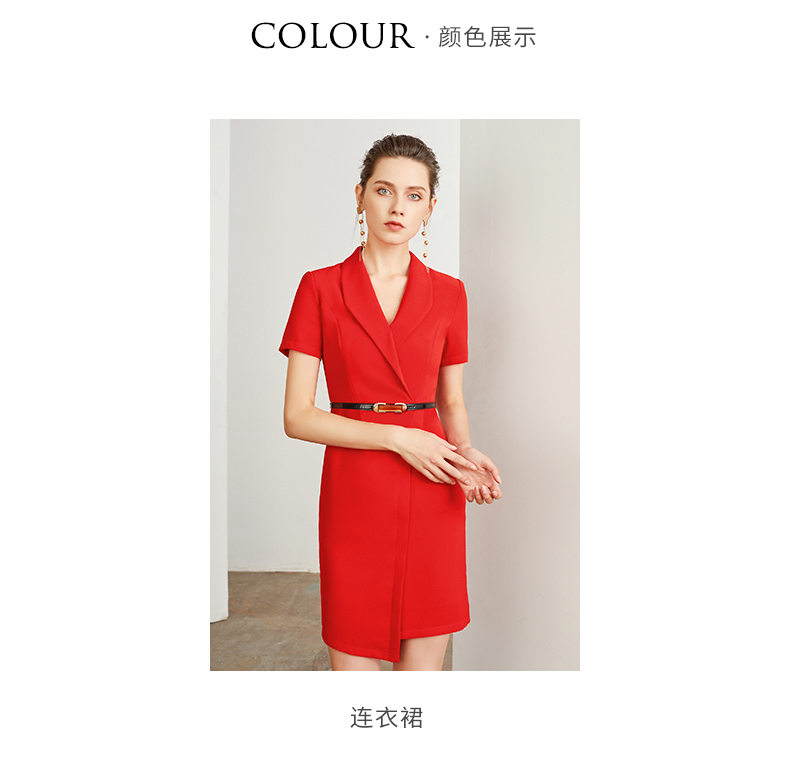 IWY/短袖红色连衣裙女气质法式美容院美业设计感小众个子西装裙04Q1+D810黑
