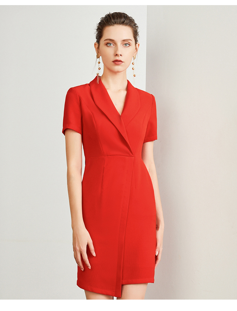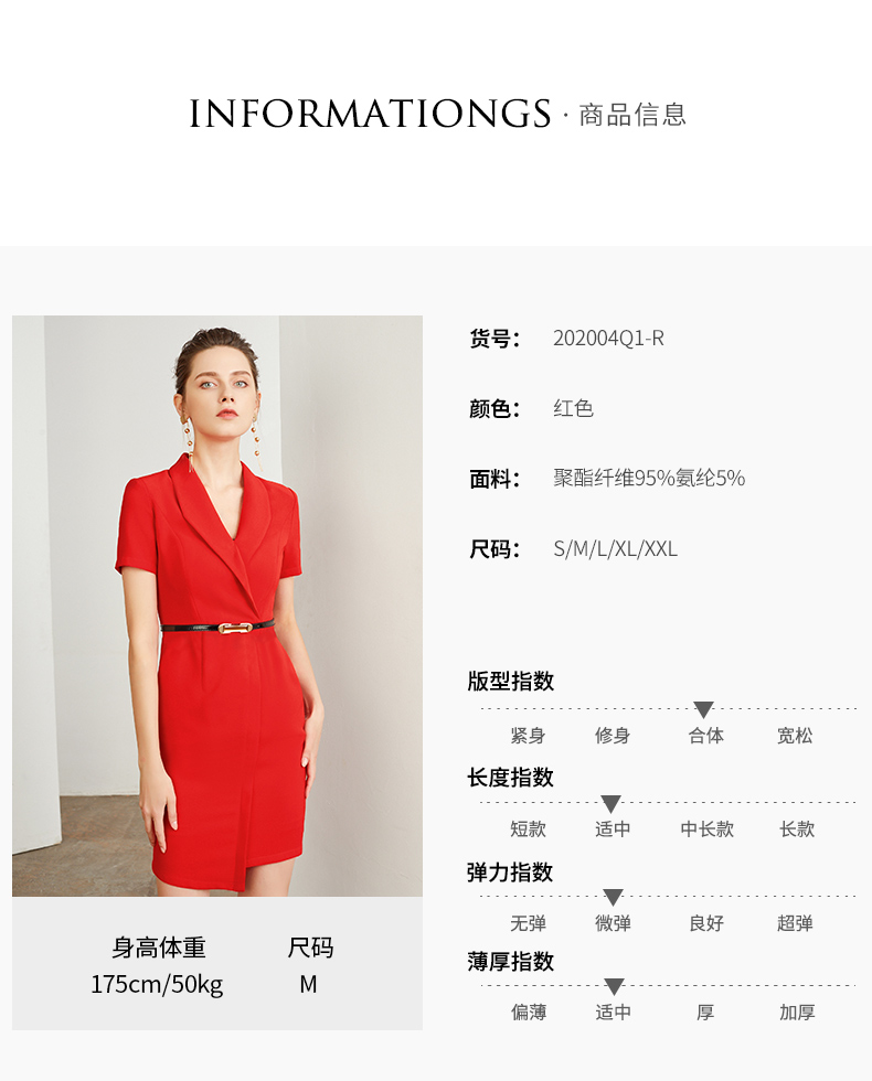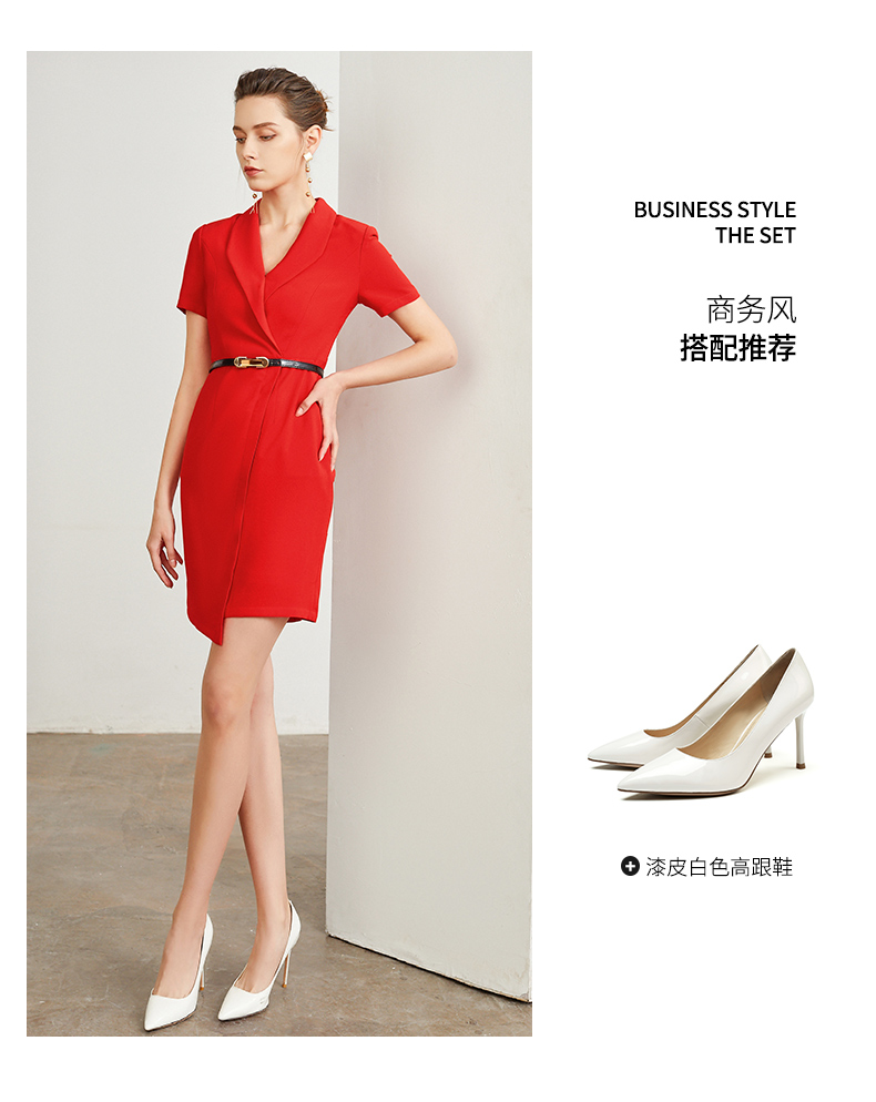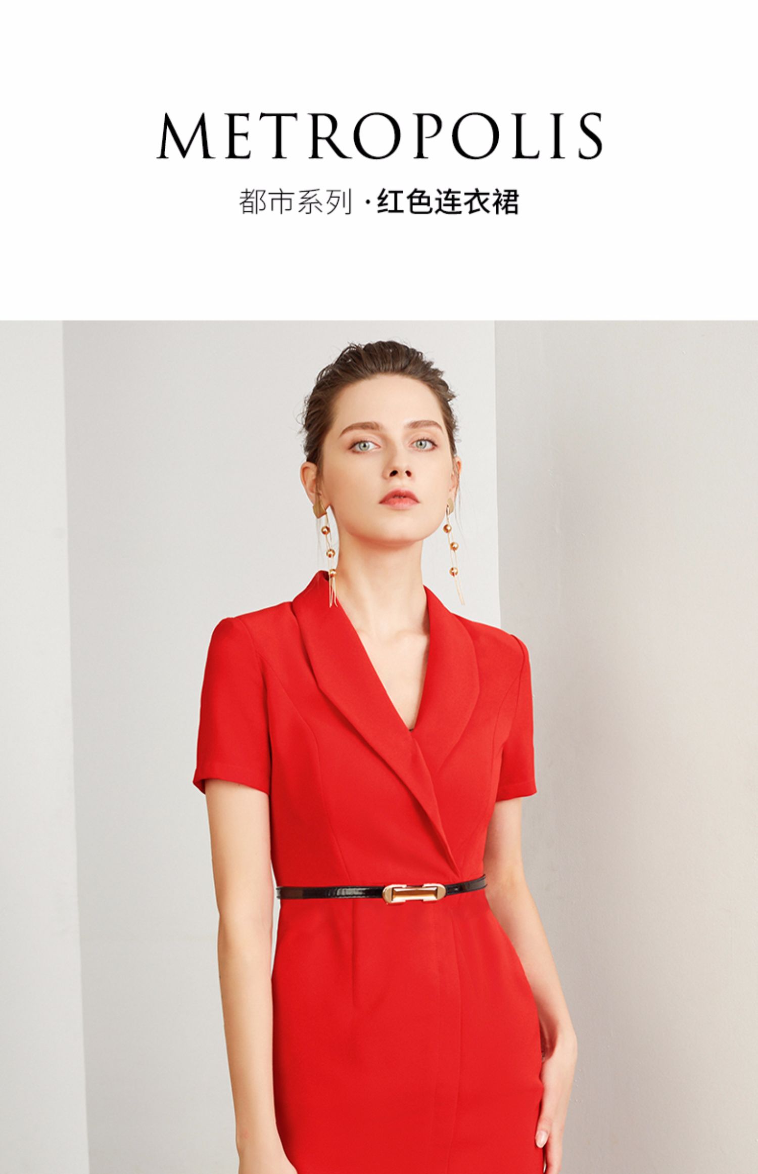 IWY/短袖红色连衣裙女气质法式美容院美业设计感小众个子西装裙04Q1+D810黑