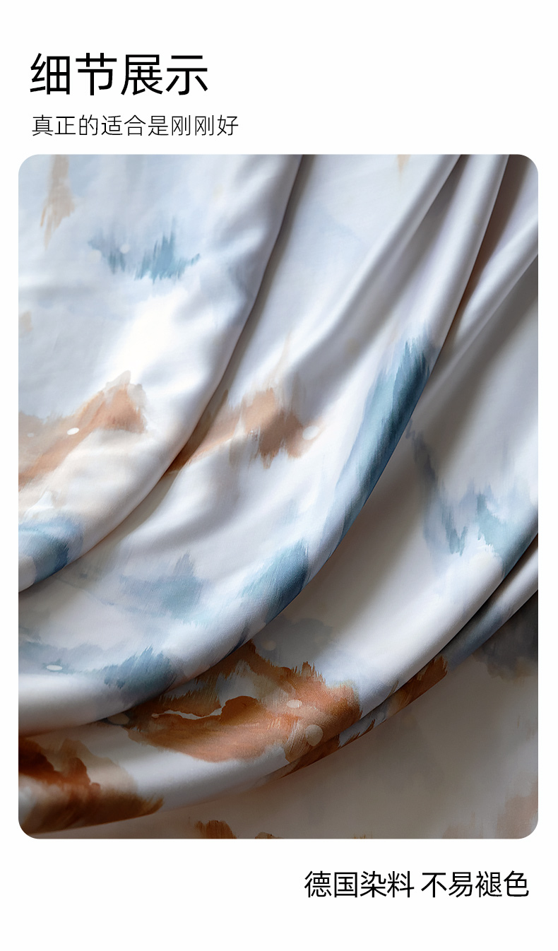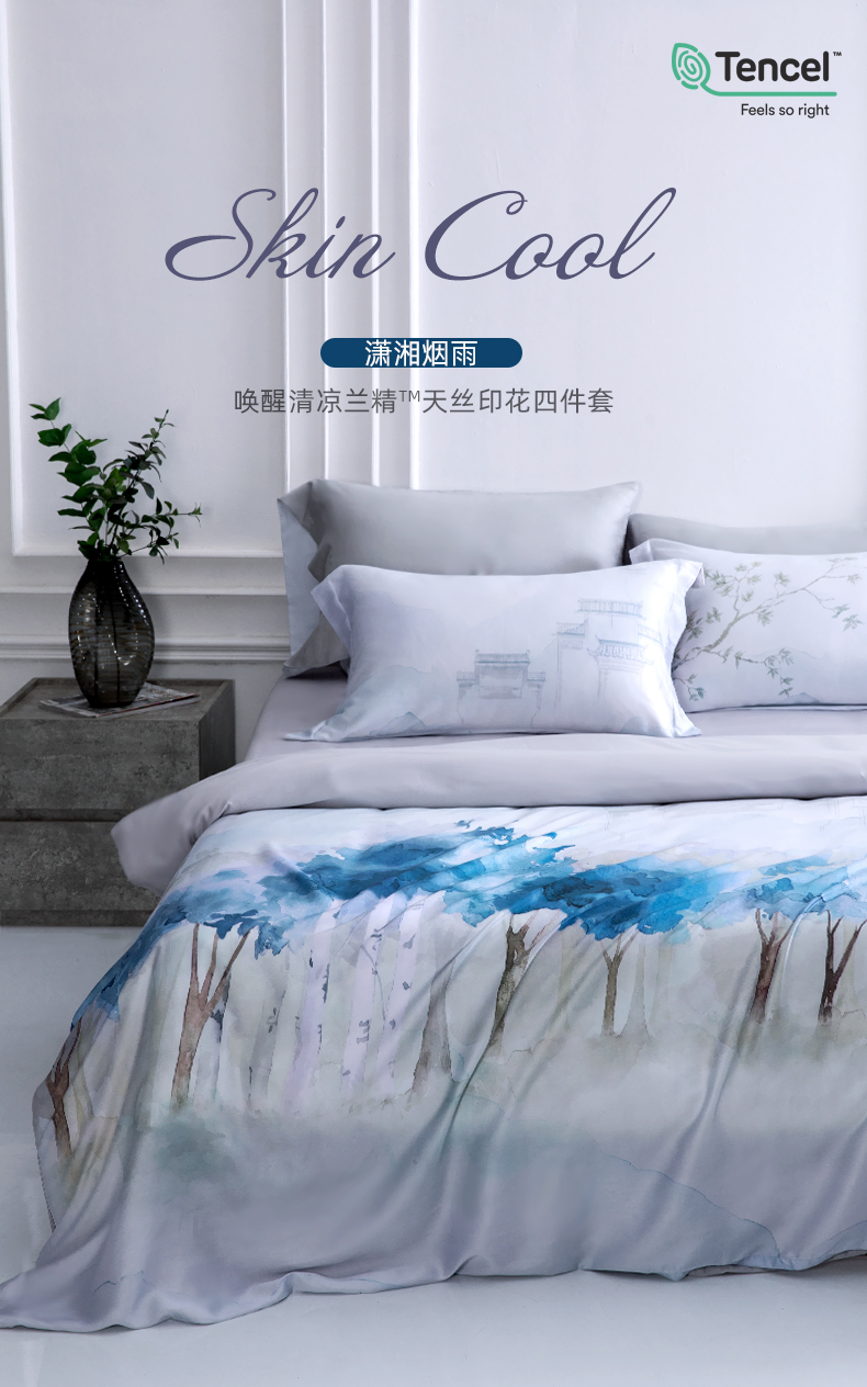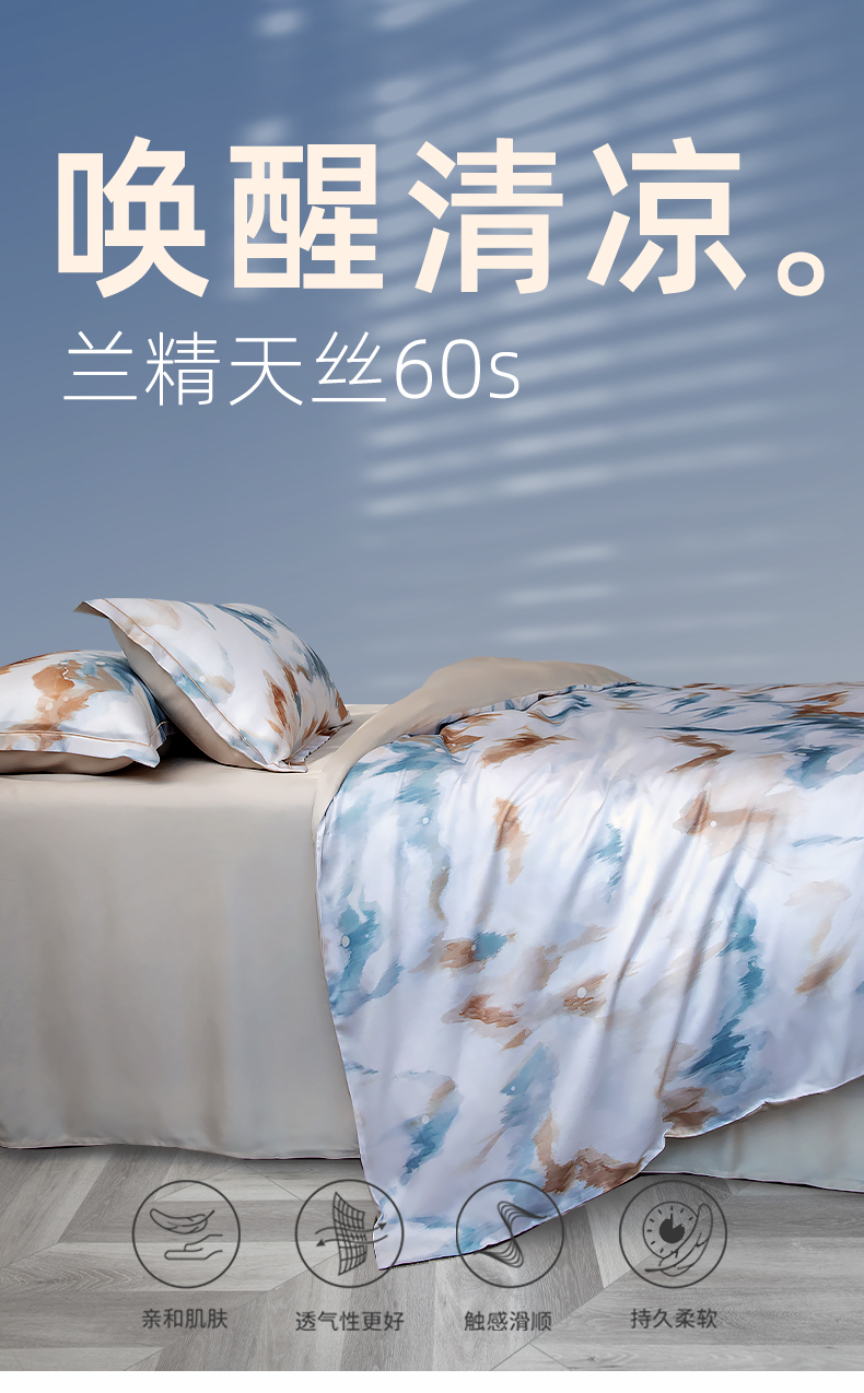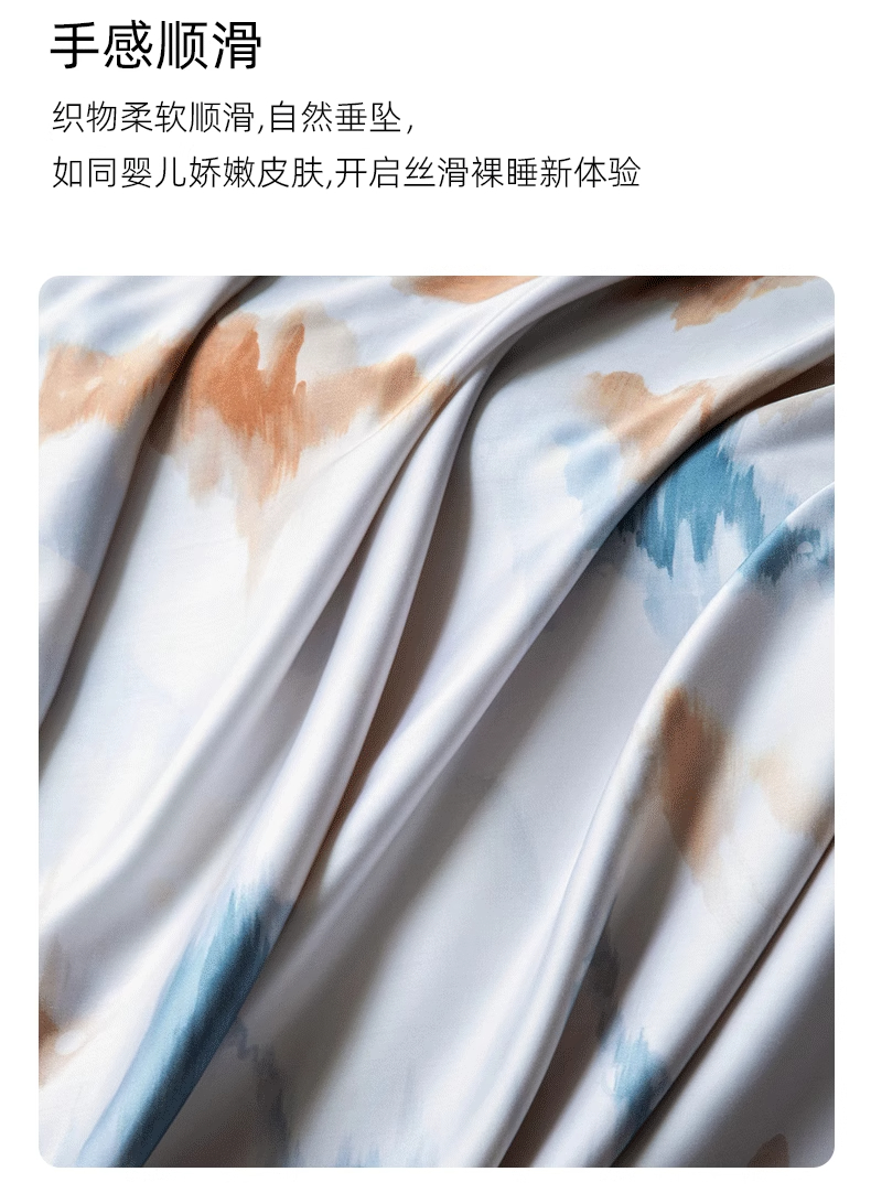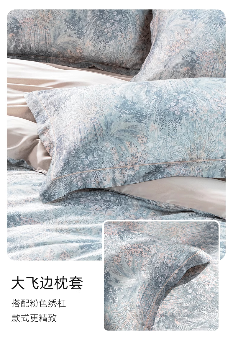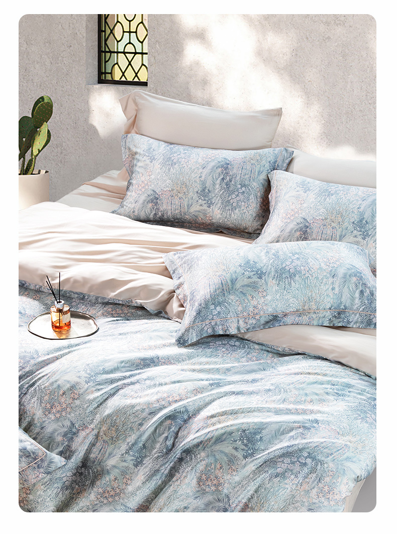 【代发】60s花色天丝款 蓝铂四件套春夏款成人花色冰丝床上用品(尺寸为被罩尺寸)