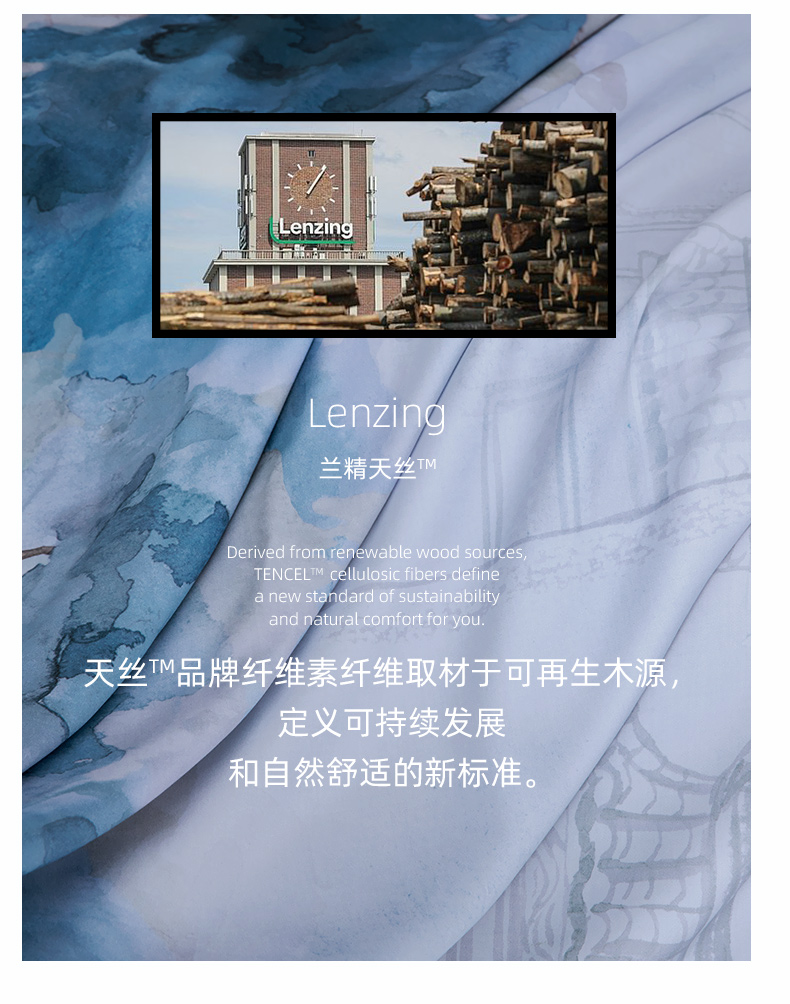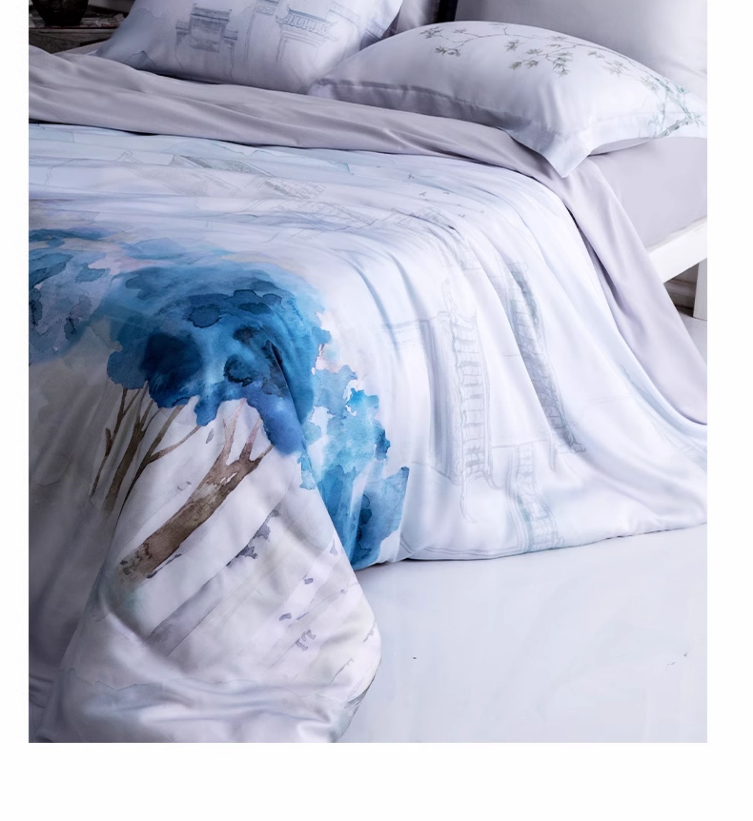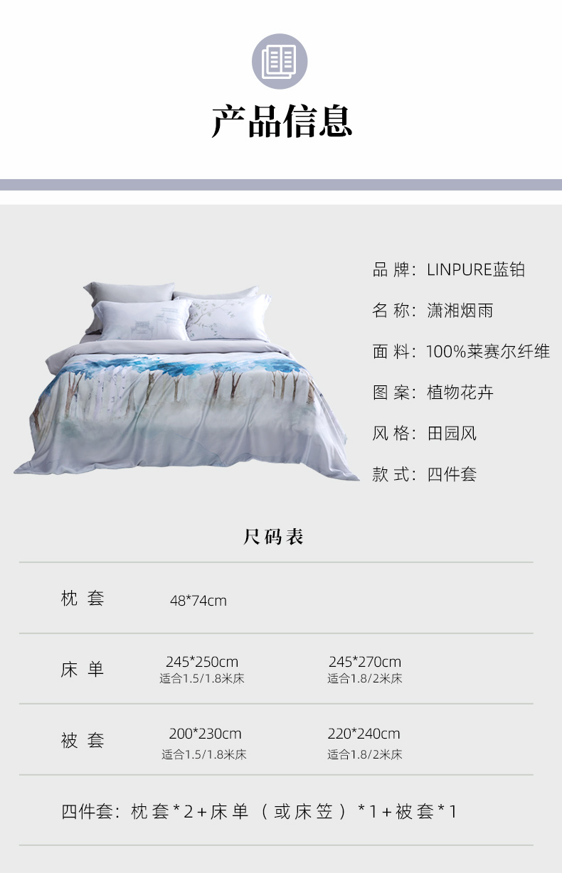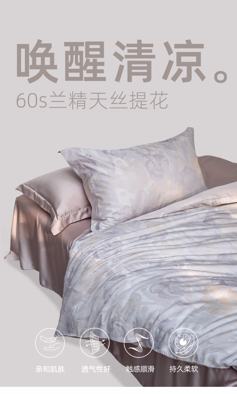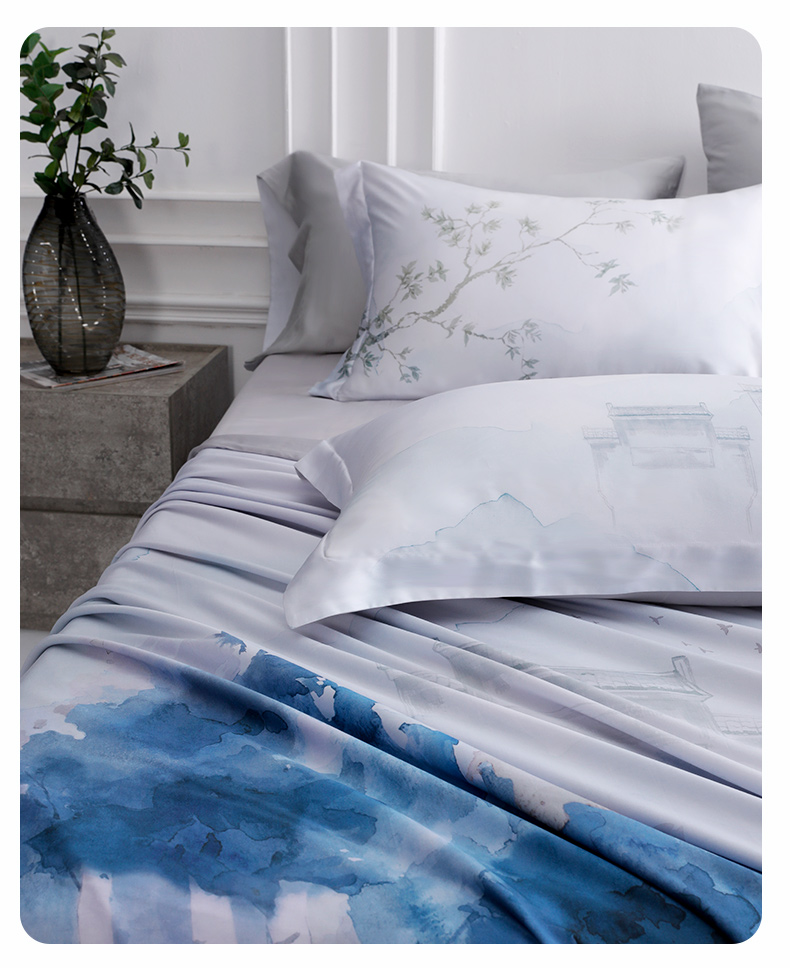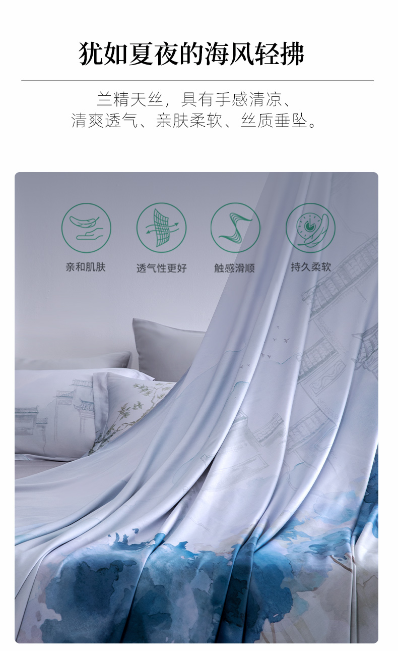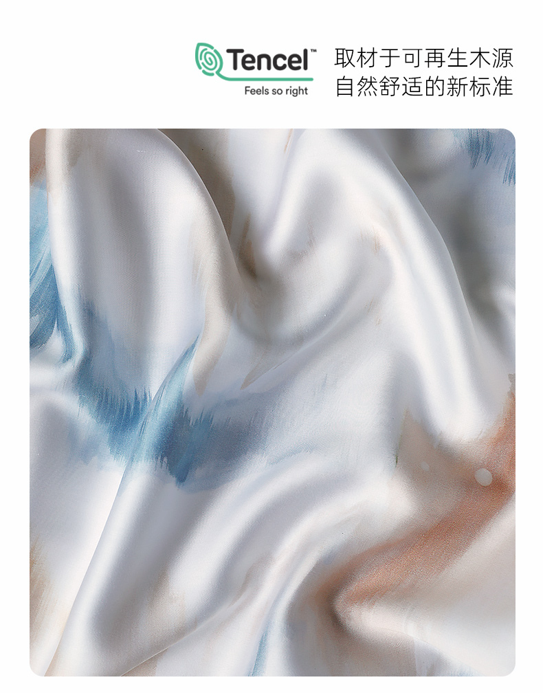 【代发】60s花色天丝款 蓝铂四件套春夏款成人花色冰丝床上用品(尺寸为被罩尺寸)