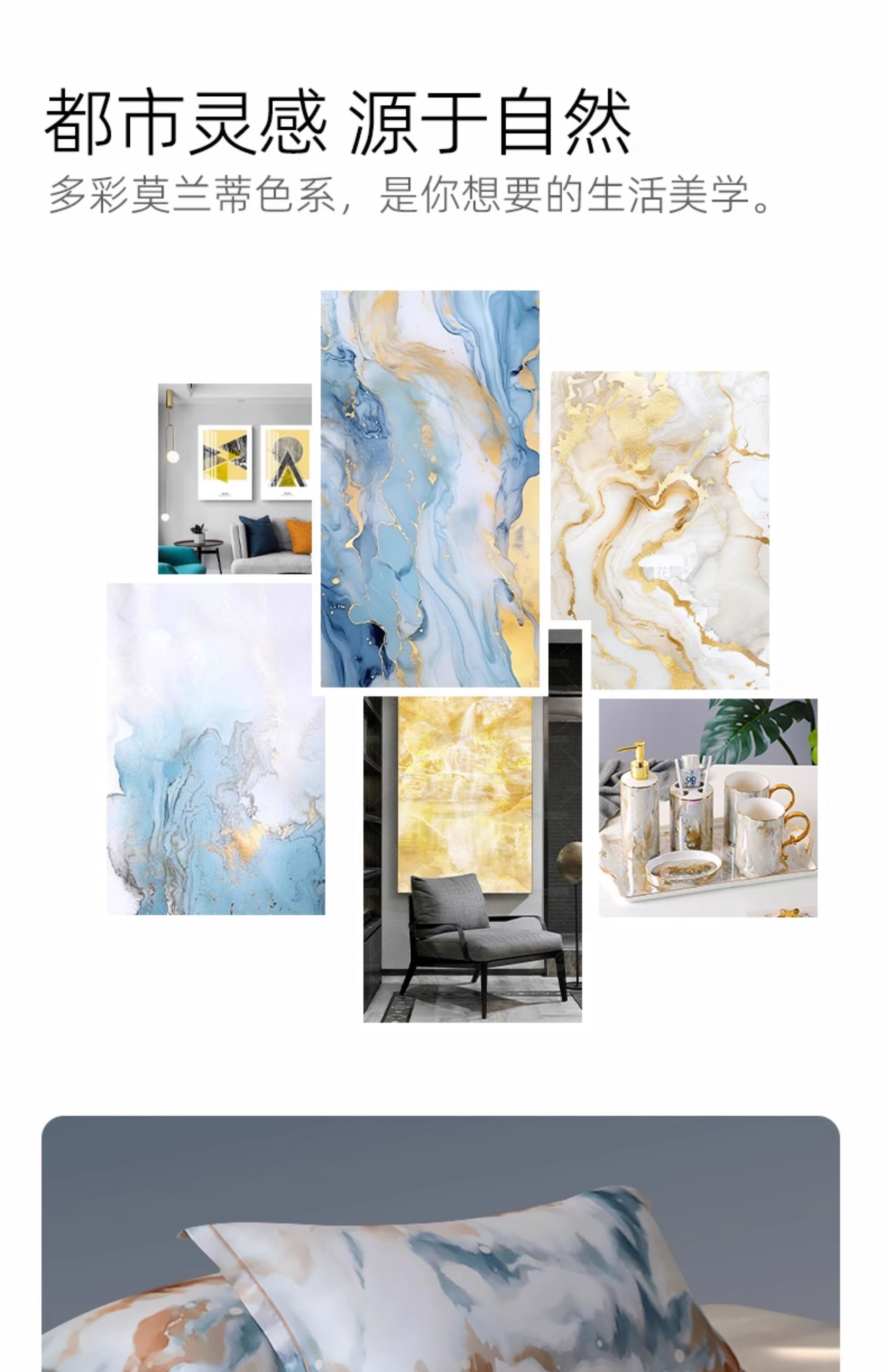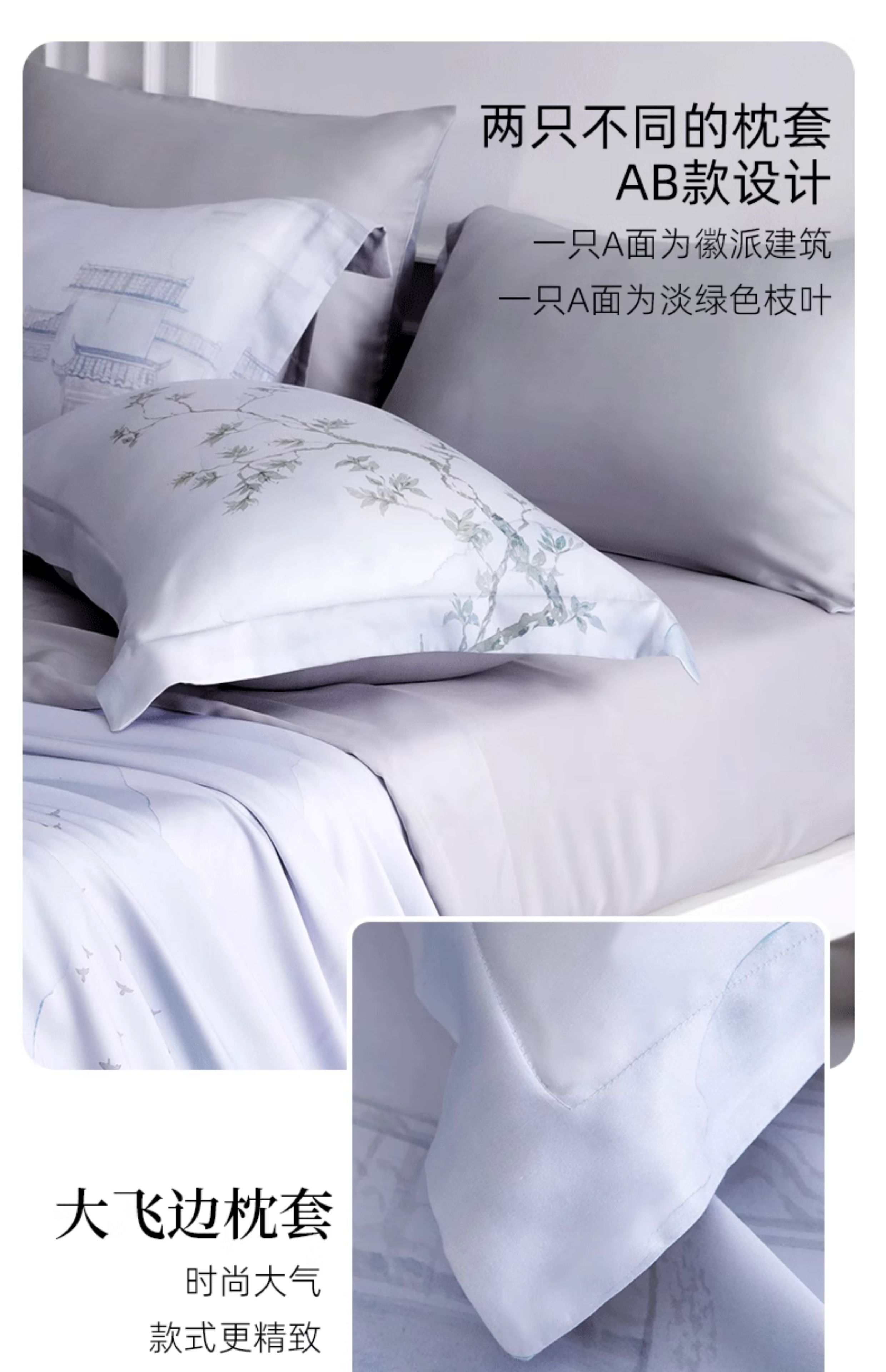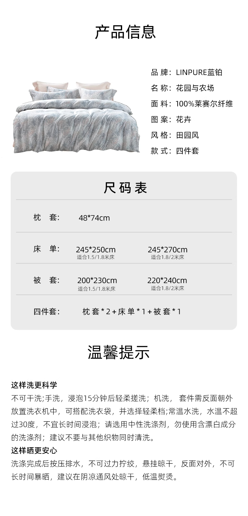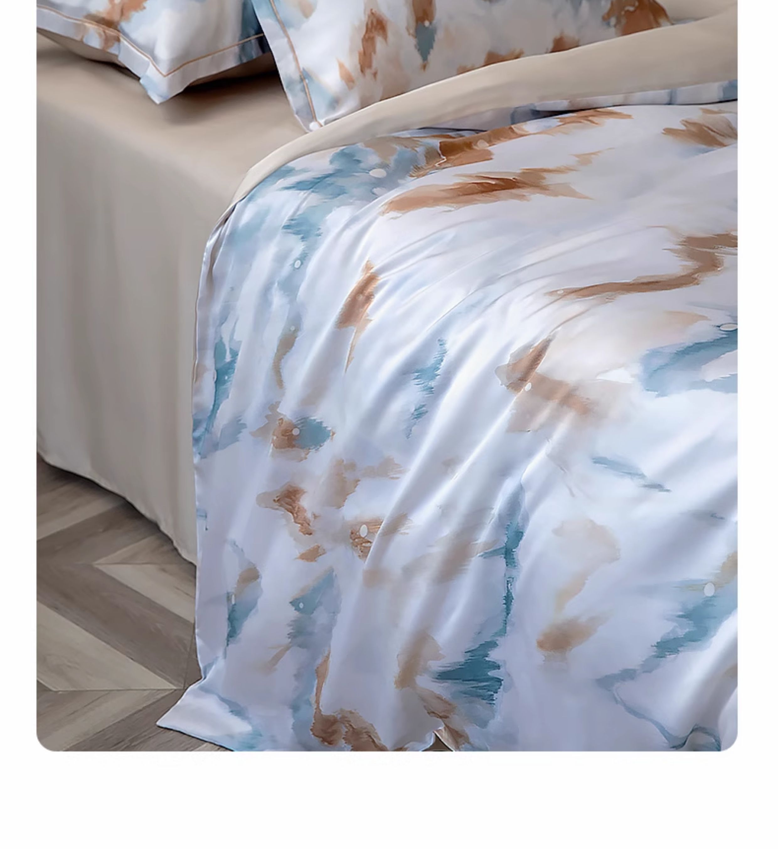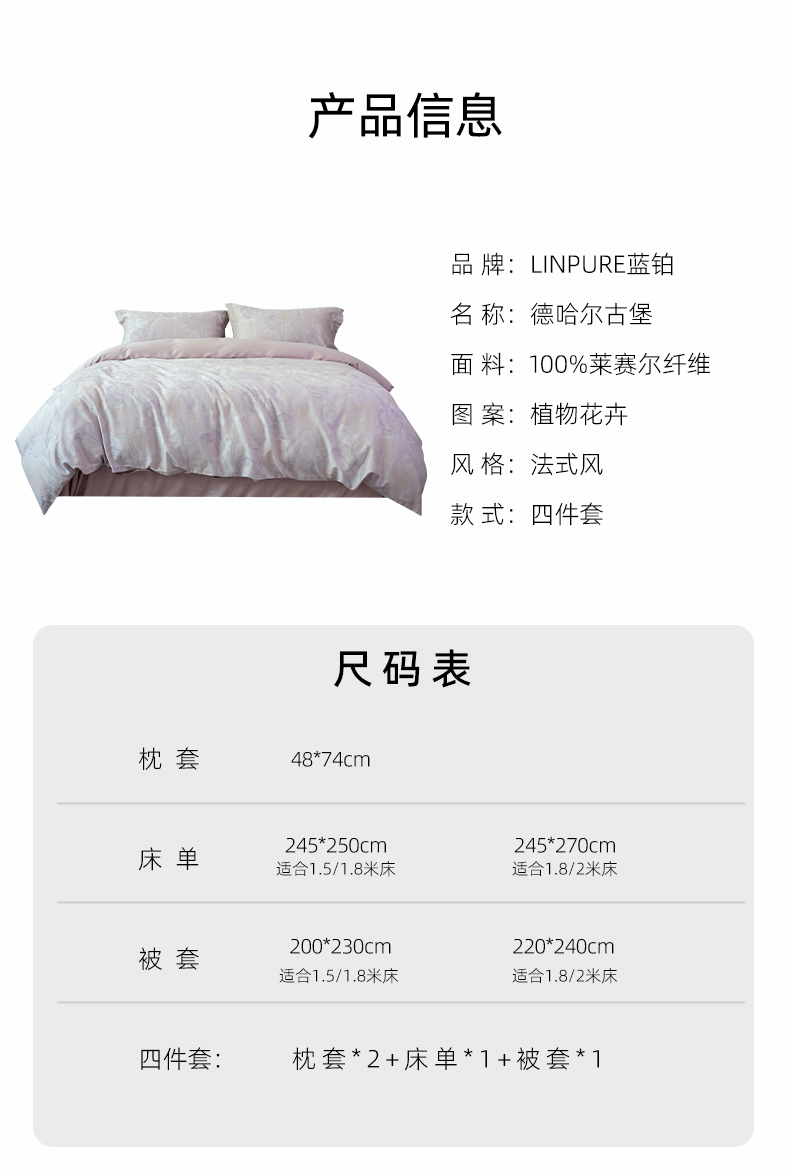 【代发】60s花色天丝款 蓝铂四件套春夏款成人花色冰丝床上用品(尺寸为被罩尺寸)
